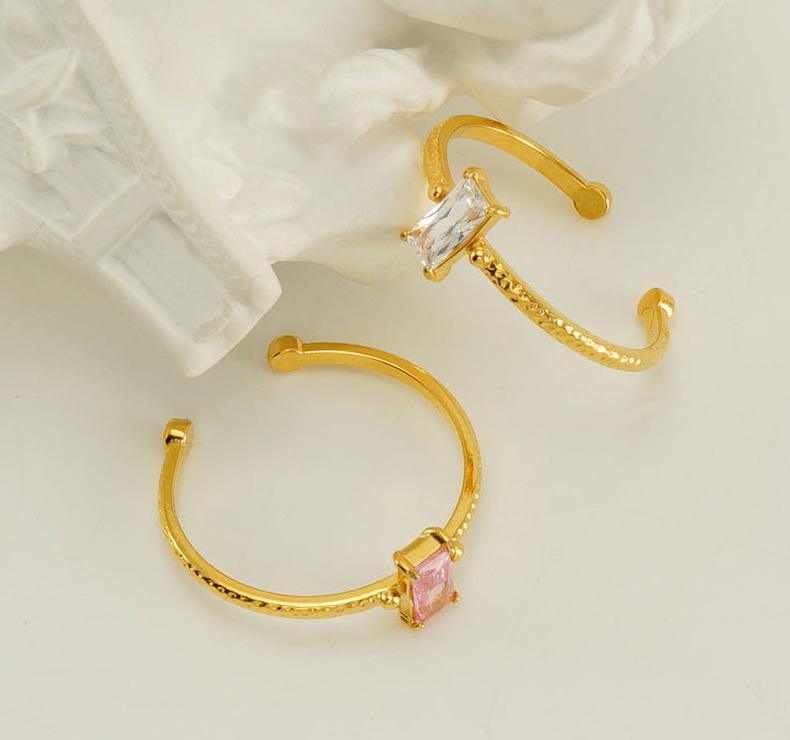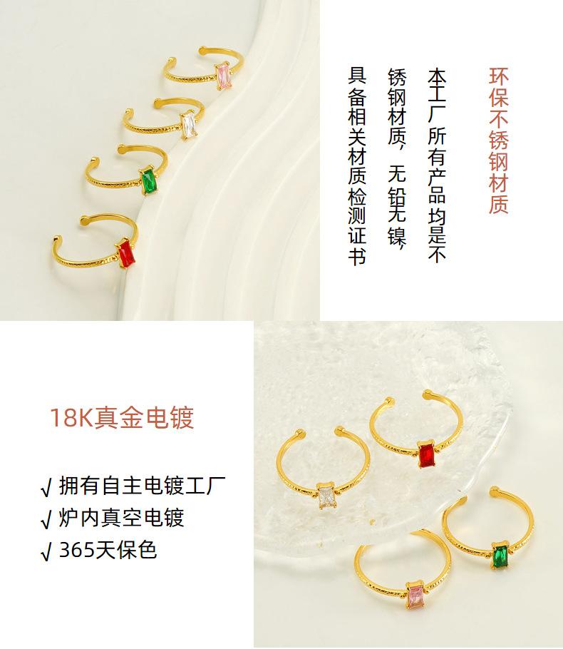 Anillo cuadrado de circonita incrustada de acero inoxidable nuevo transfronterizo para mujer, anillo de titanio de lujo ligero europeo y americano para combinar con todo, al por mayor en stock