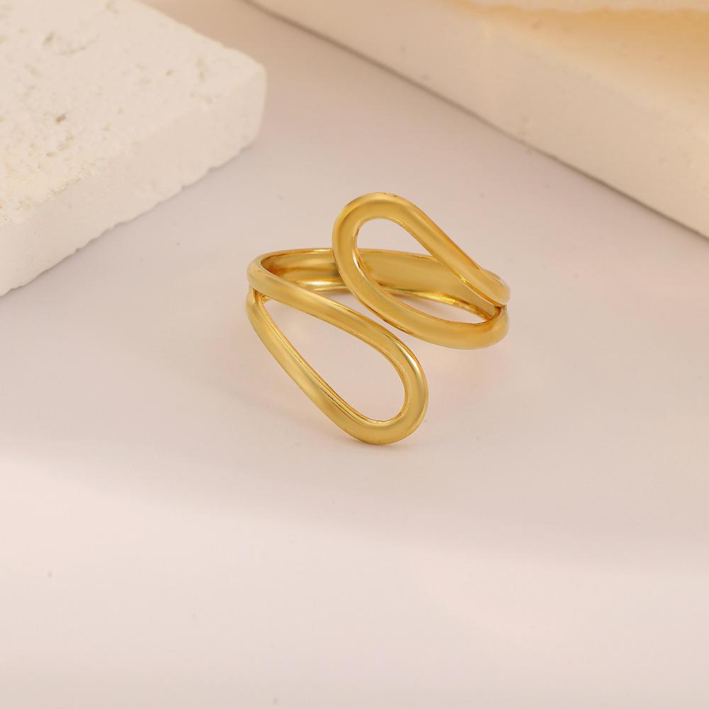 Anillo abierto de línea simple hueco dorado de acero inoxidable que combina con todo, nuevo y de moda de Amazon, venta directa de fábrica.