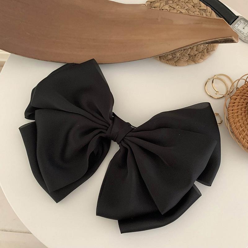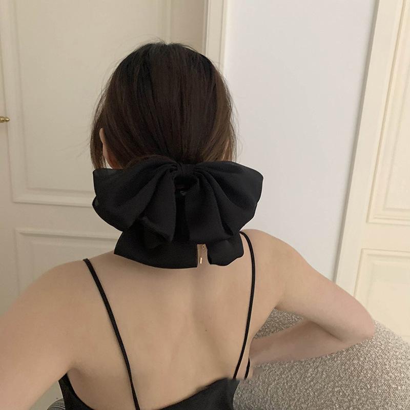 Horquilla de lazo grande negra de estilo francés de alta calidad para mujer, accesorio para el cabello con clip en la parte posterior, tocado con clip lateral, textura nueva