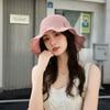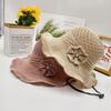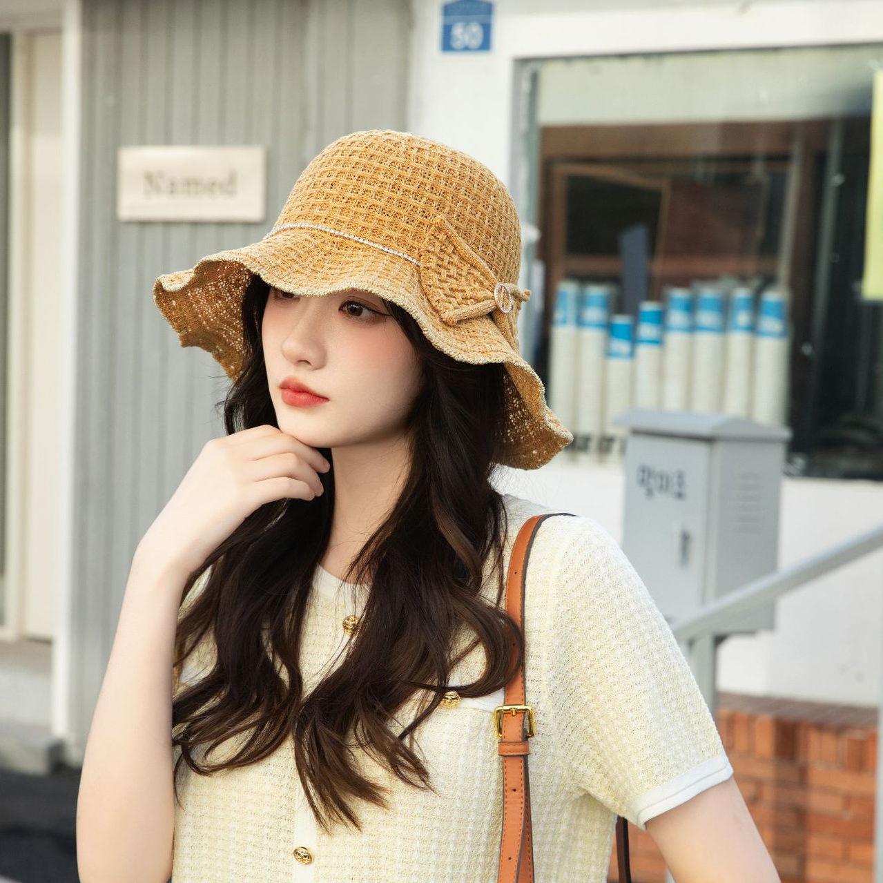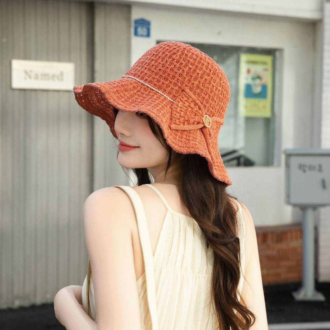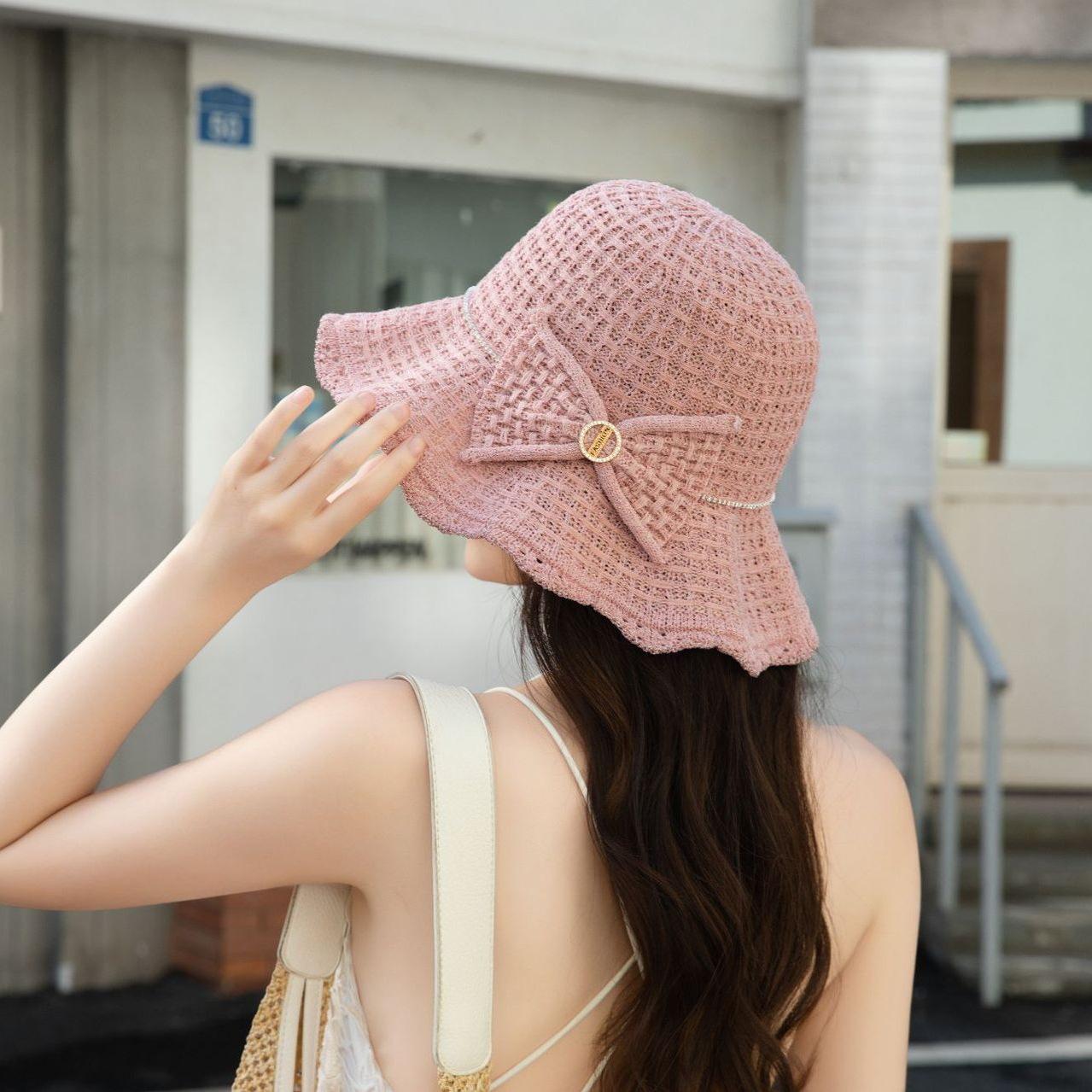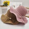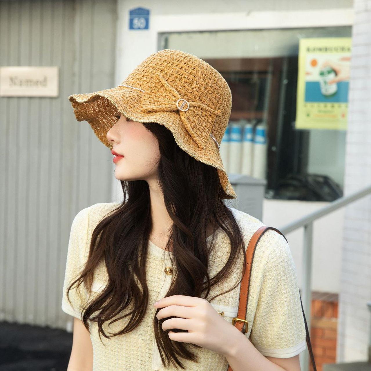 Sombrero de pescador de verano para mujer, estilo coreano, tejido hueco, protector solar, con lazo de playa y cornisa grande