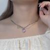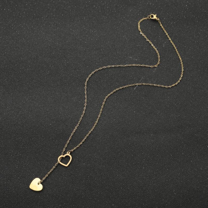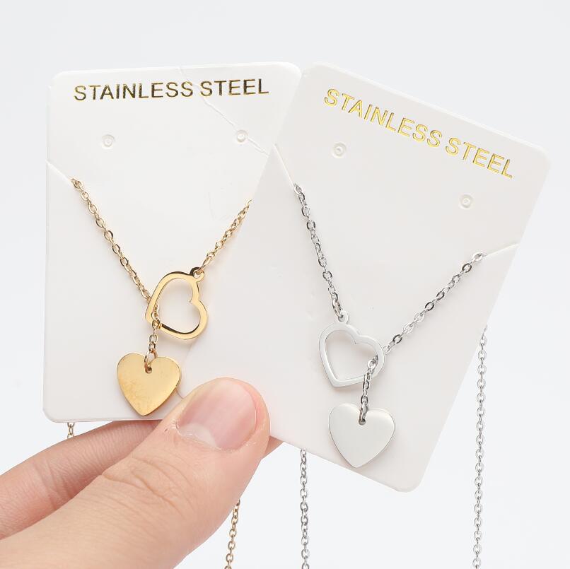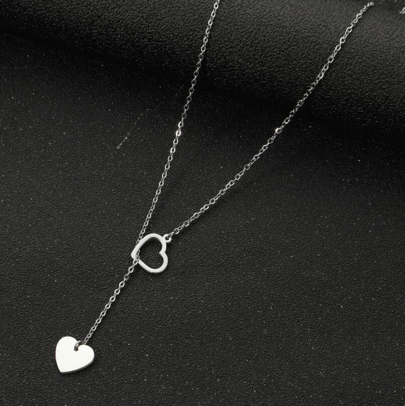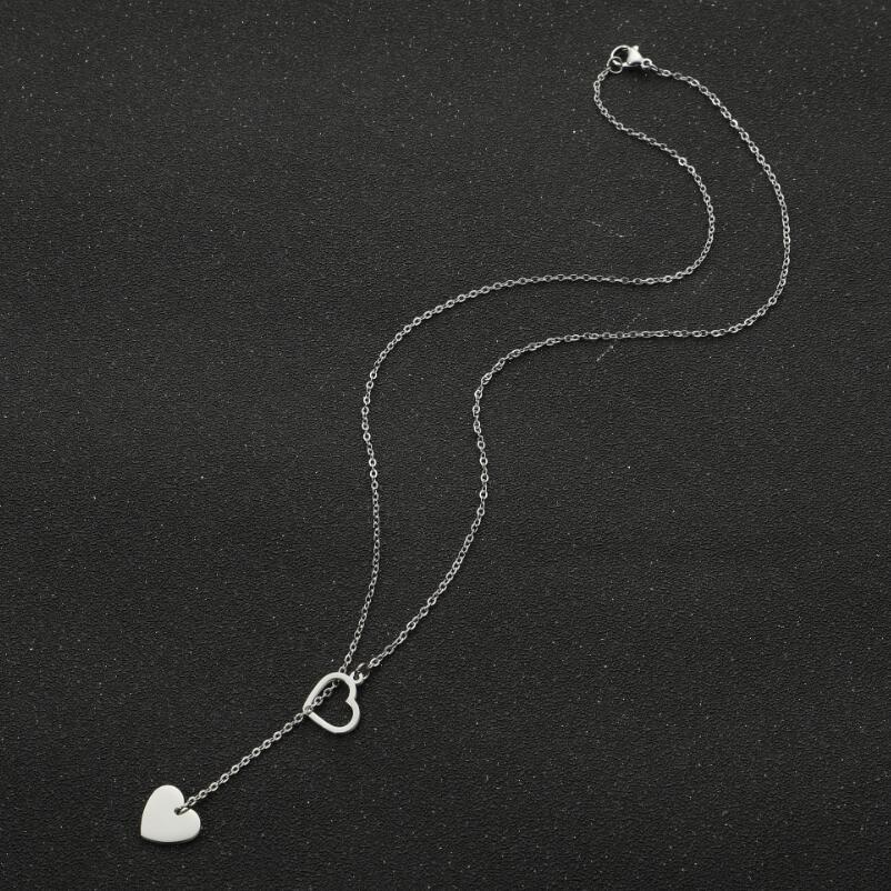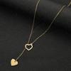 Collar Joyería Estilo Coreano Simple Nuevo Diseño Nicho Acero Inoxidable Doble Colgante Borla en Forma de Corazón Cadena Clavícula