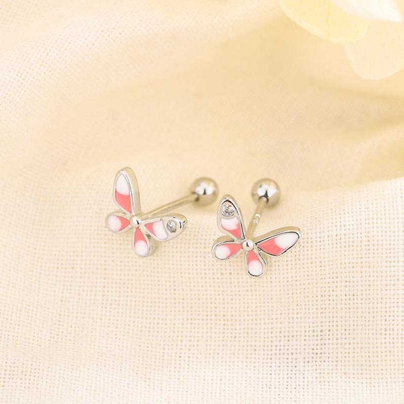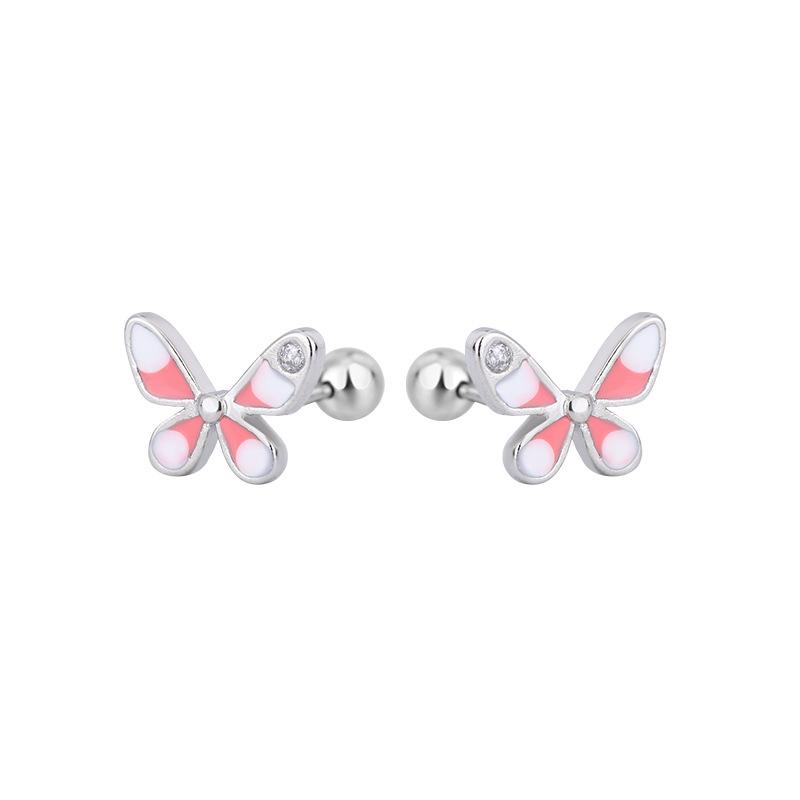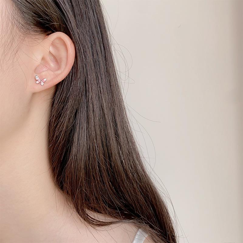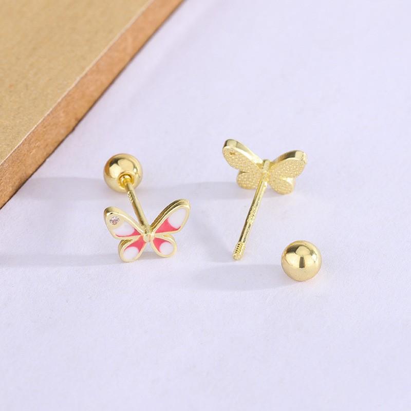 Arete de mariposa de polvo ligero S925 con cierre de rosca, aretes dulces de corazón para niña, pequeños para dormir sin necesidad de quitárselos