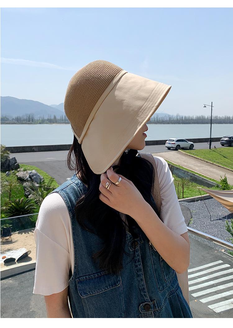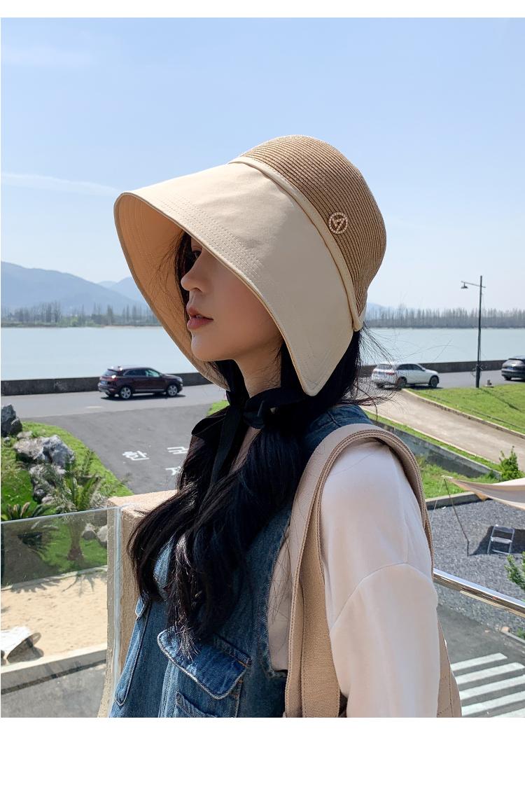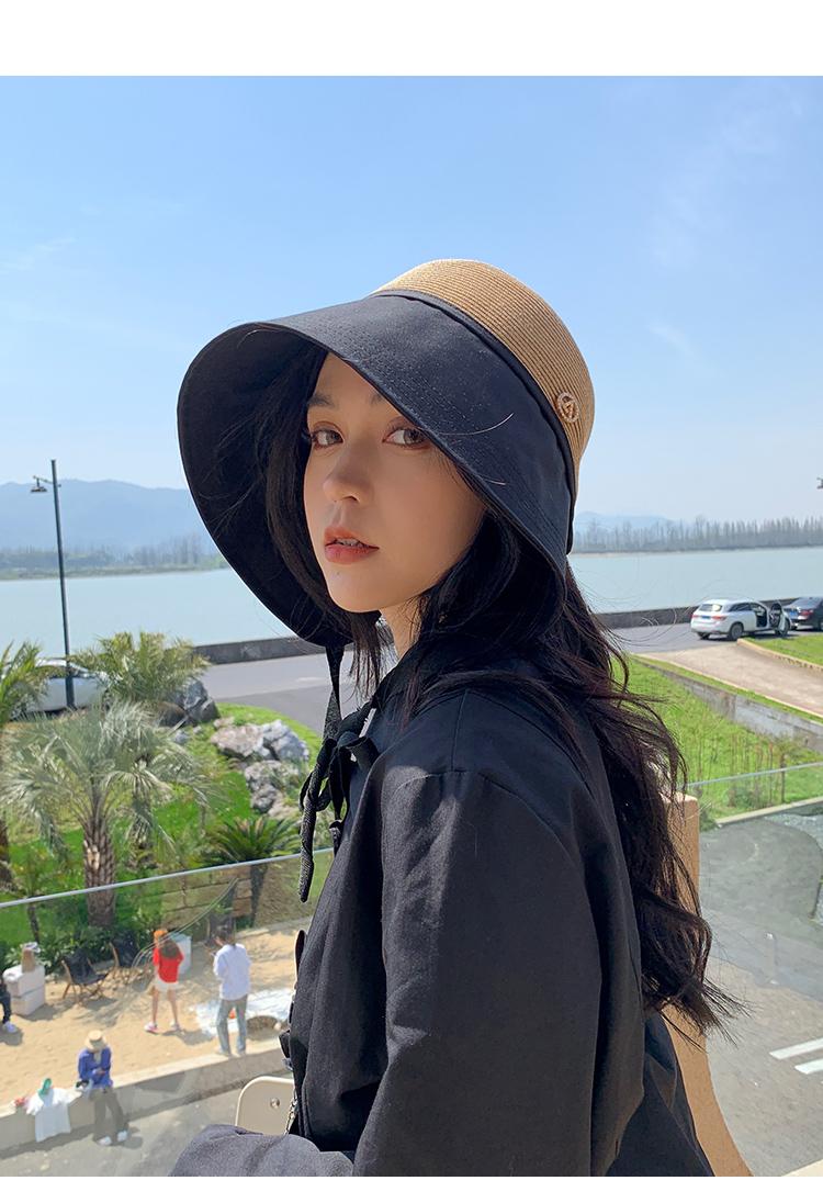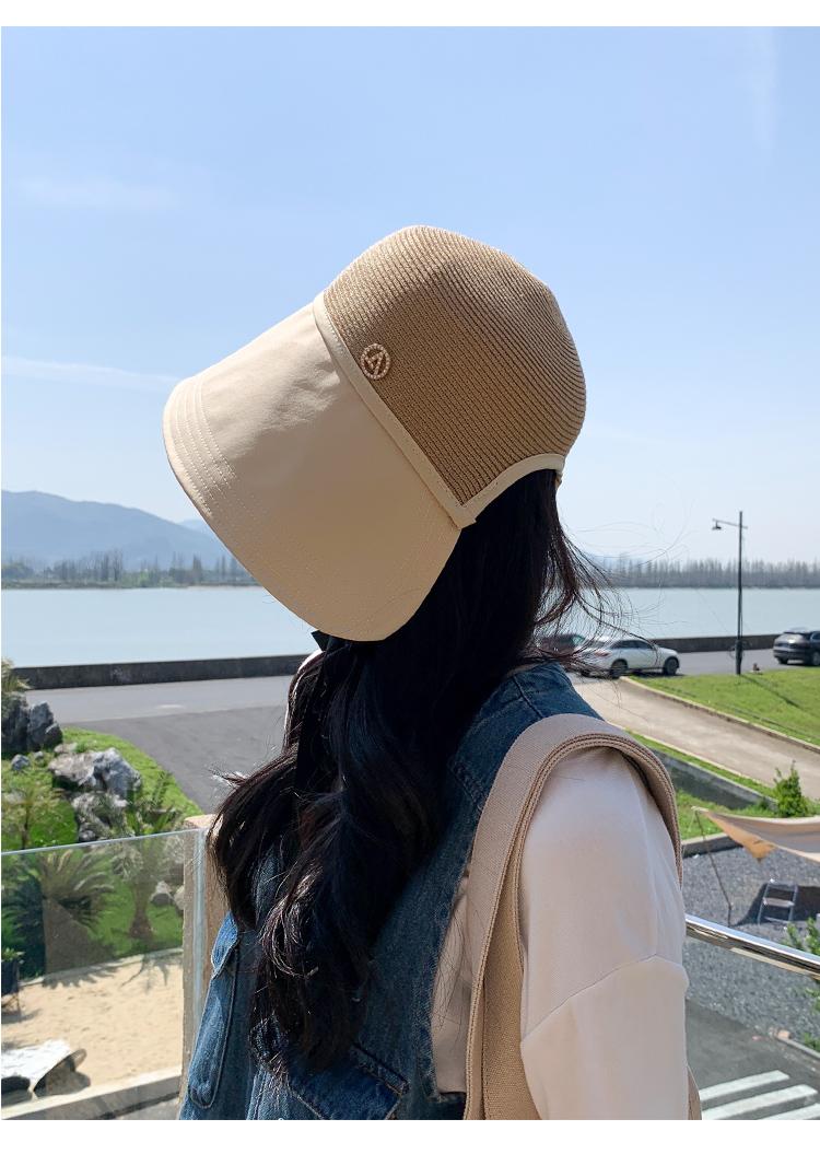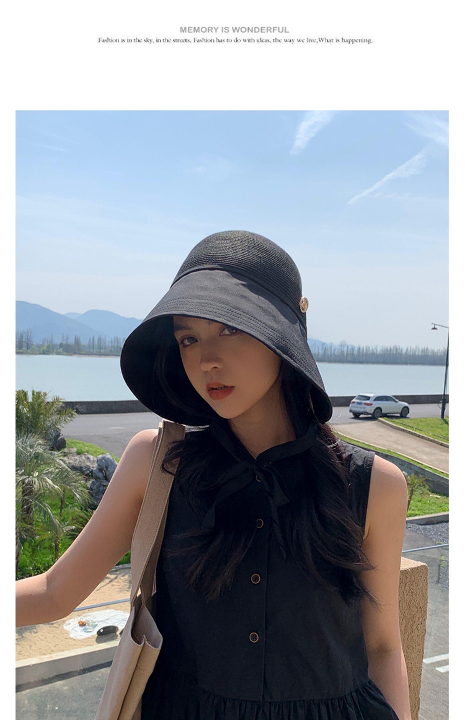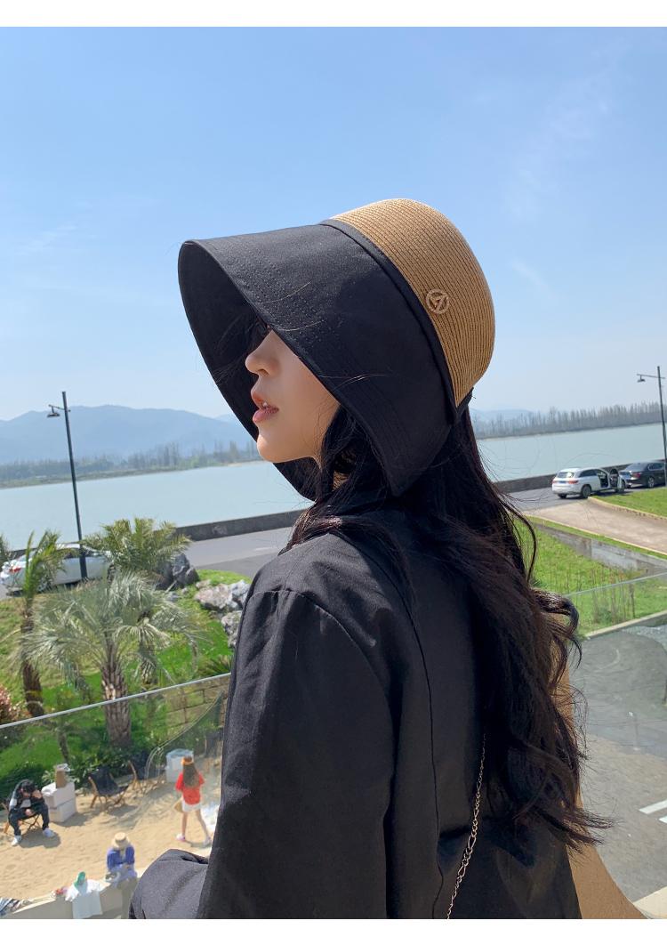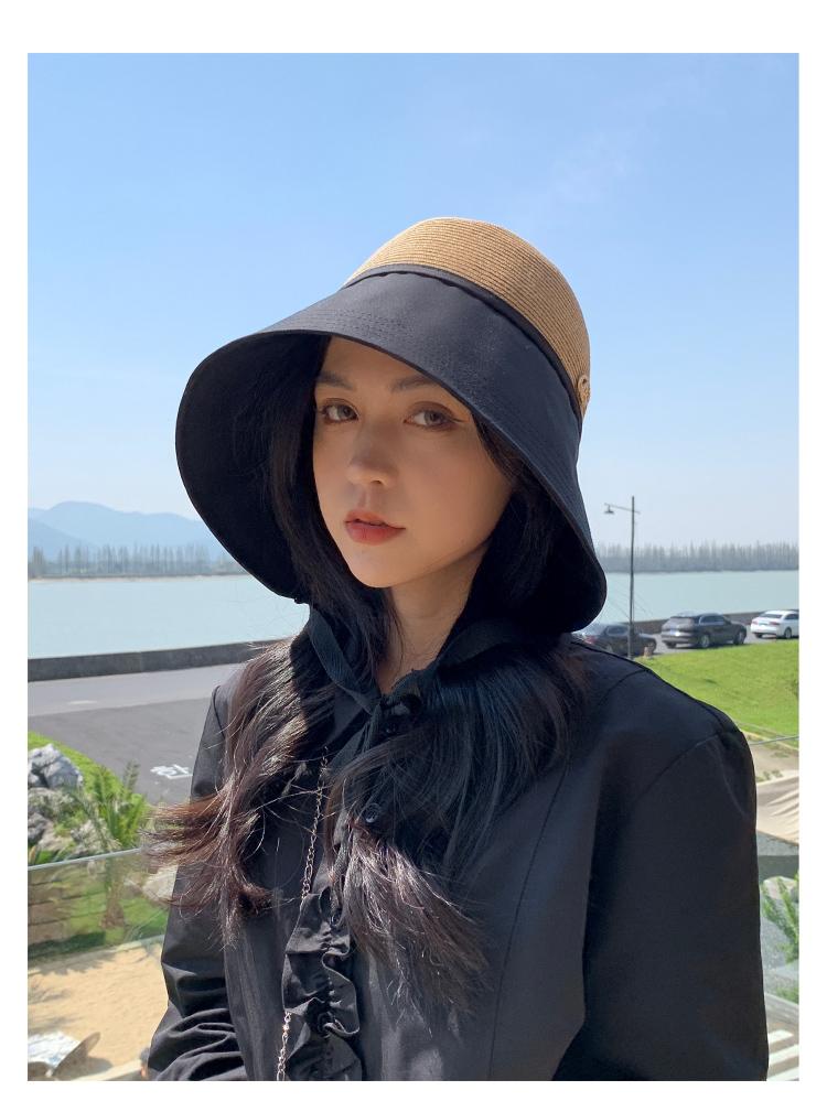 Sombrero de pescador de ala grande para mujer, estilo coreano, combinable con todo, para viajes de verano, con protección solar y protección UV, de paja.
