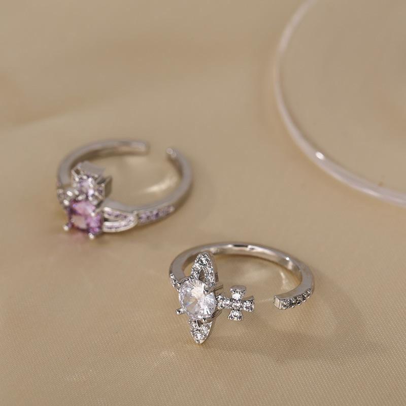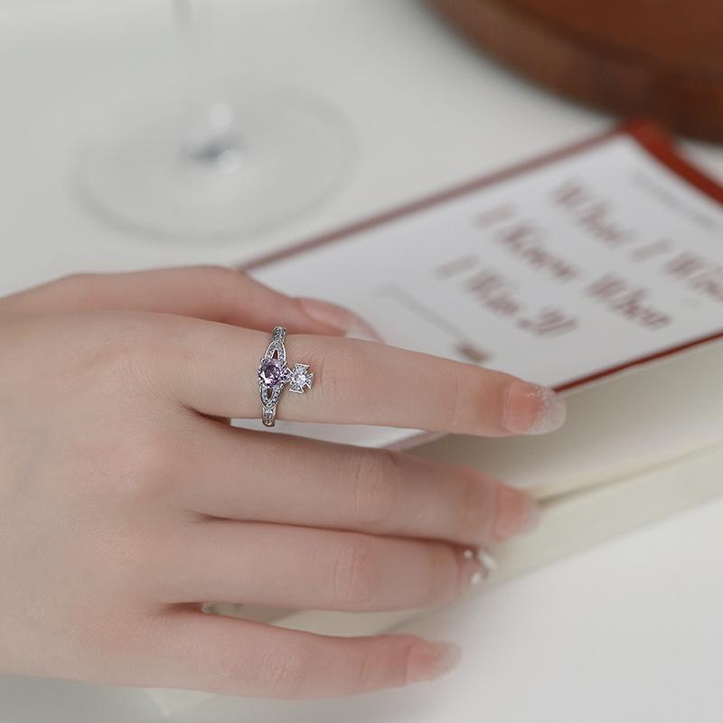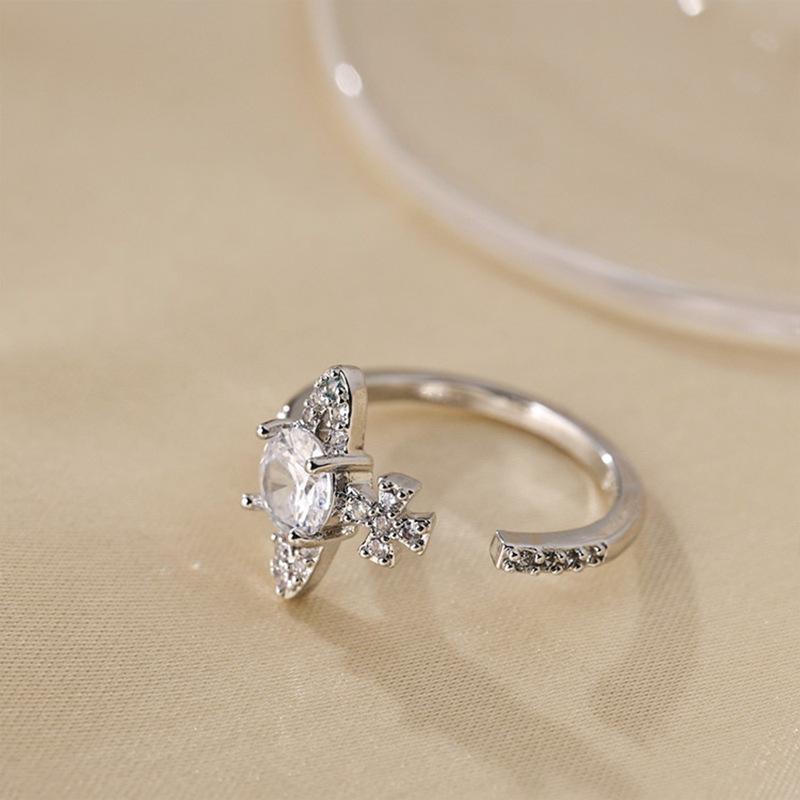 Anillo abierto con diseño de nicho de circonita y diamante para mujer, estilo coreano, estilo frío y distintivo.