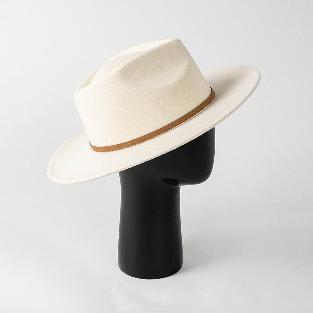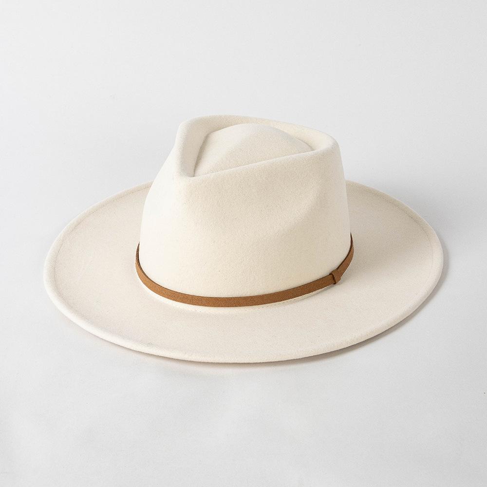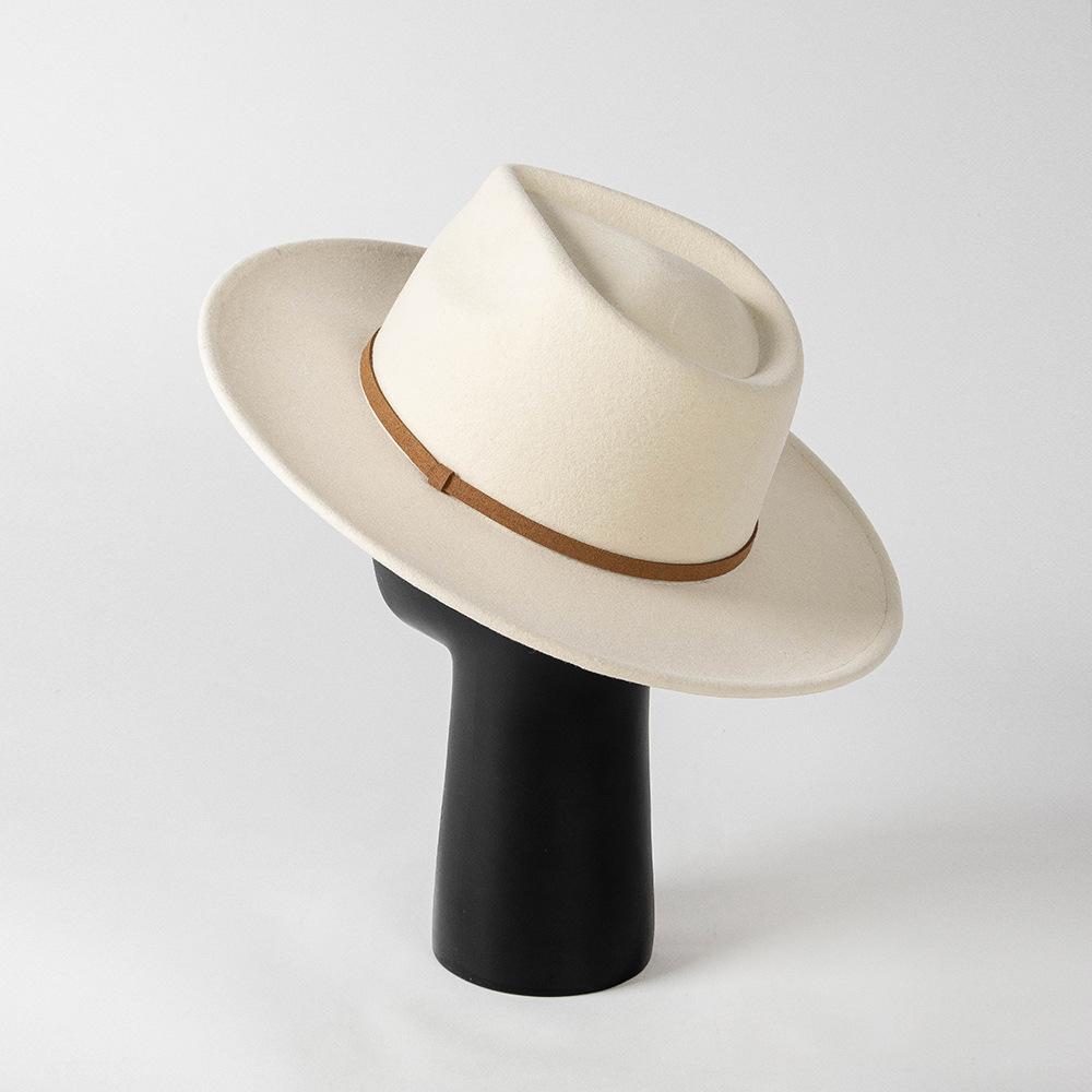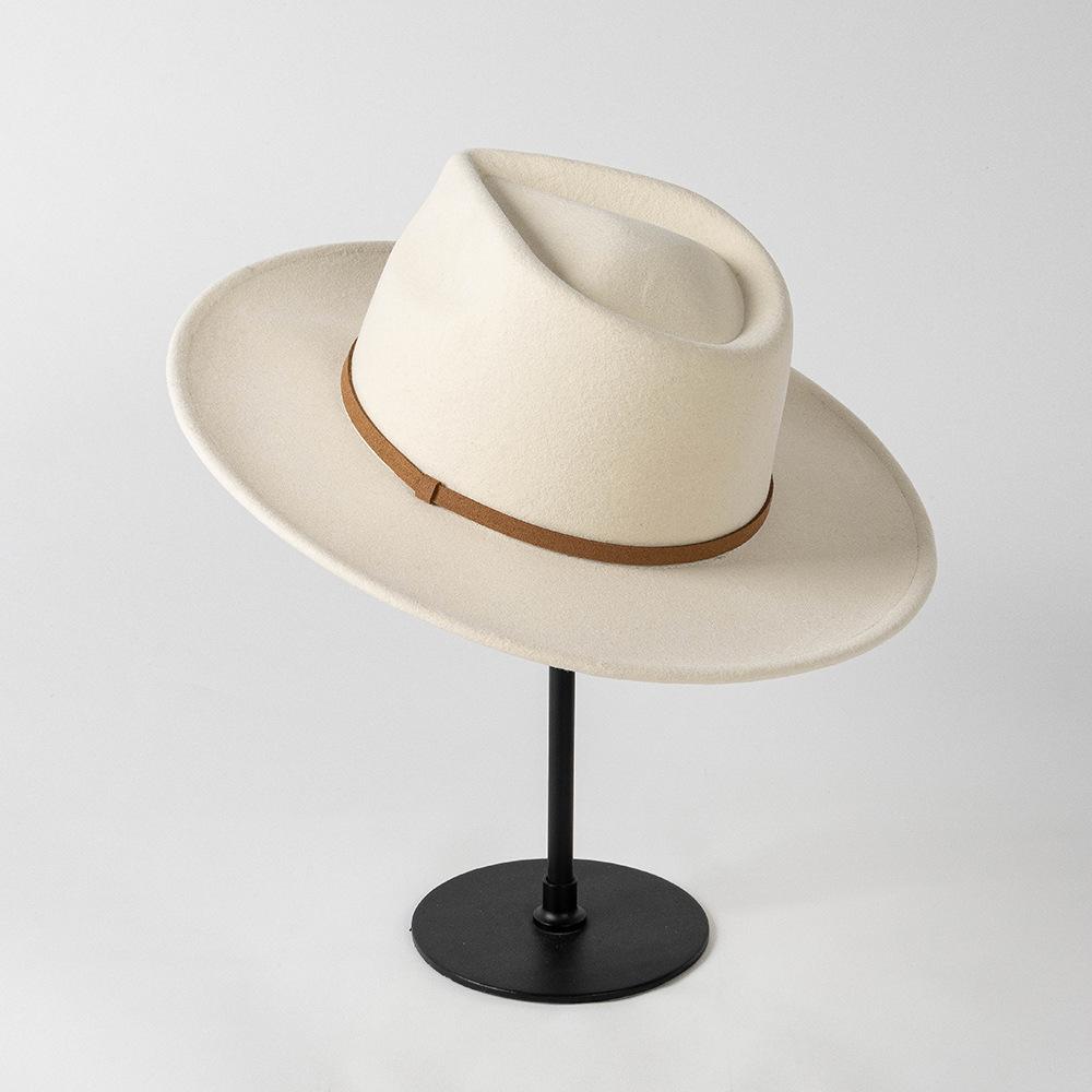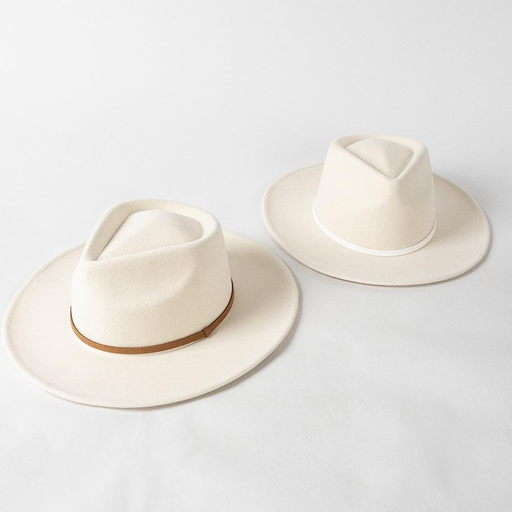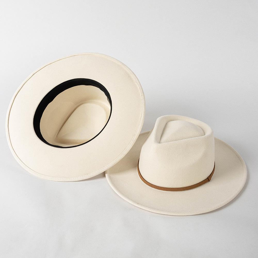 Sombrero de Jazz Simple de Moda Nueva de Otoño e Invierno Europeo y Americano Hebilla de Cinturón Ala Ancha Sombrero de Lana Compras Forma Cóncava Sombrero de Moda