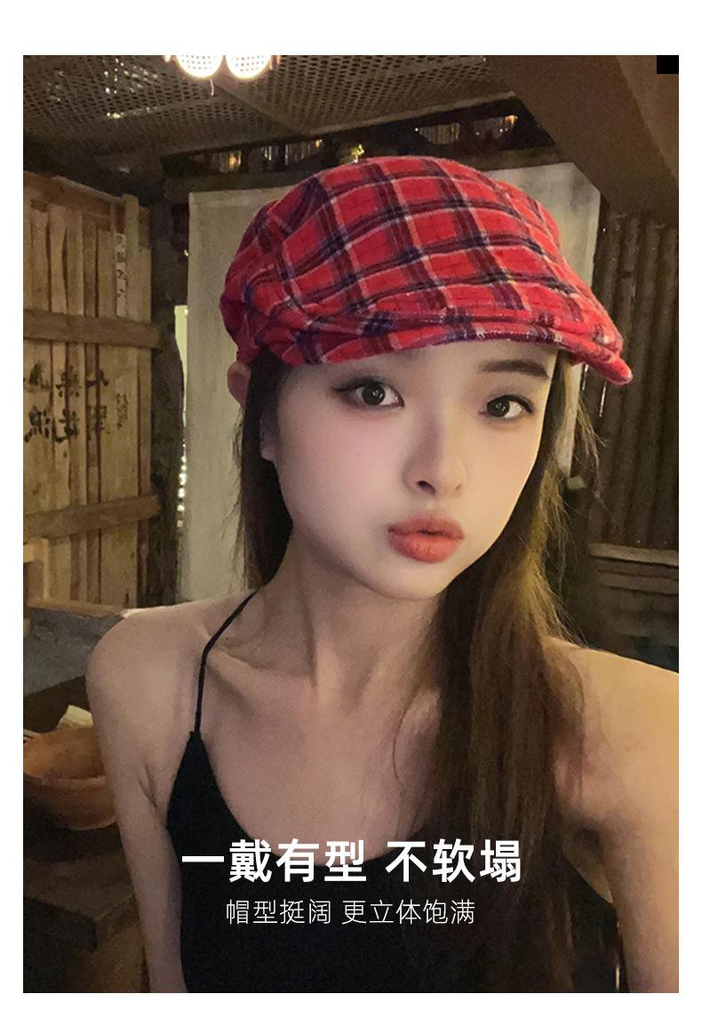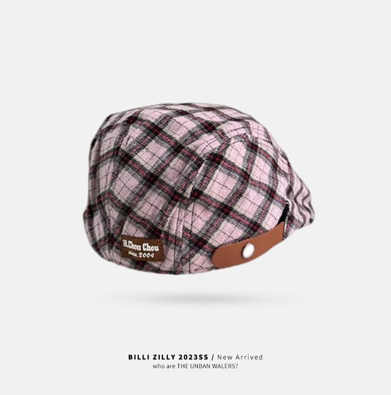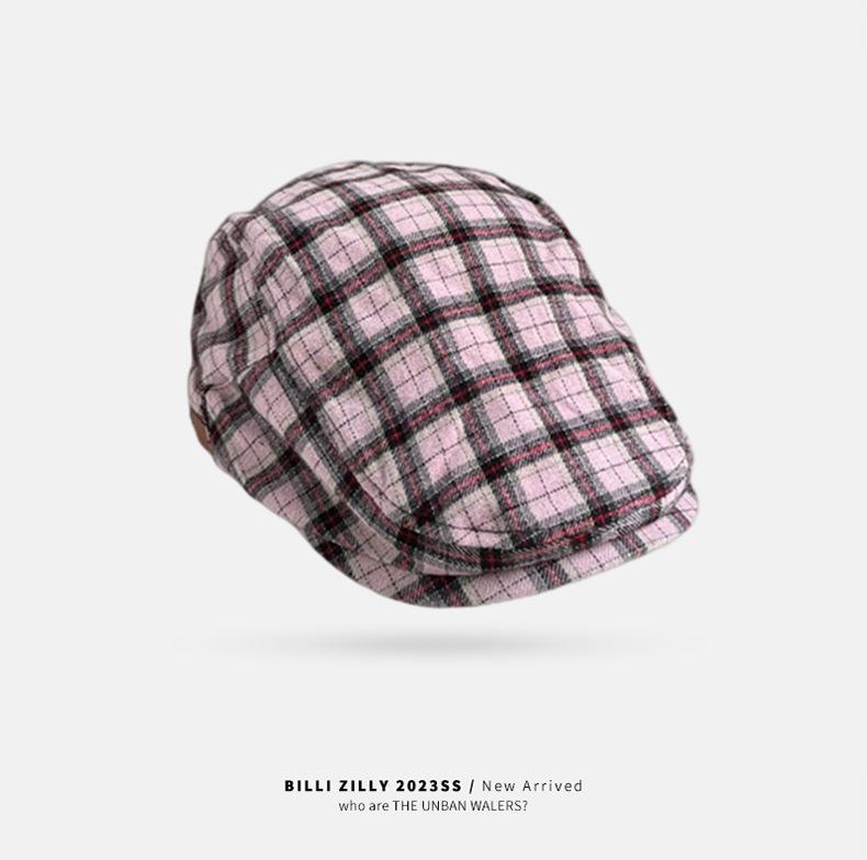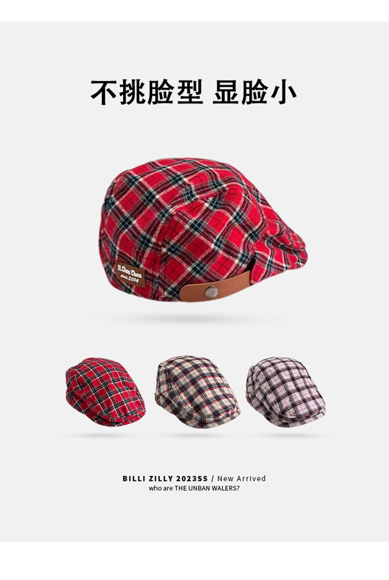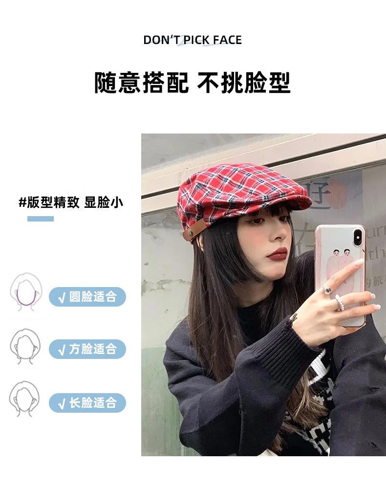 Boina vintage para mujer, estilo japonés, combinable, con cara a cuadros, pequeña, para repartidor de periódicos, sombrero de pintor con gran circunferencia de cabeza y anti-avanzada.