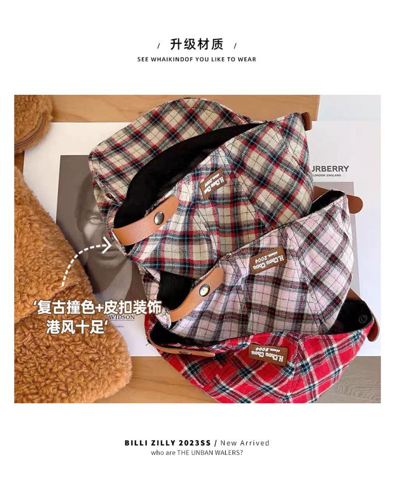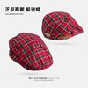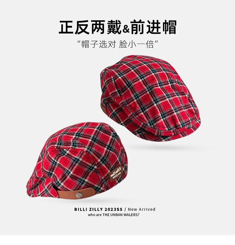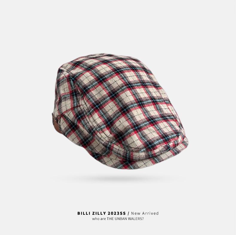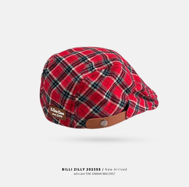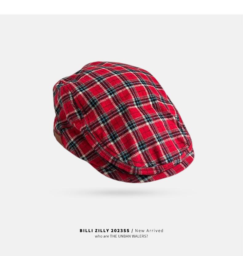 Boina vintage para mujer, estilo japonés, combinable, con cara a cuadros, pequeña, para repartidor de periódicos, sombrero de pintor con gran circunferencia de cabeza y anti-avanzada.