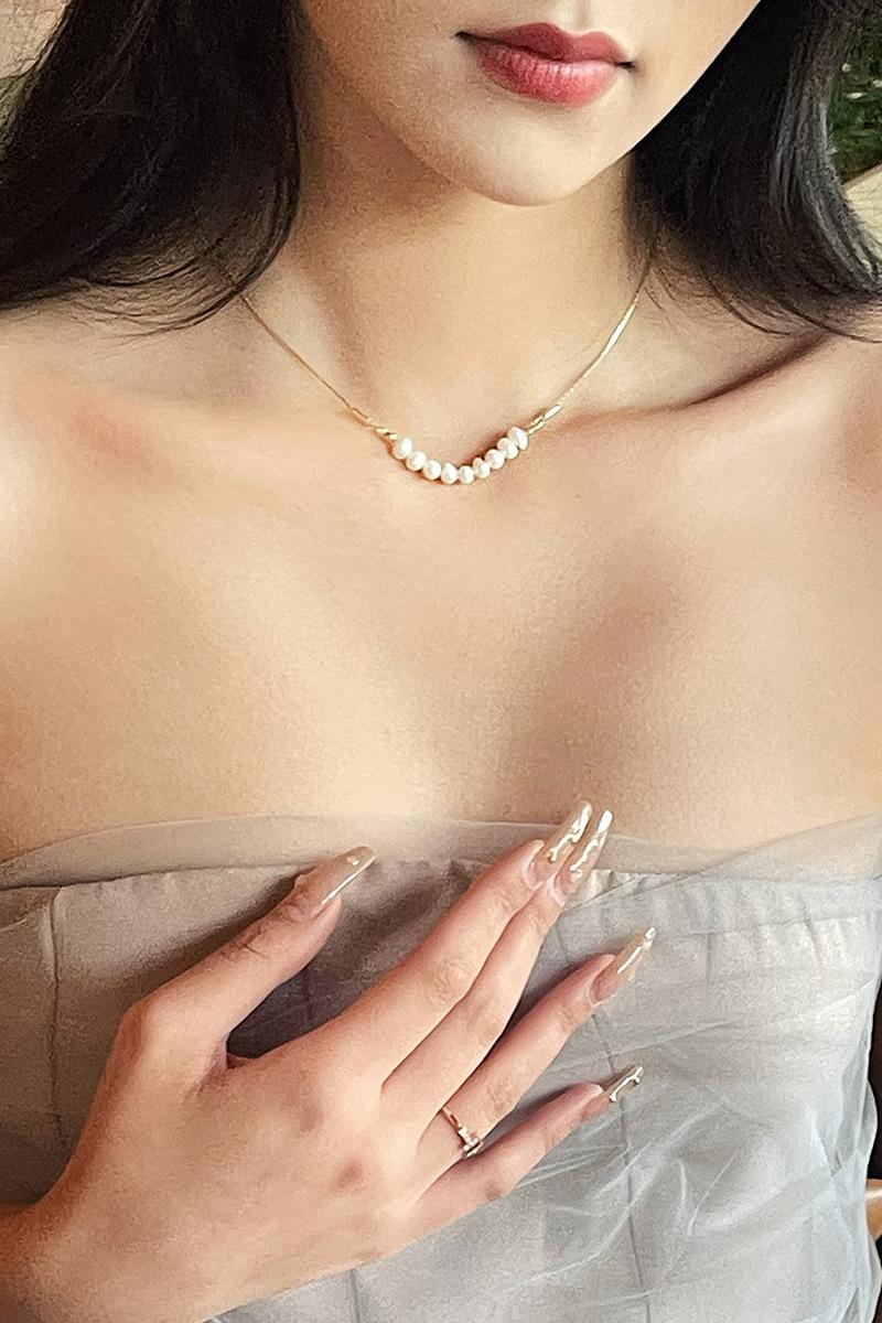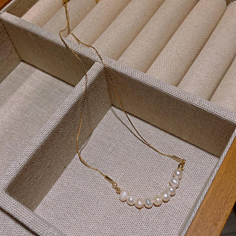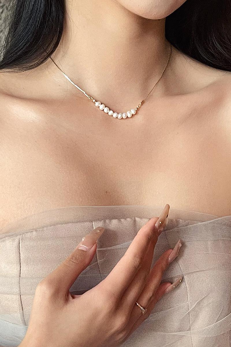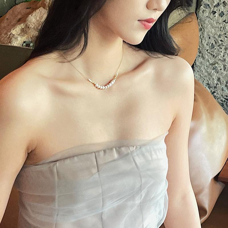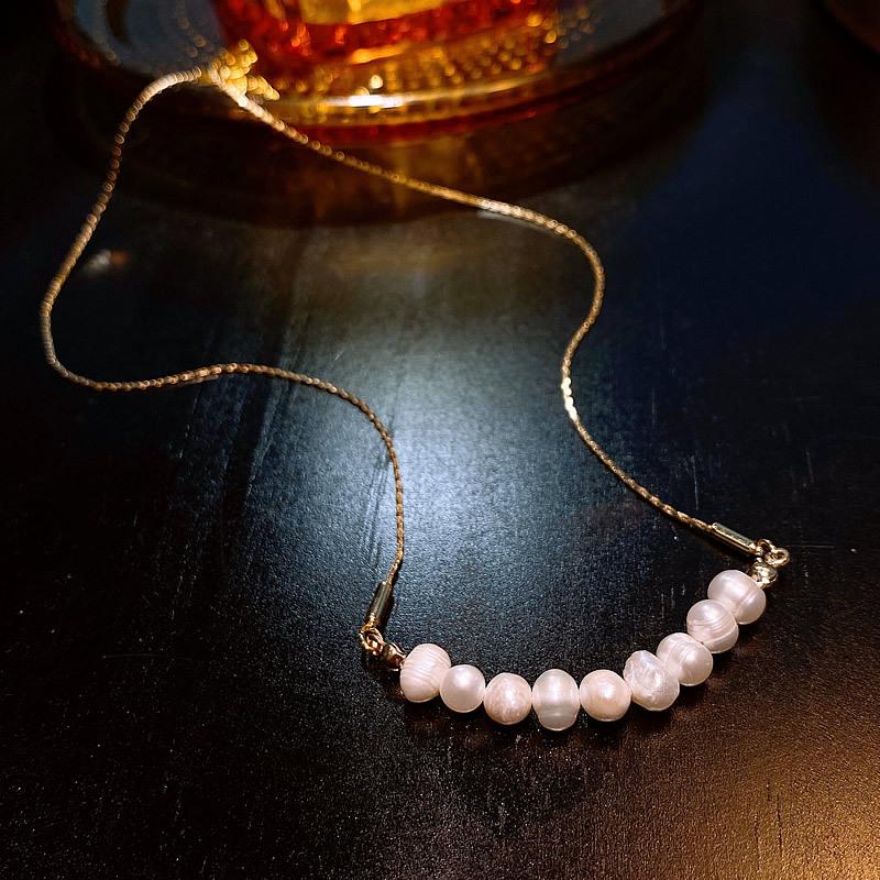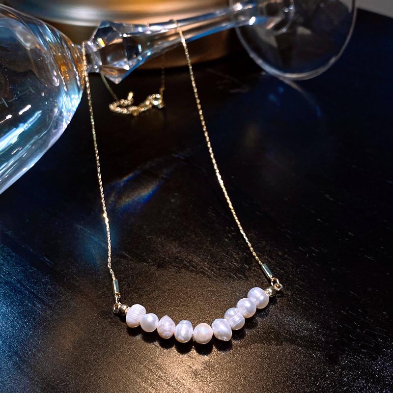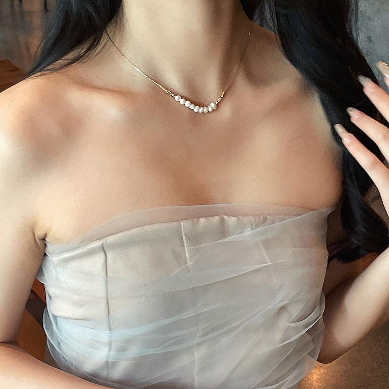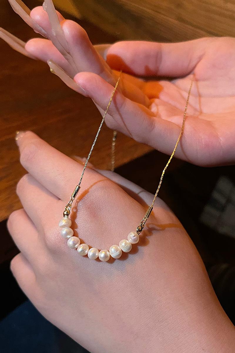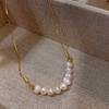 Collar de Perlas Barrocas Casi Redondas de Agua Dulce para Mujer Diseño de Moda Cadena Clavicular Acero Titanio Perla de Agua Dulce Ovalada Cadena para el Cuello