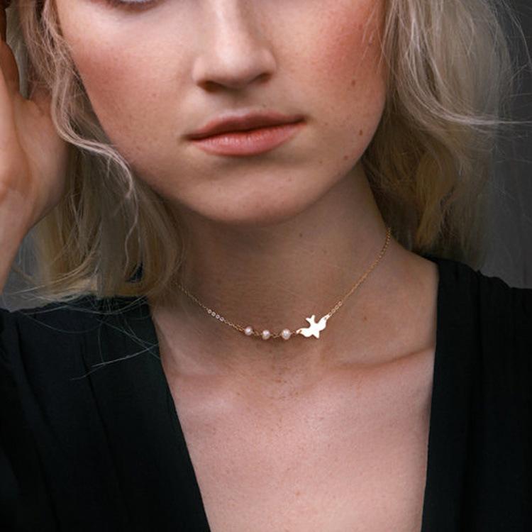 Joyería de comercio exterior europea y americana, tendencia de moda de verano, accesorios para mujer que combinan con todo, collar con colgante de paloma con lentejuelas dobles