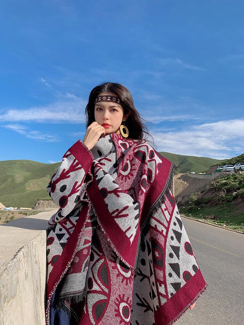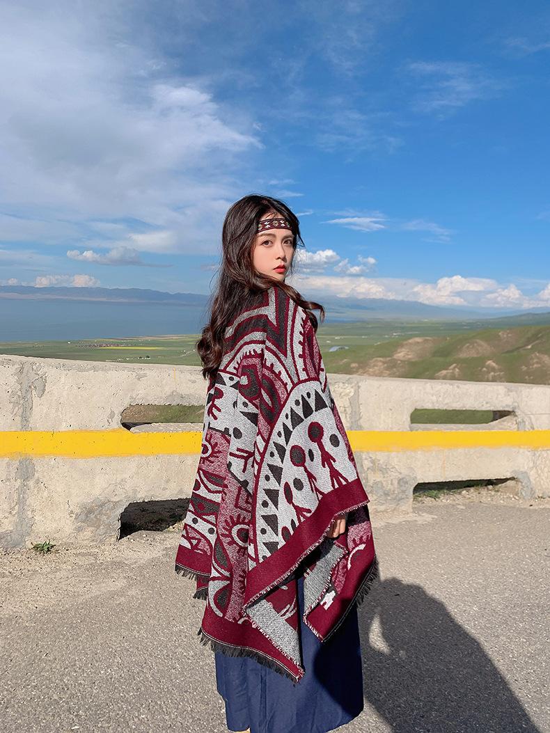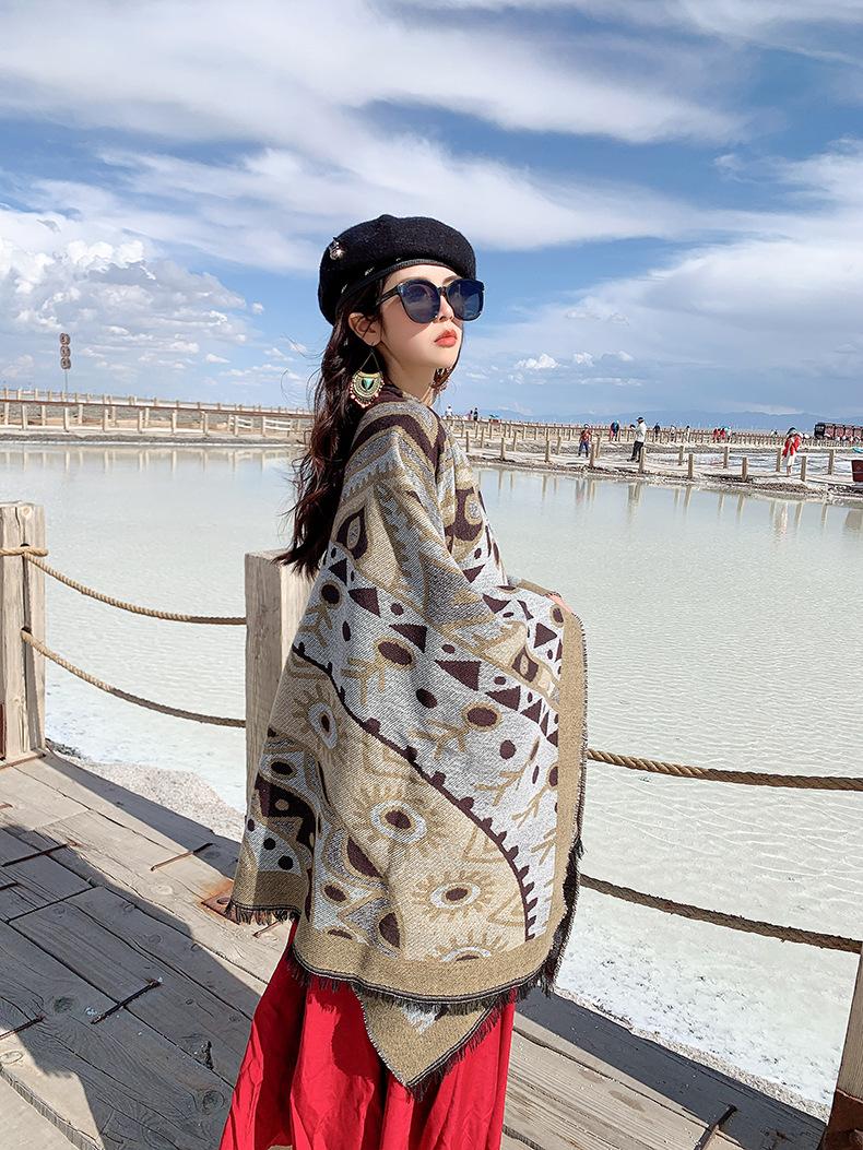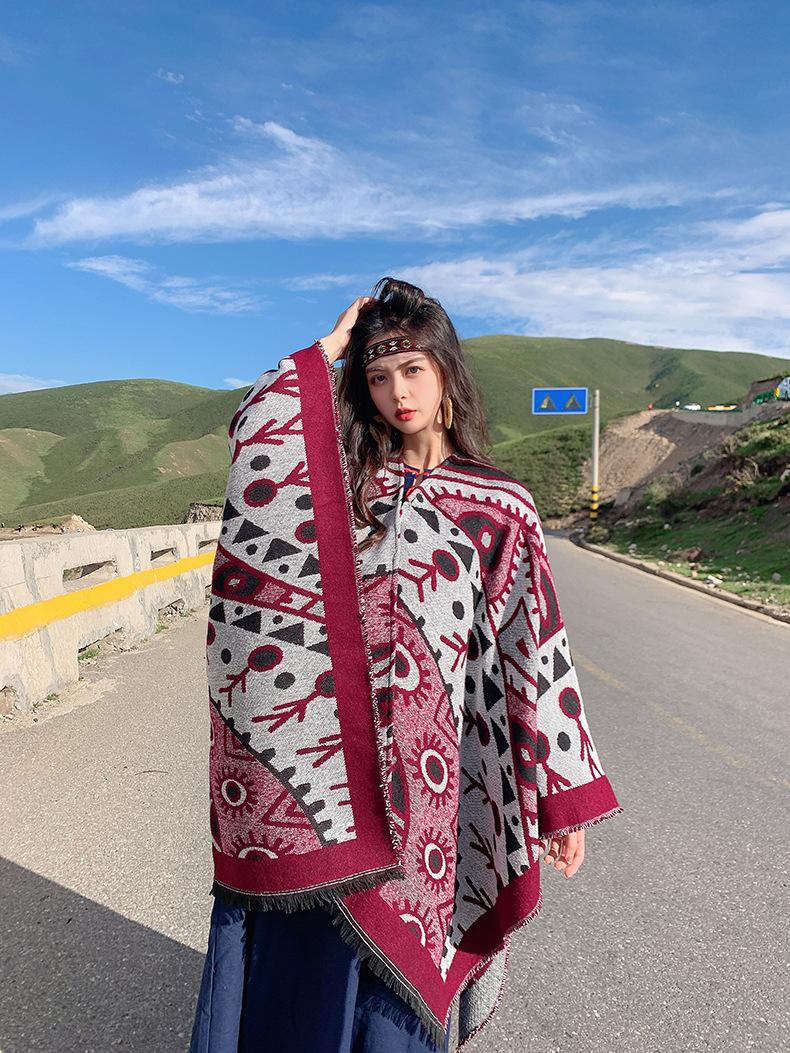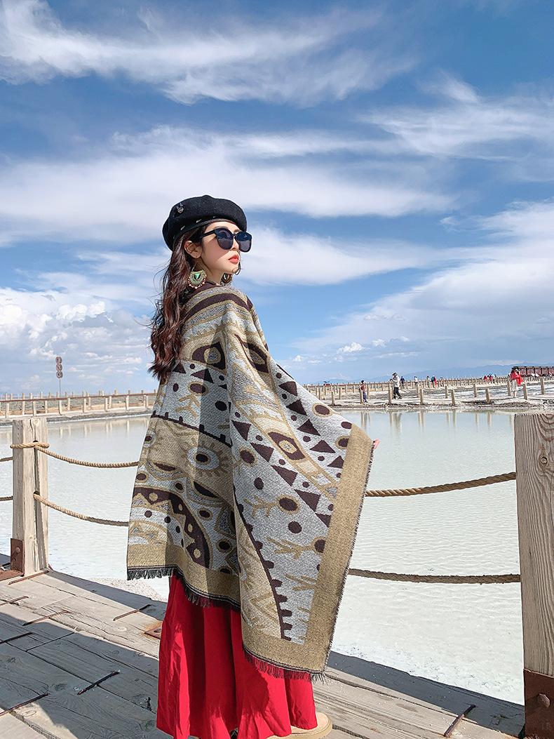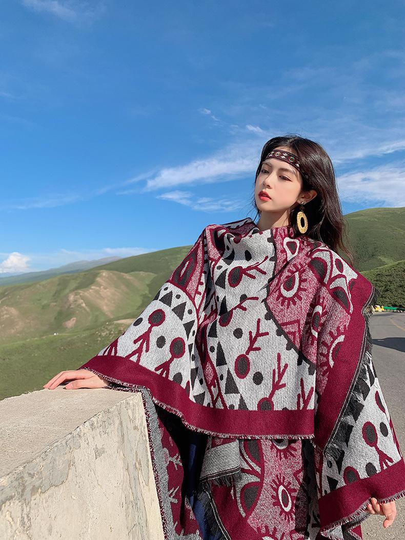 Chal bufanda grande estilo étnico femenino Yunnan Lijiang Xizang fotografía de viaje capa cálida abrigo para habitación con aire acondicionado de verano