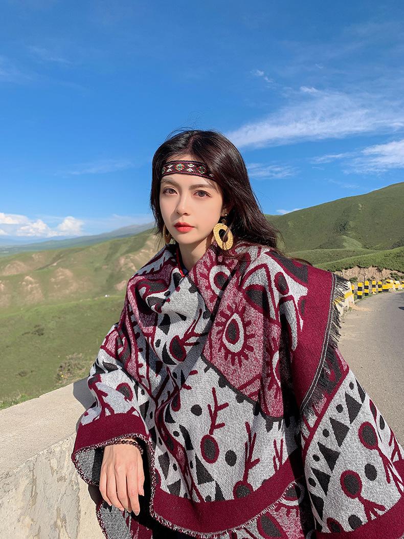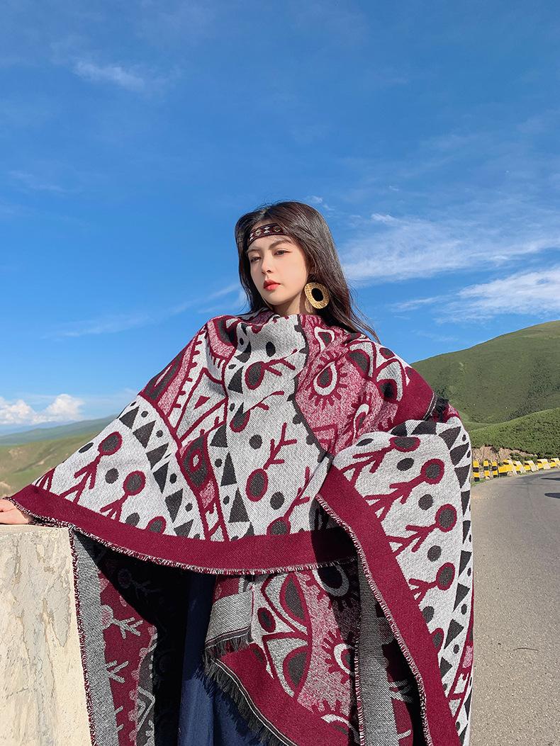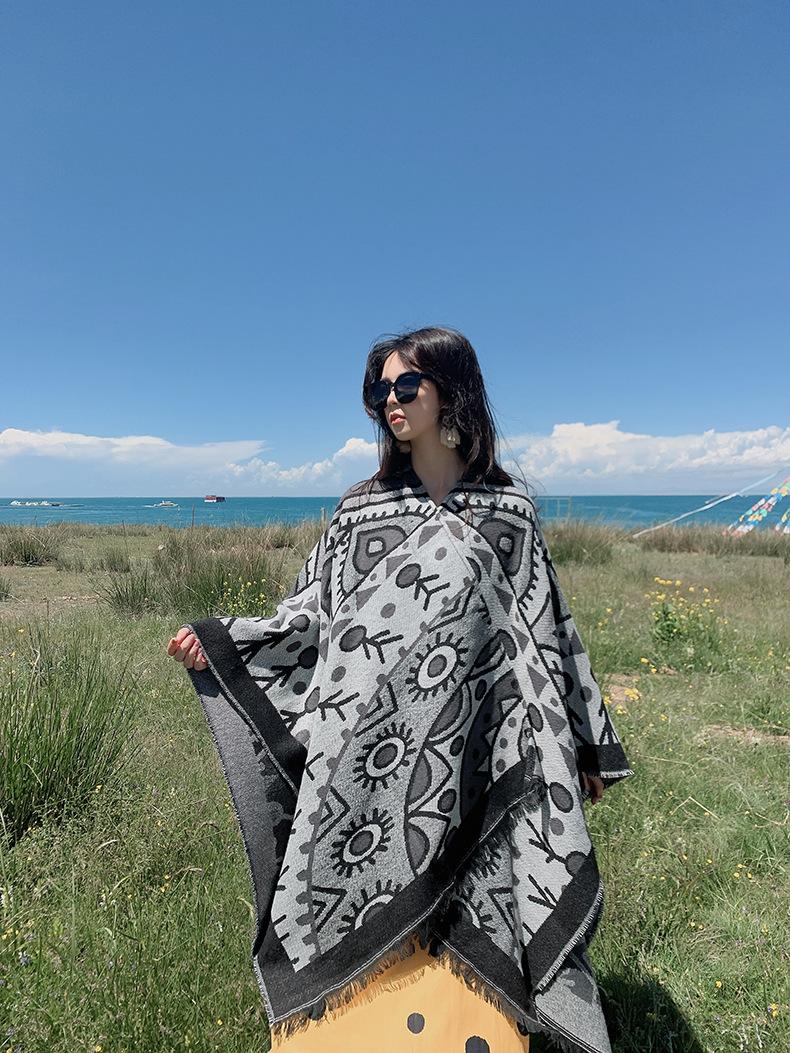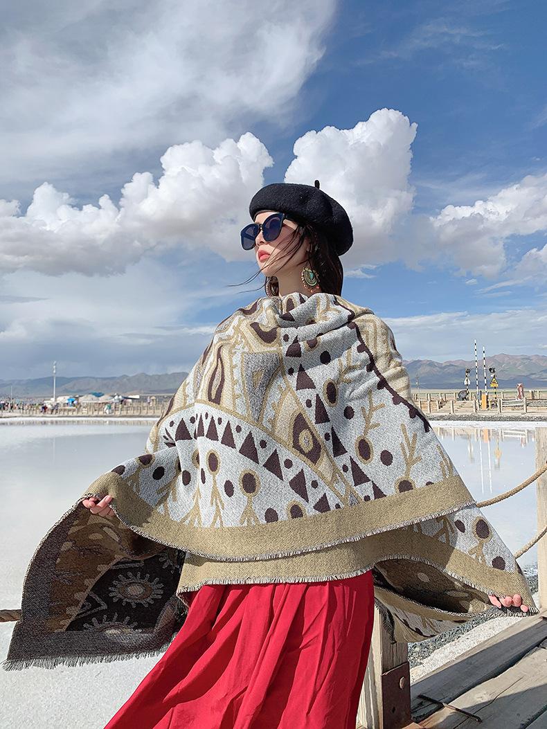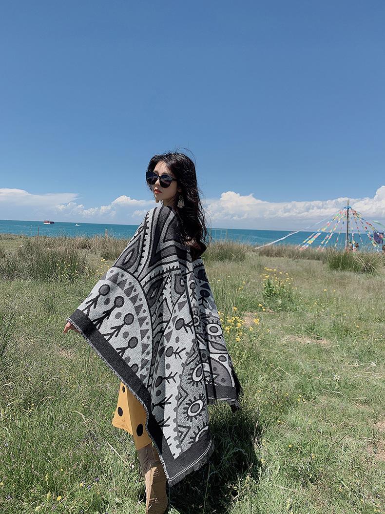 Chal bufanda grande estilo étnico femenino Yunnan Lijiang Xizang fotografía de viaje capa cálida abrigo para habitación con aire acondicionado de verano