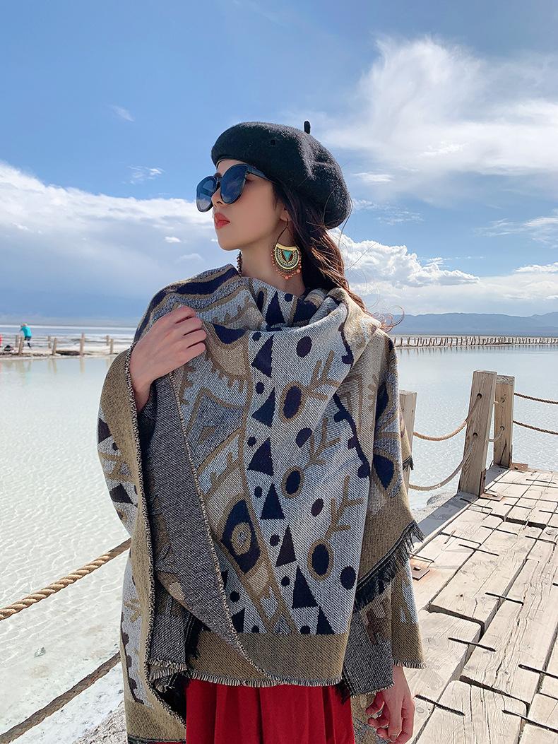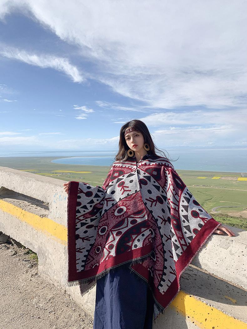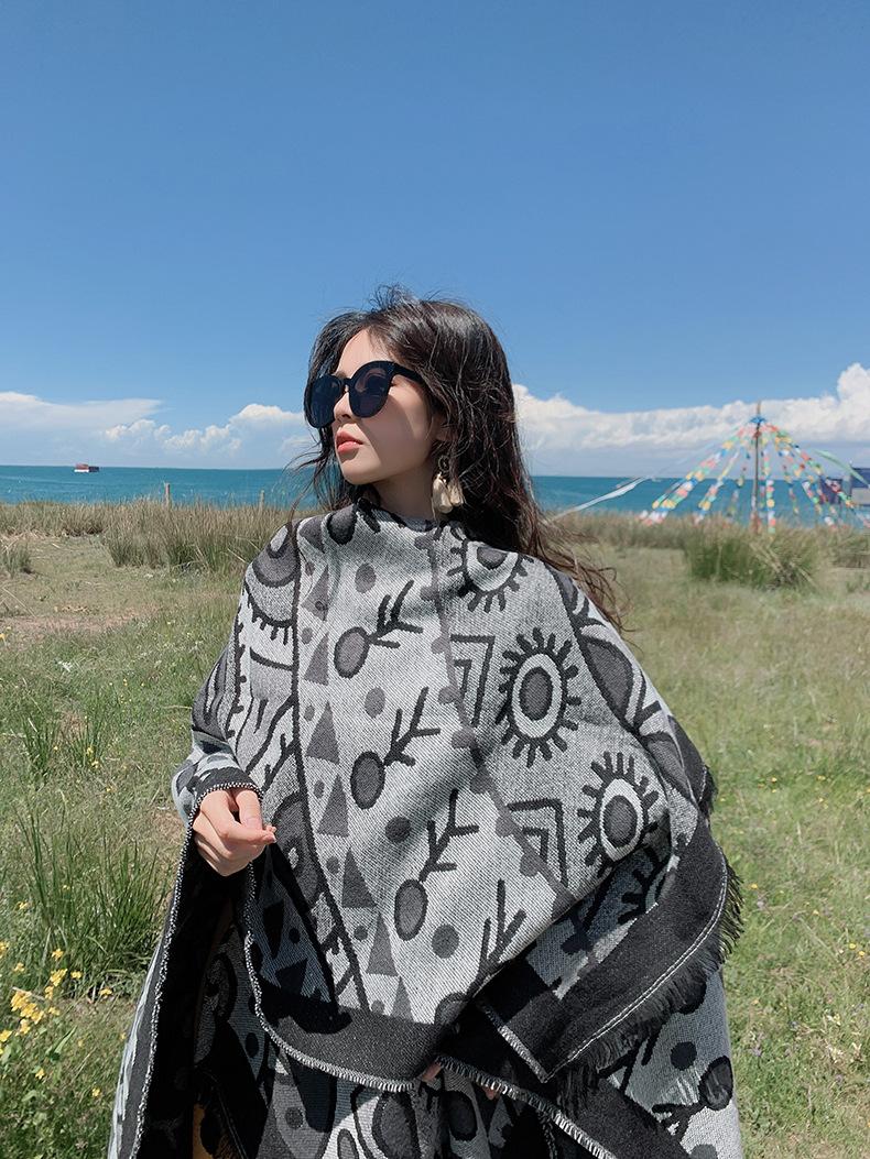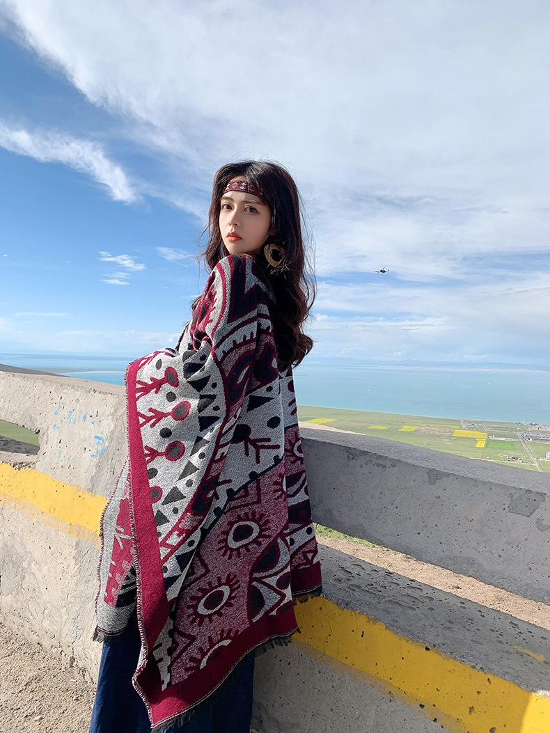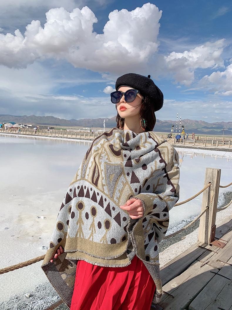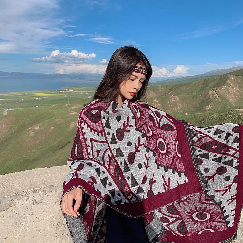 Chal bufanda grande estilo étnico femenino Yunnan Lijiang Xizang fotografía de viaje capa cálida abrigo para habitación con aire acondicionado de verano
