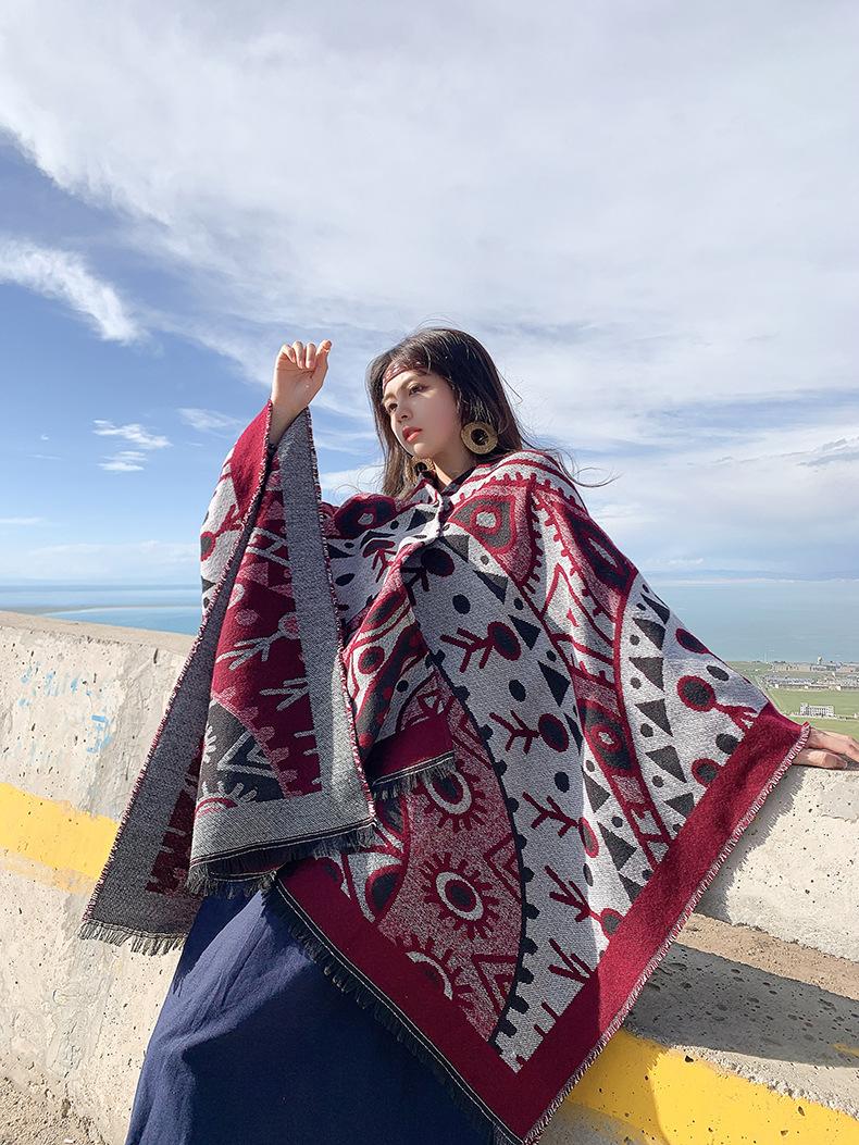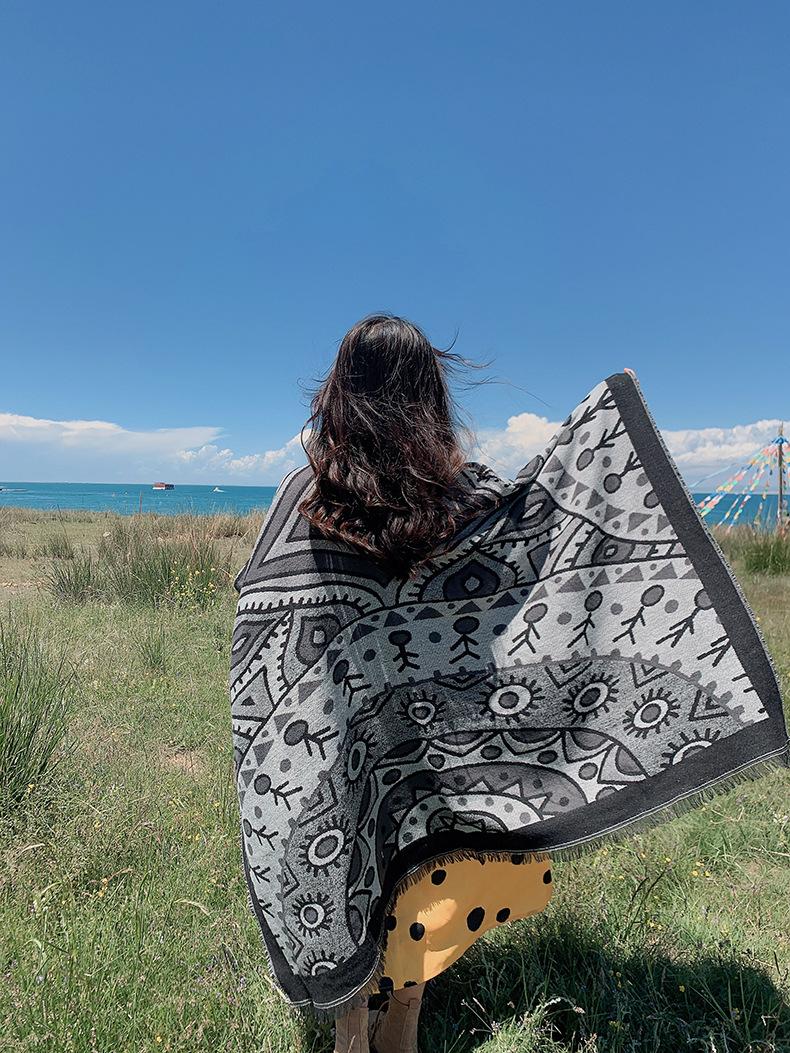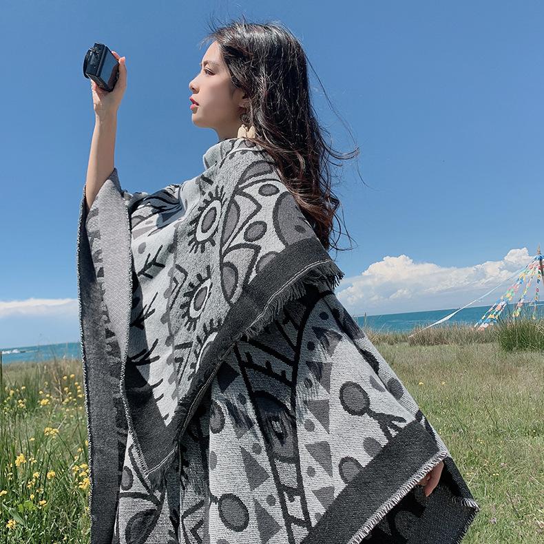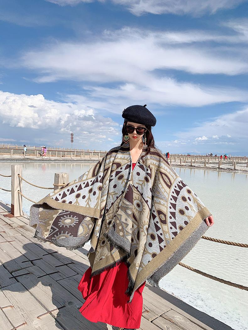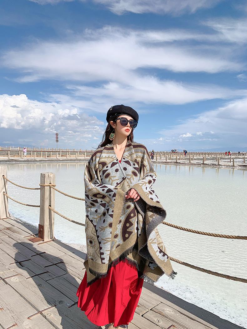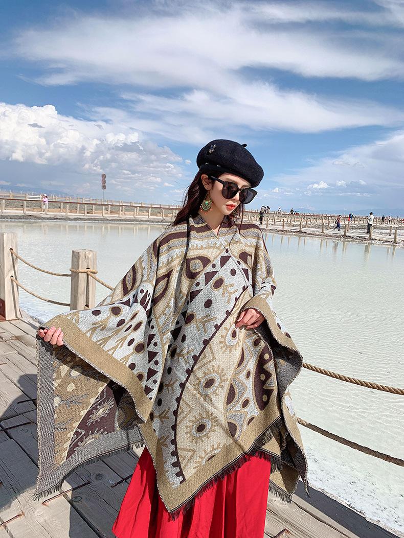 Chal bufanda grande estilo étnico femenino Yunnan Lijiang Xizang fotografía de viaje capa cálida abrigo para habitación con aire acondicionado de verano
