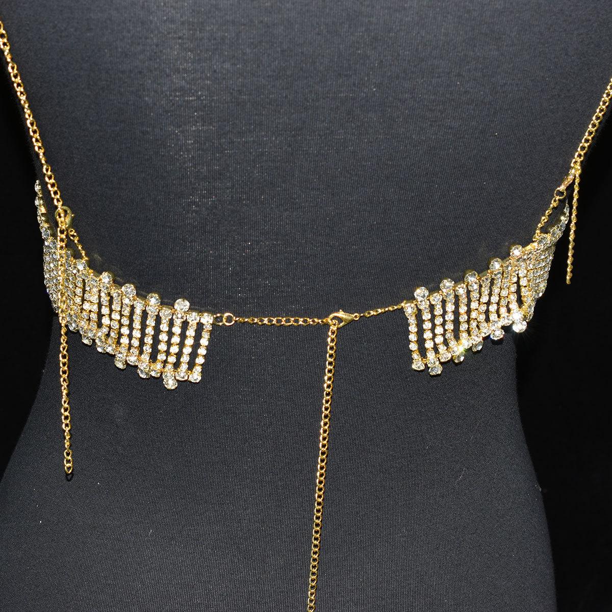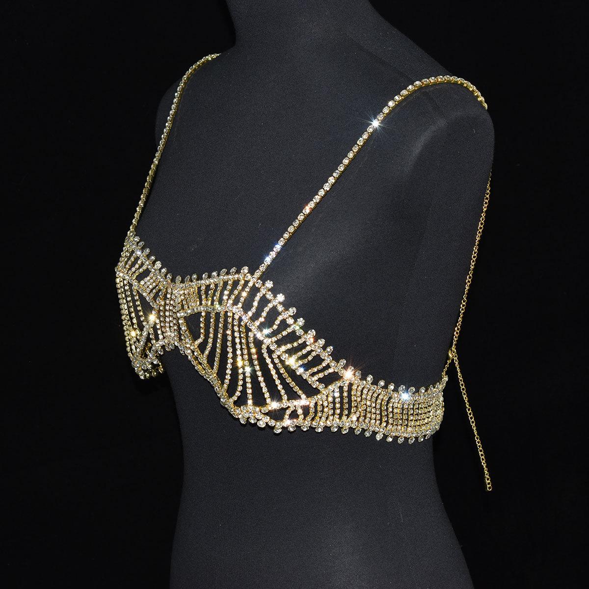 Sujetador multicapa sexy de moda para mujer, estilo europeo y americano, con cadena para el cuerpo, con diamantes de imitación y superbrillante para discoteca