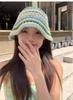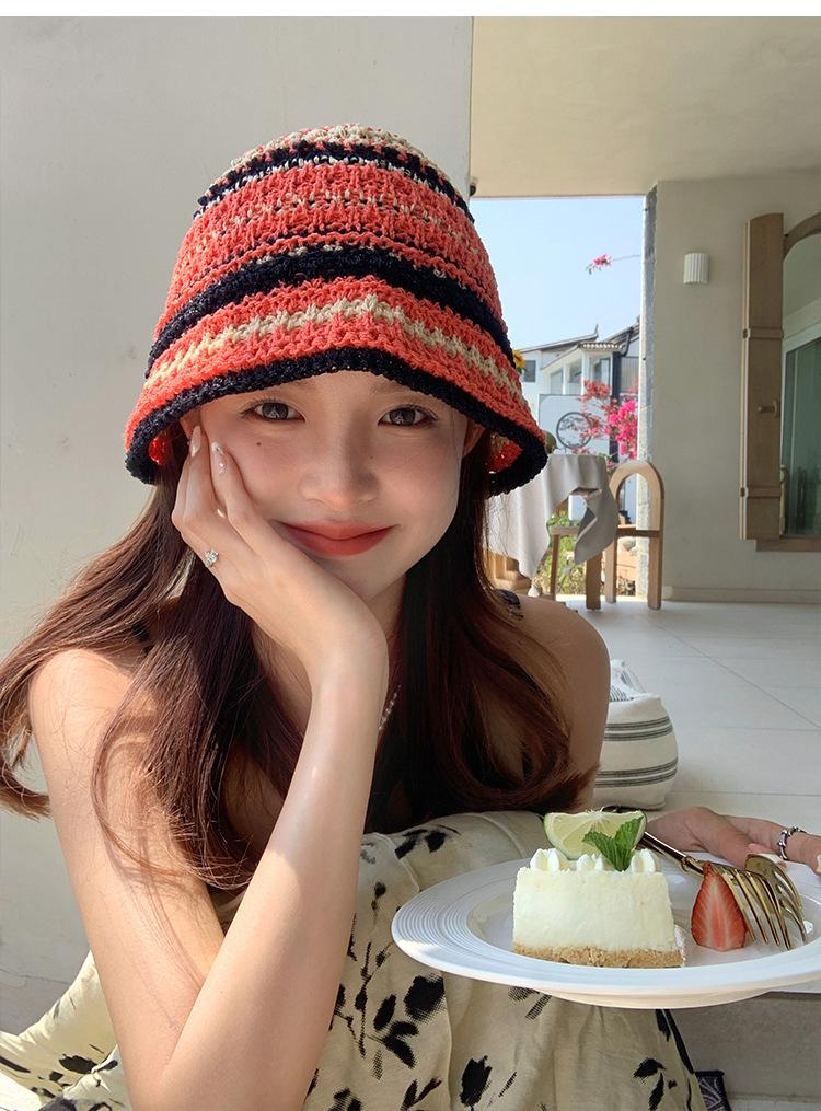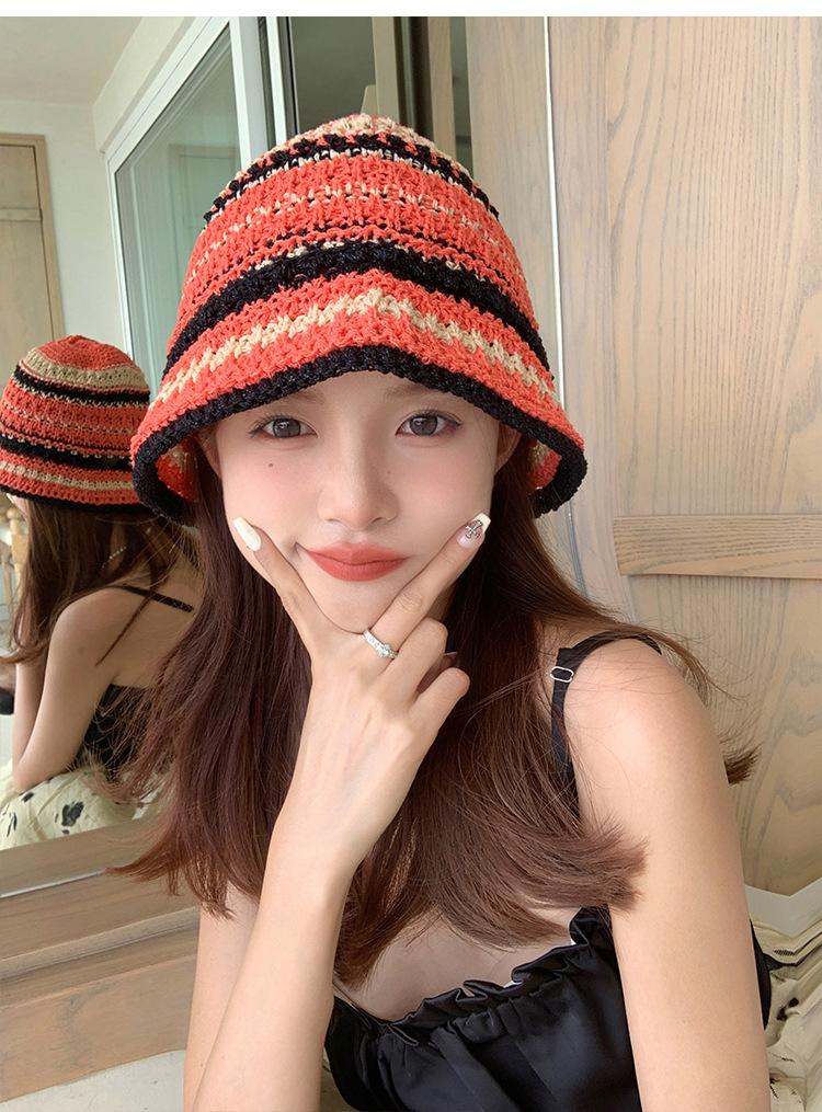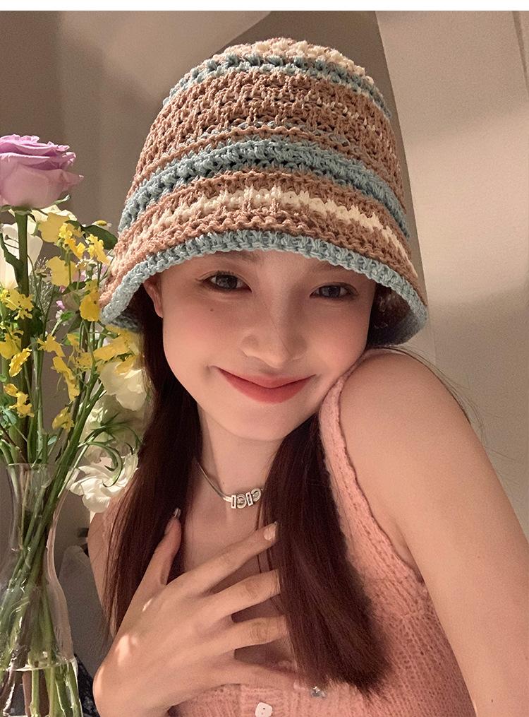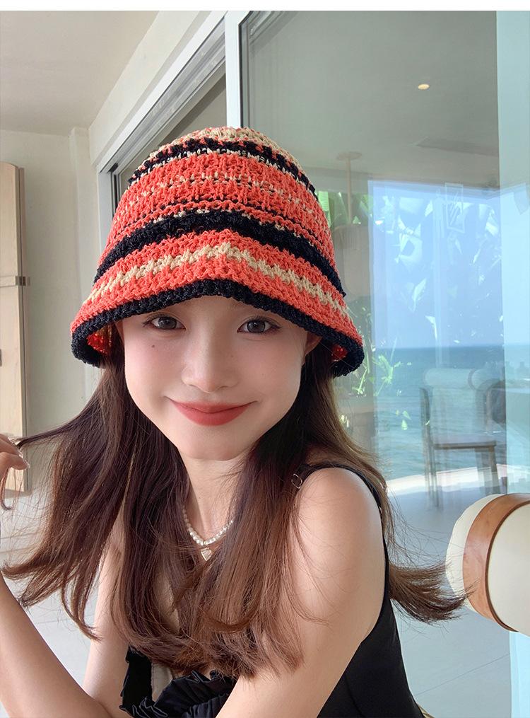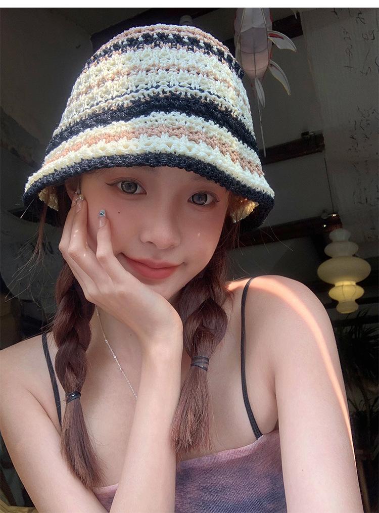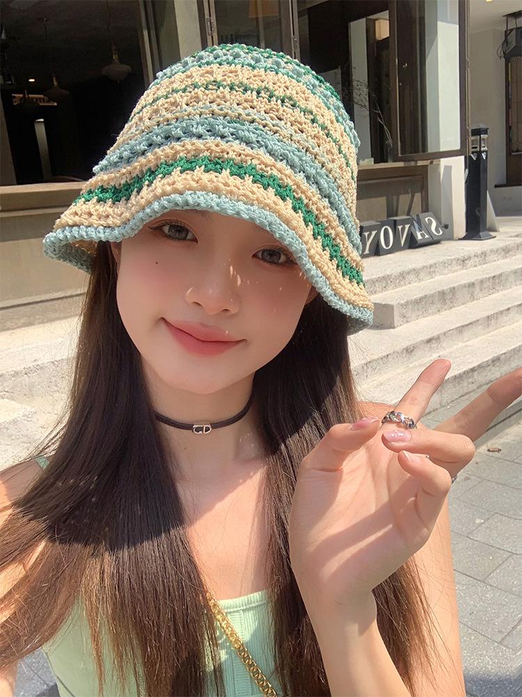 2025 Nuevo Estilo Sombrero de Cubo Tejido a Rayas con Bloque de Color Calado Sombrero de Protección Solar Sombrero para el Sol para Mujer