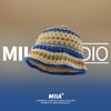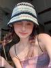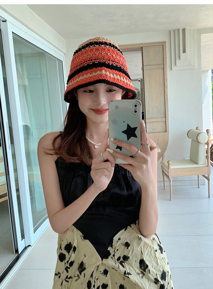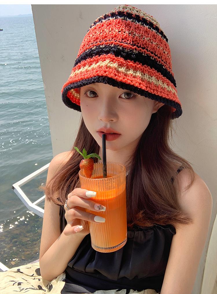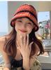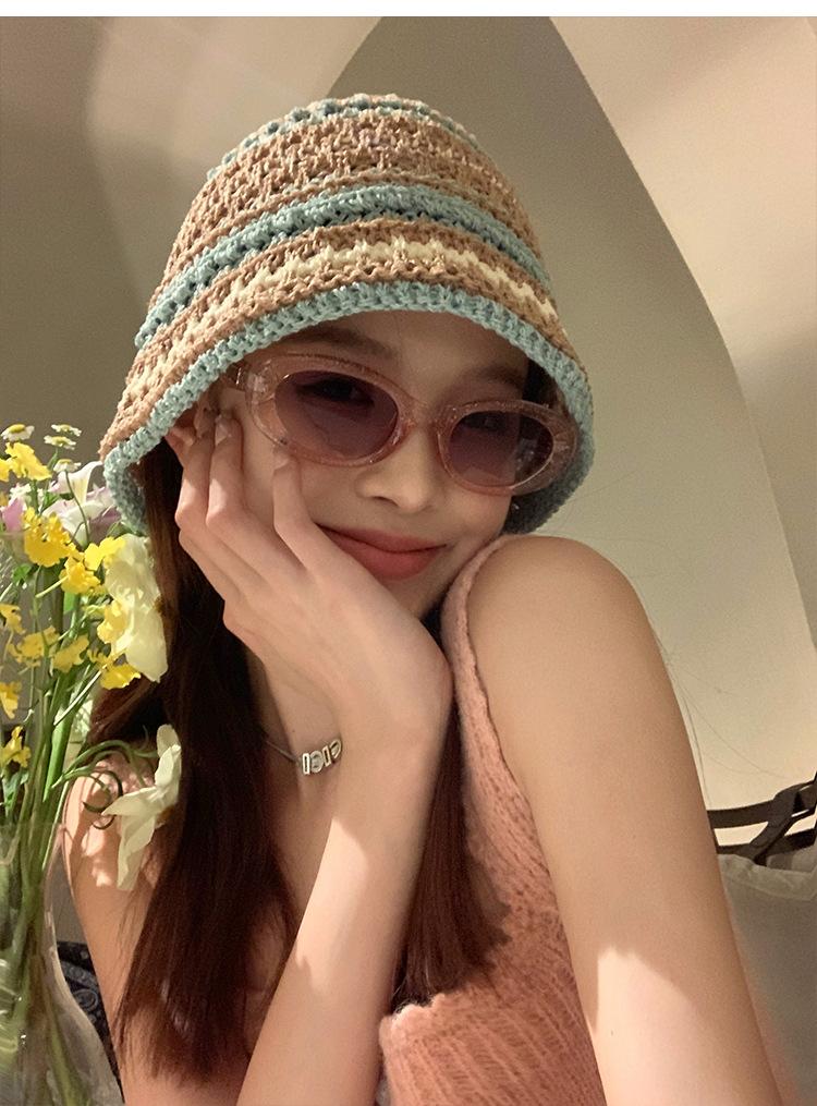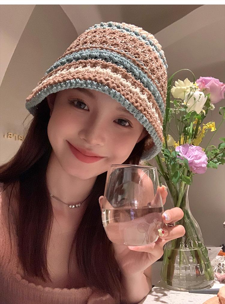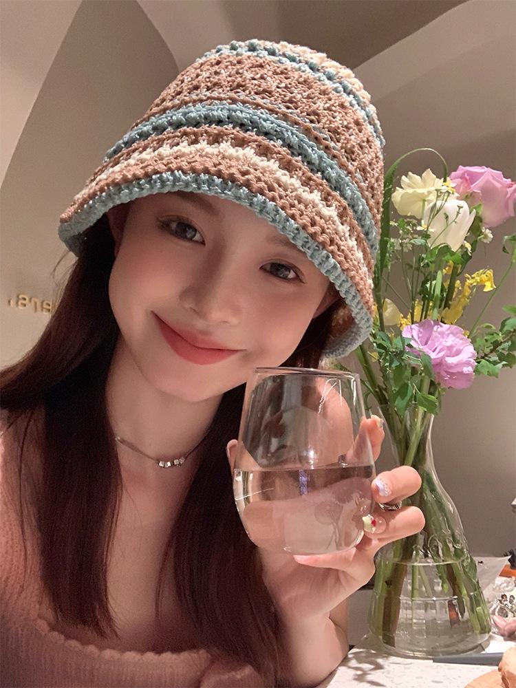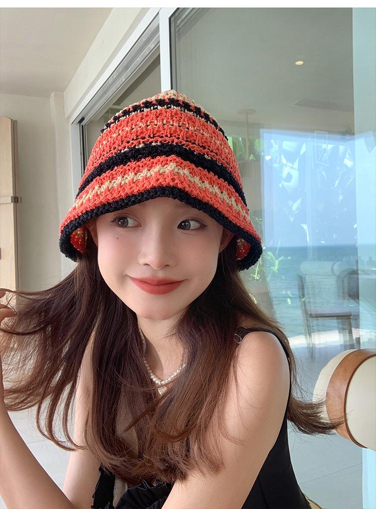 2025 Nuevo Estilo Sombrero de Cubo Tejido a Rayas con Bloque de Color Calado Sombrero de Protección Solar Sombrero para el Sol para Mujer