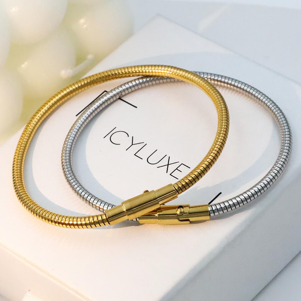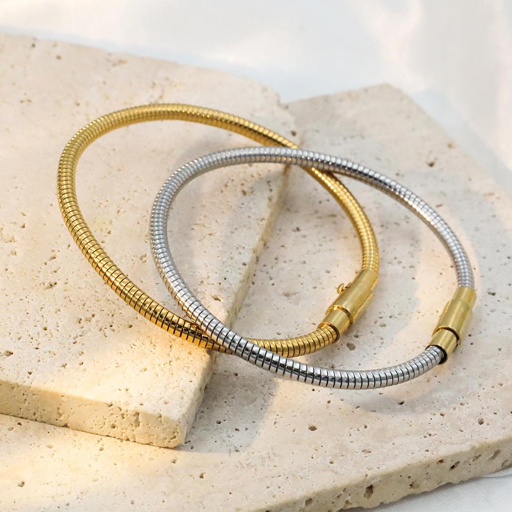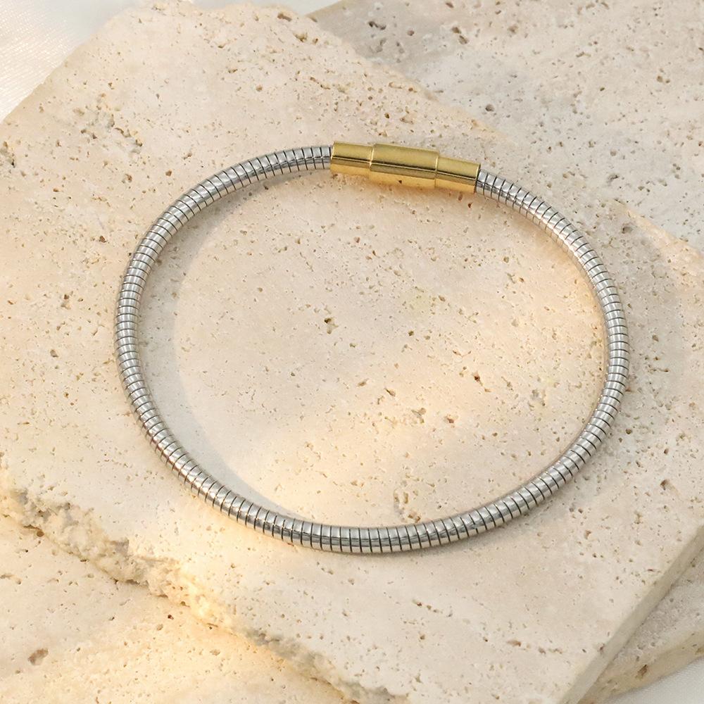 Pulsera de Cadena de Hueso de Serpiente Elástica de Acero de Titanio Sencilla y Moderna de Joyería de Nicho de Lujo Ligero Europeo y Americano Transfronterizo para Mujer al por Mayor
