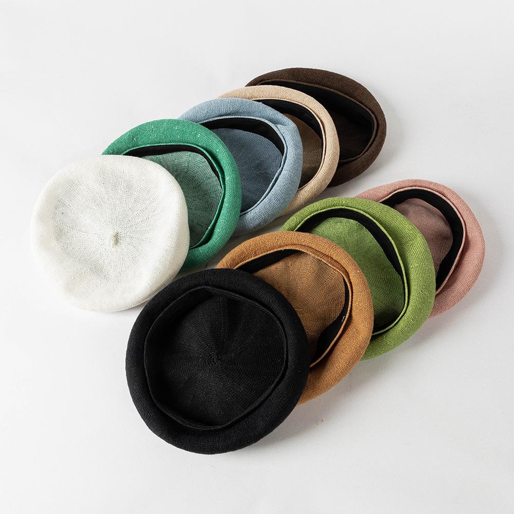 Primavera y verano nuevo casual moda transpirable tejido lino ala profunda aro de cintura boina tridimensional sombrero de pintor red moda