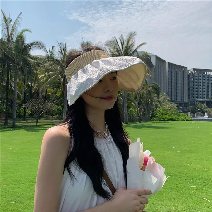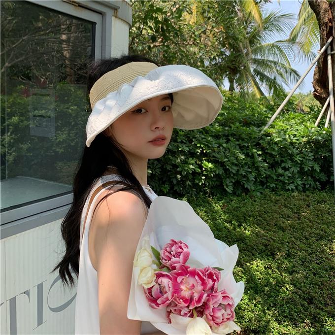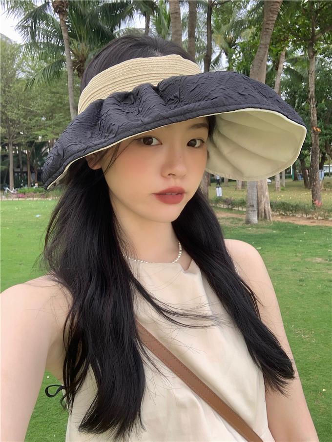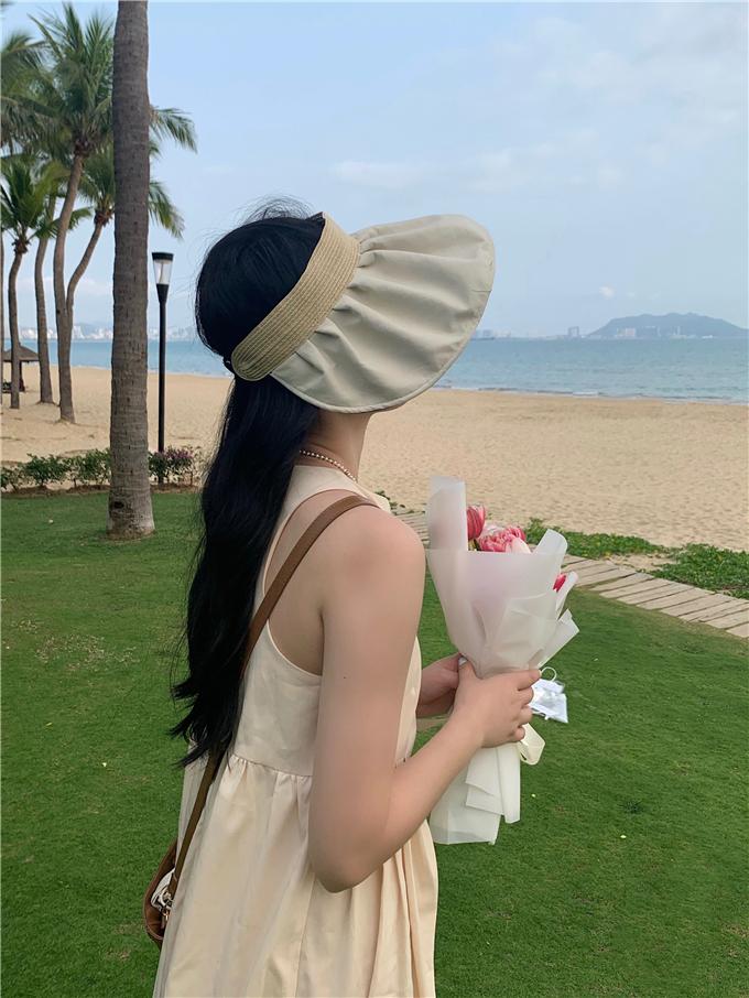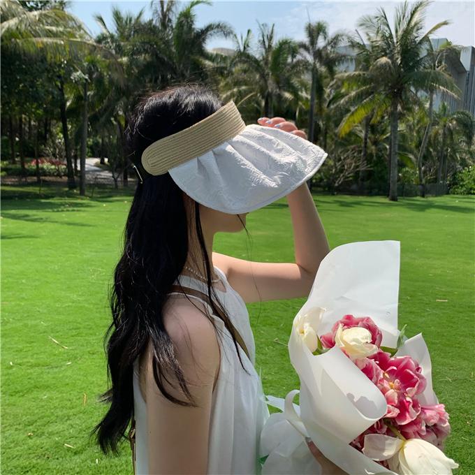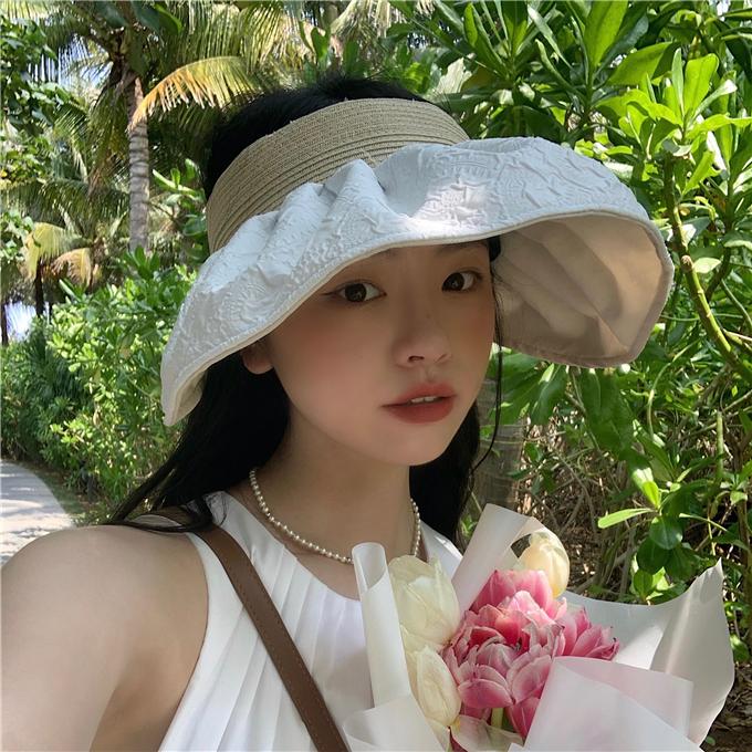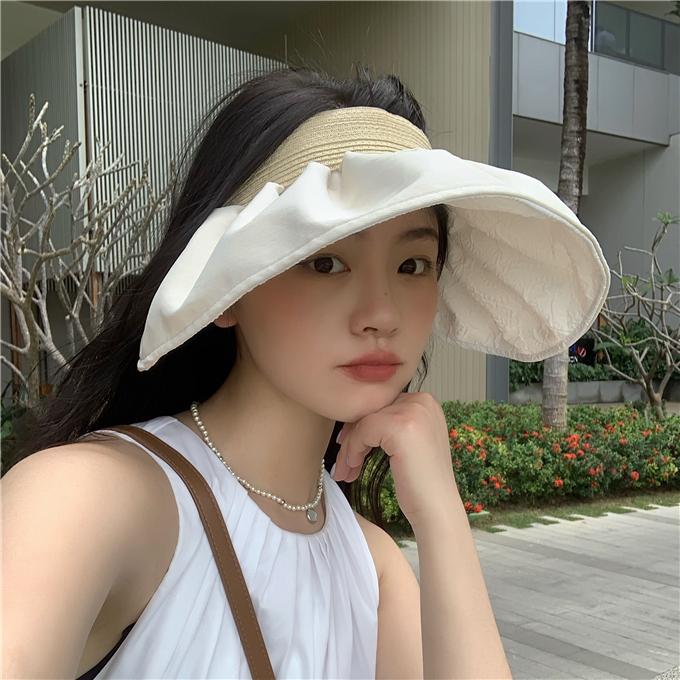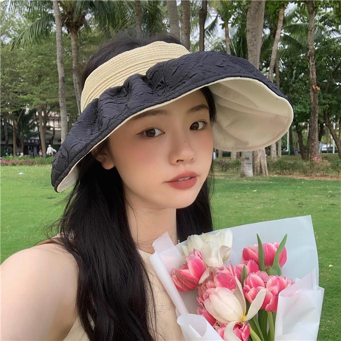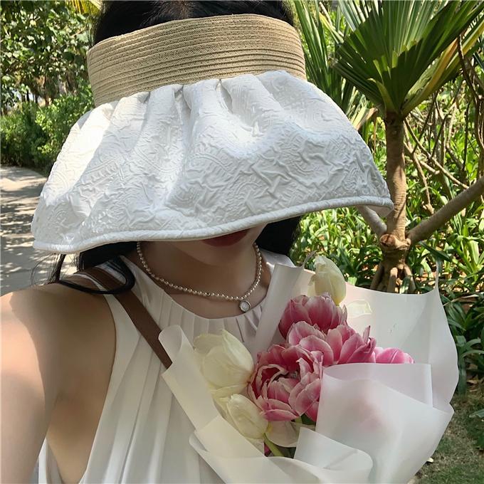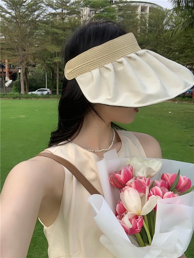Nuevo Sombrero Protector Solar para Mujer Primavera y Verano Cubre Rostro Anti-ultravioleta Sombrero de Copa de Aire Sombrilla para Exterior Sombrero de Sol Grande con Forma de Mazorca Sombrero de Paja