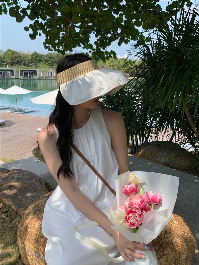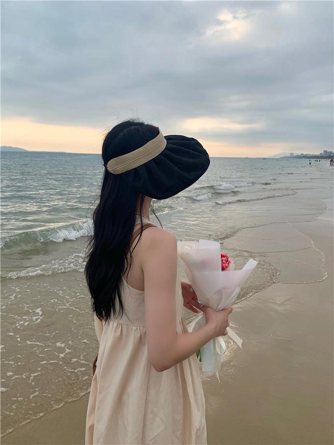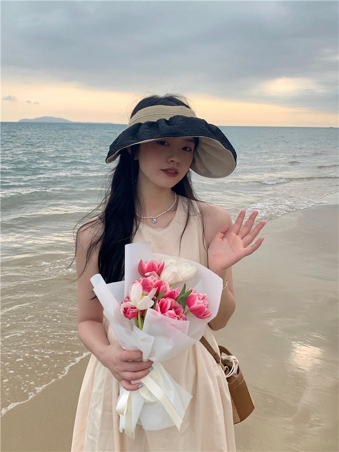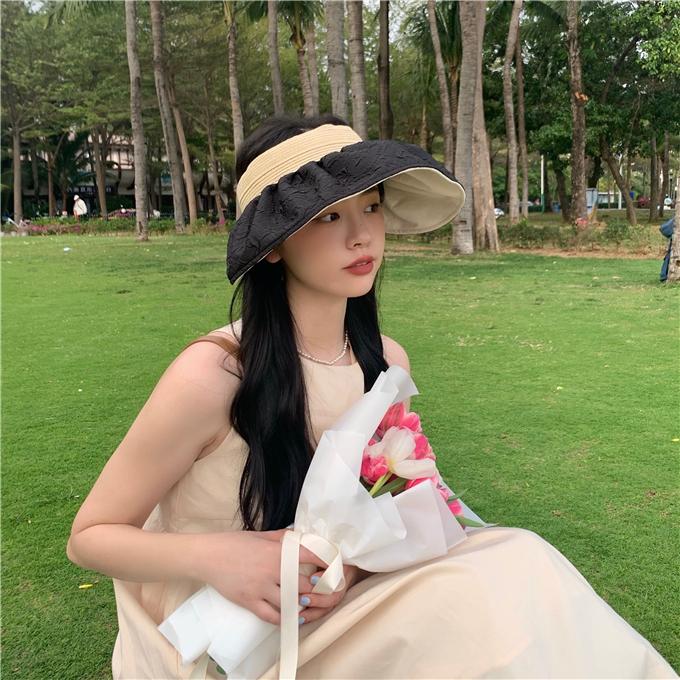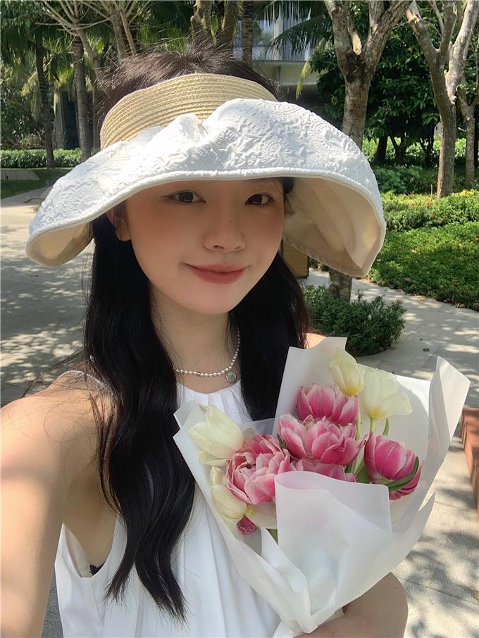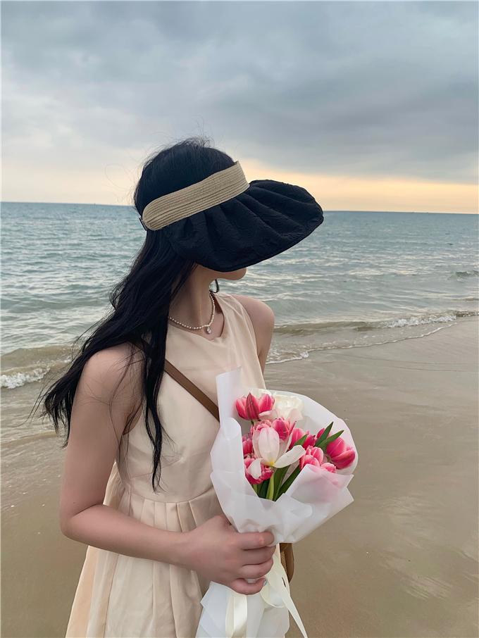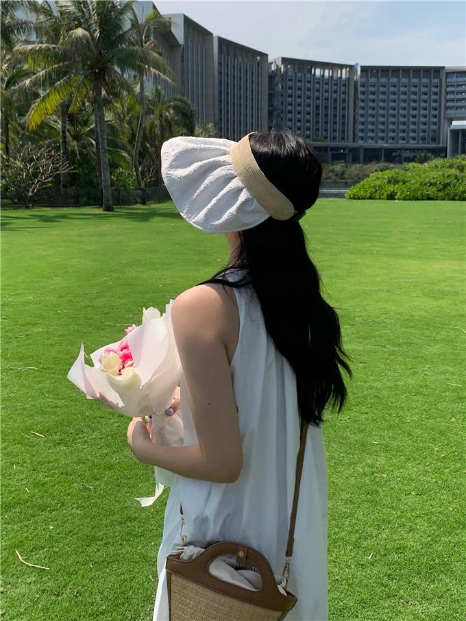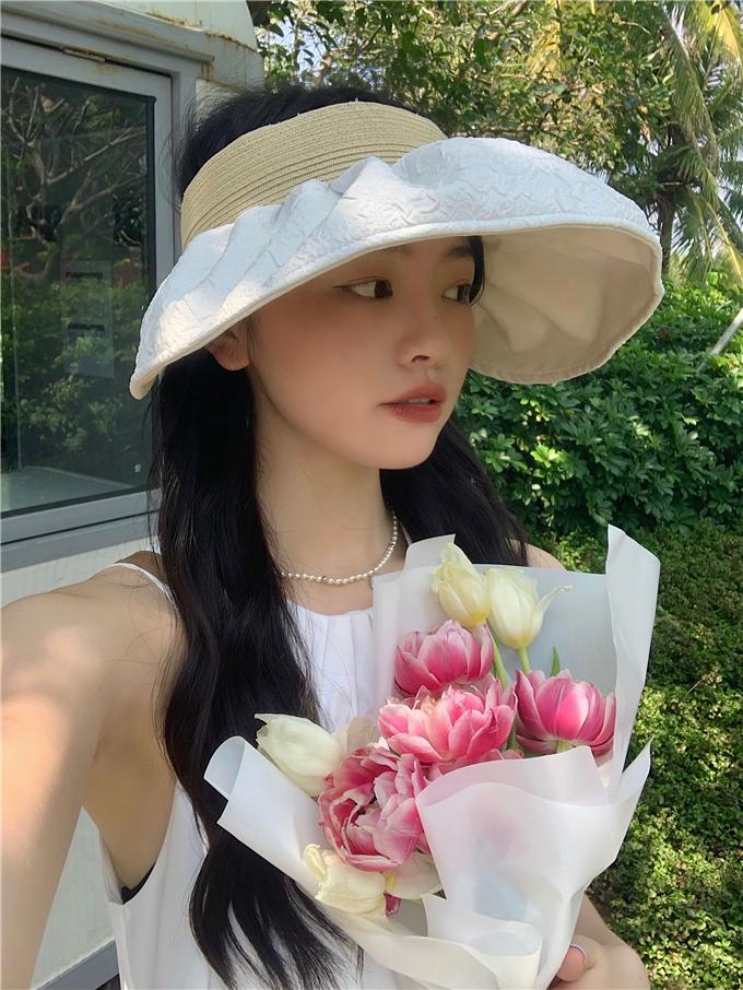 Nuevo Sombrero Protector Solar para Mujer Primavera y Verano Cubre Rostro Anti-ultravioleta Sombrero de Copa de Aire Sombrilla para Exterior Sombrero de Sol Grande con Forma de Mazorca Sombrero de Paja