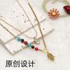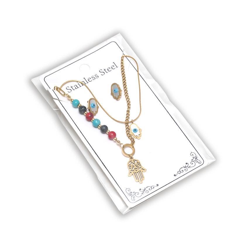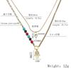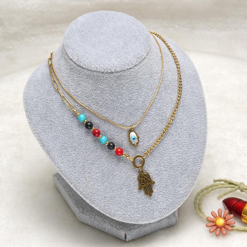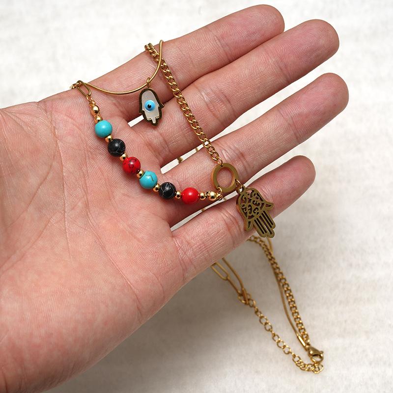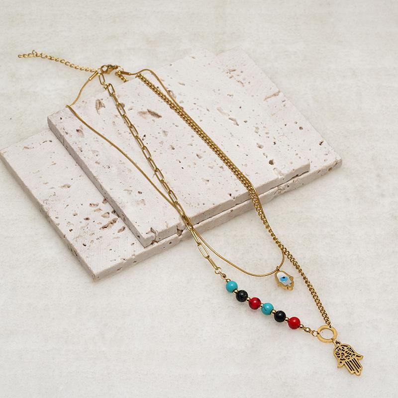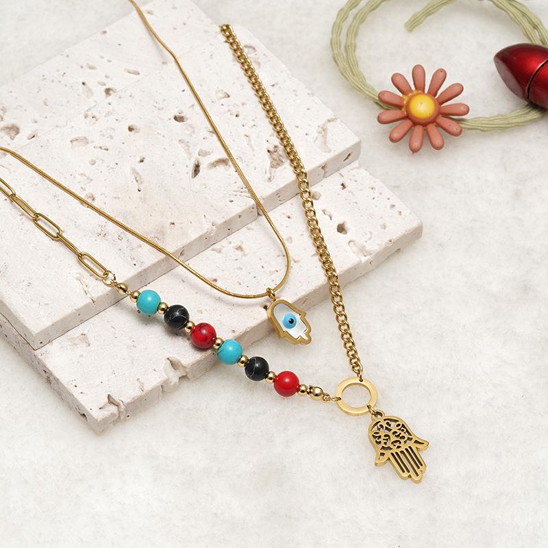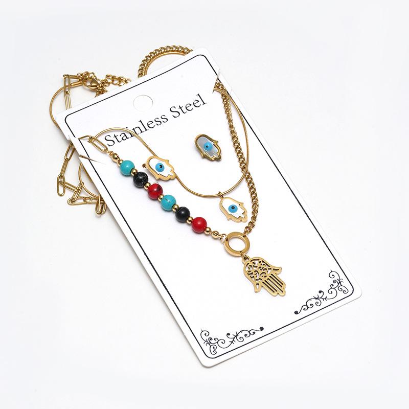 Collar de acero inoxidable de doble capa con ojos azules y concha de 18 quilates transfronterizos, collar de acero de titanio Fátima europeo y americano, pendientes con forma de tachuela, adecuado para mujeres