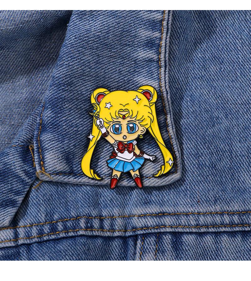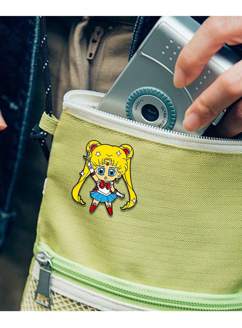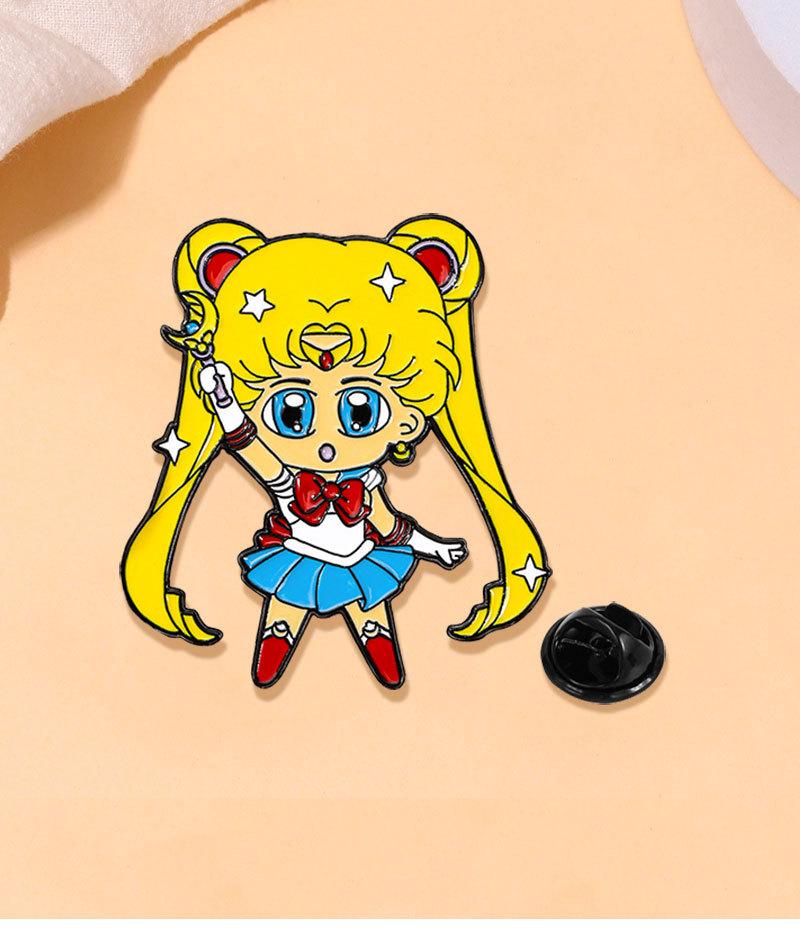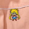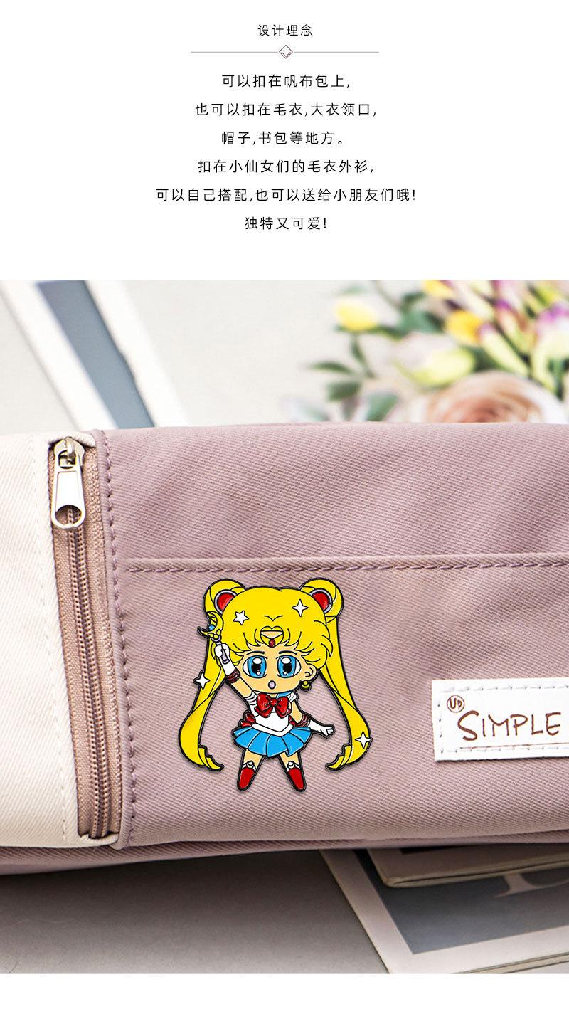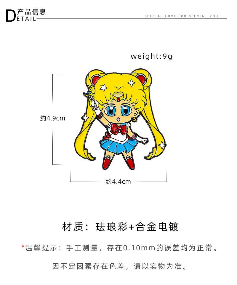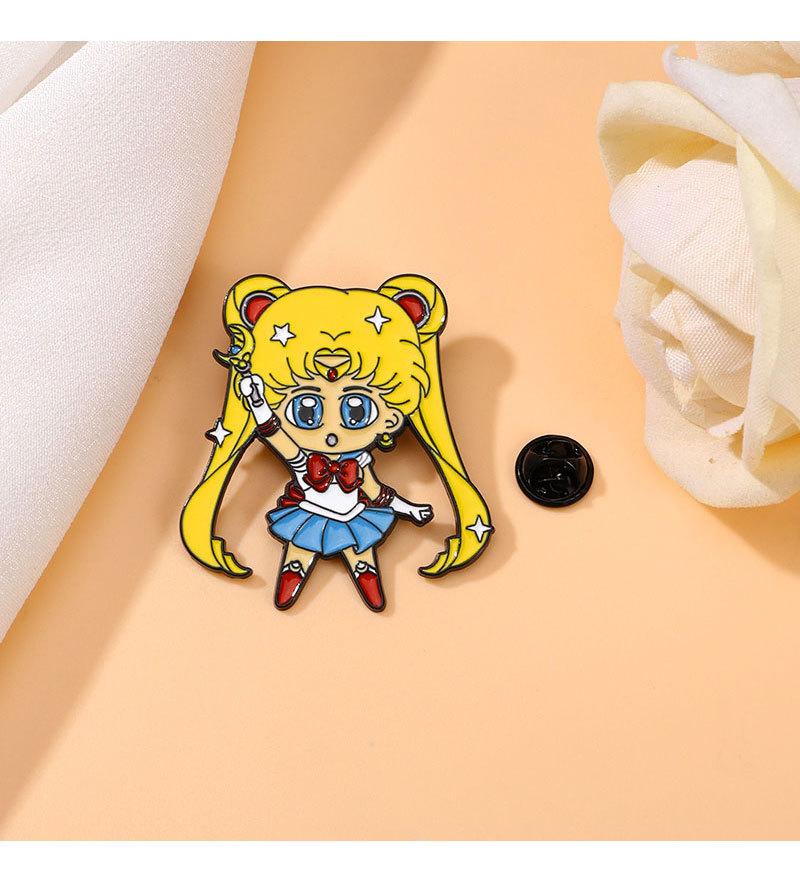 Broche periférico de anime, hermosa chica guerrera, luna, liebre, caricatura, linda chica, mochila escolar, insignia decorativa de aleación con gota de aceite