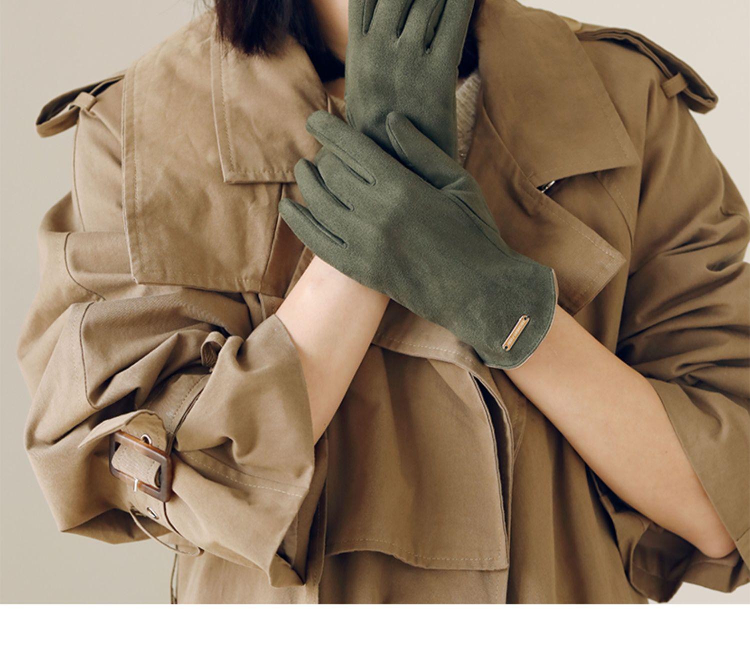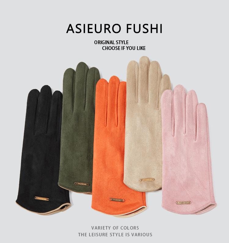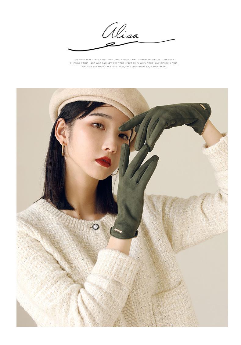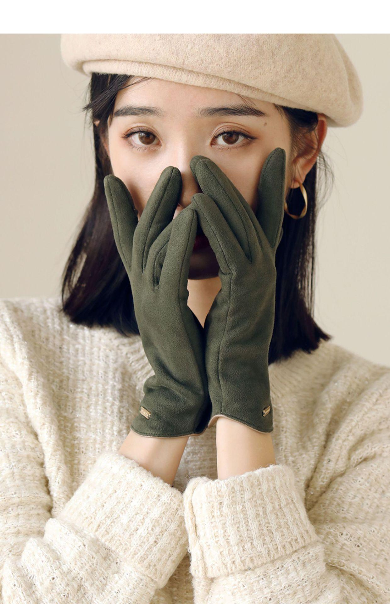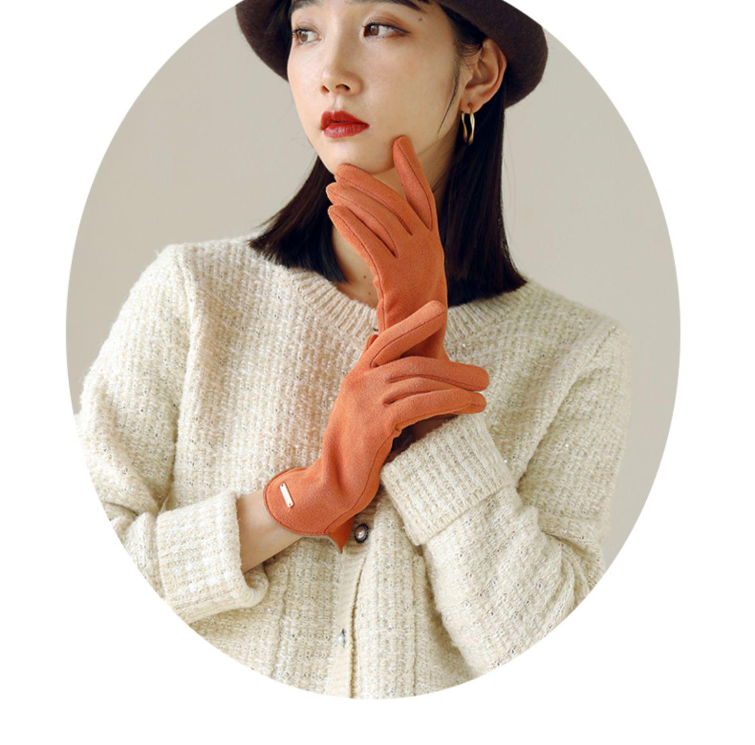 Guantes delgados de terciopelo de ante con pantalla táctil para otoño e invierno para mujer, venta al por mayor, estilo occidental simple, cálidos, a prueba de frío y viento para ciclismo