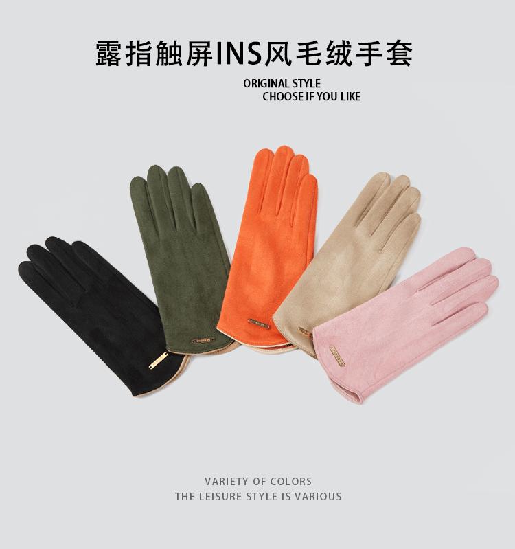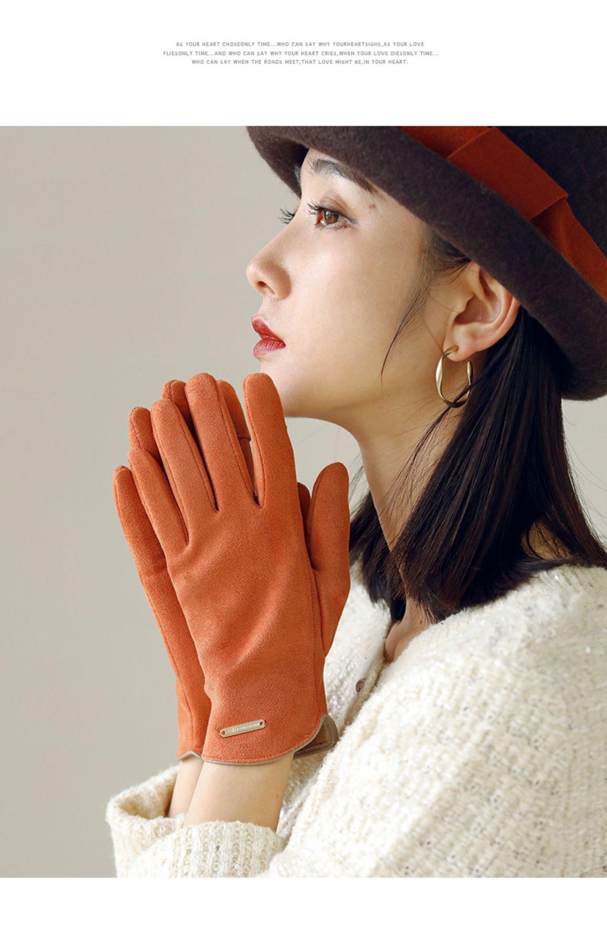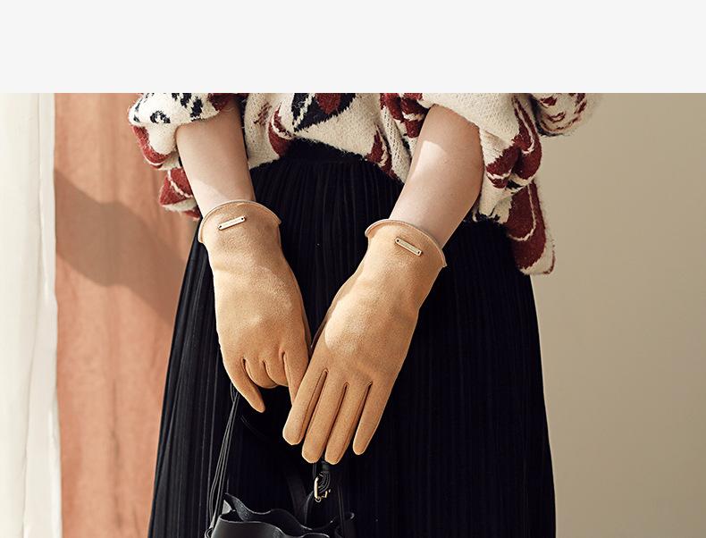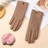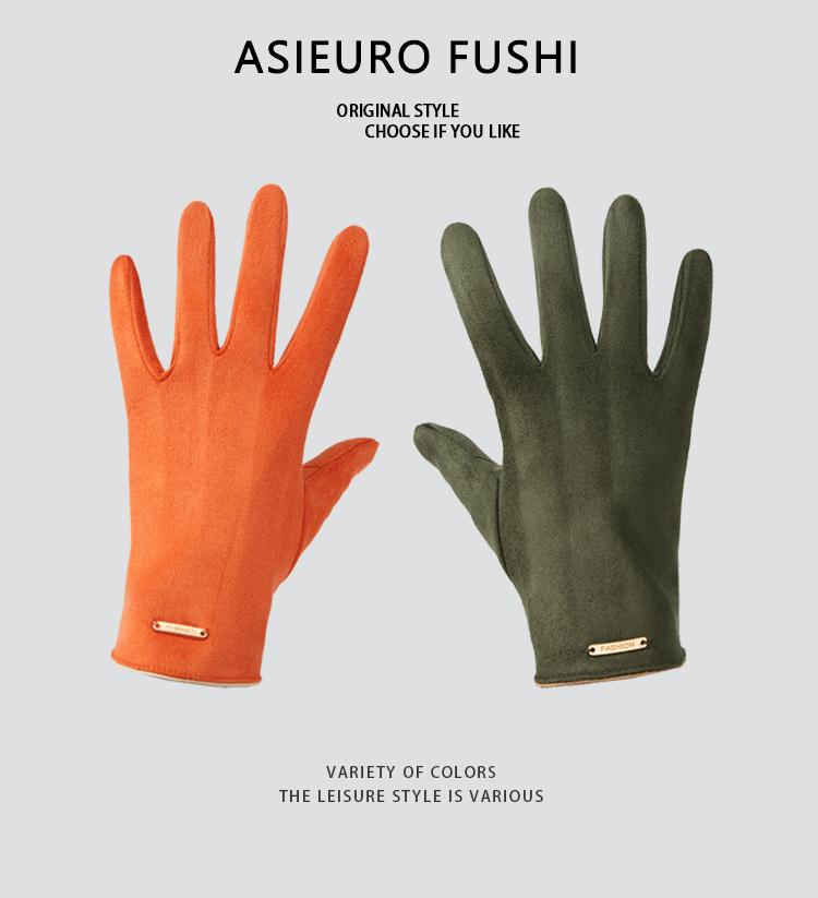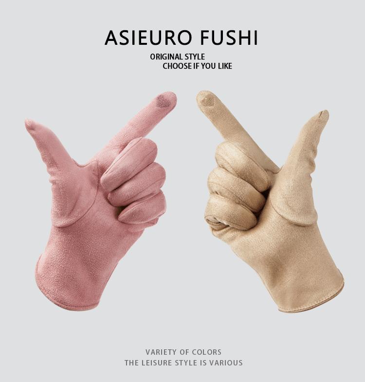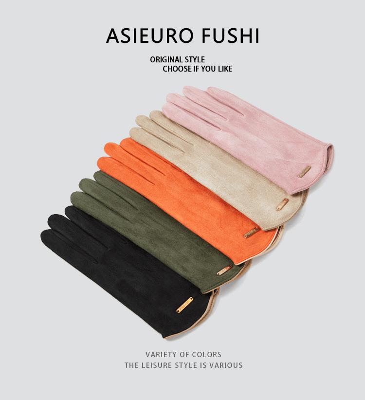 Guantes delgados de terciopelo de ante con pantalla táctil para otoño e invierno para mujer, venta al por mayor, estilo occidental simple, cálidos, a prueba de frío y viento para ciclismo