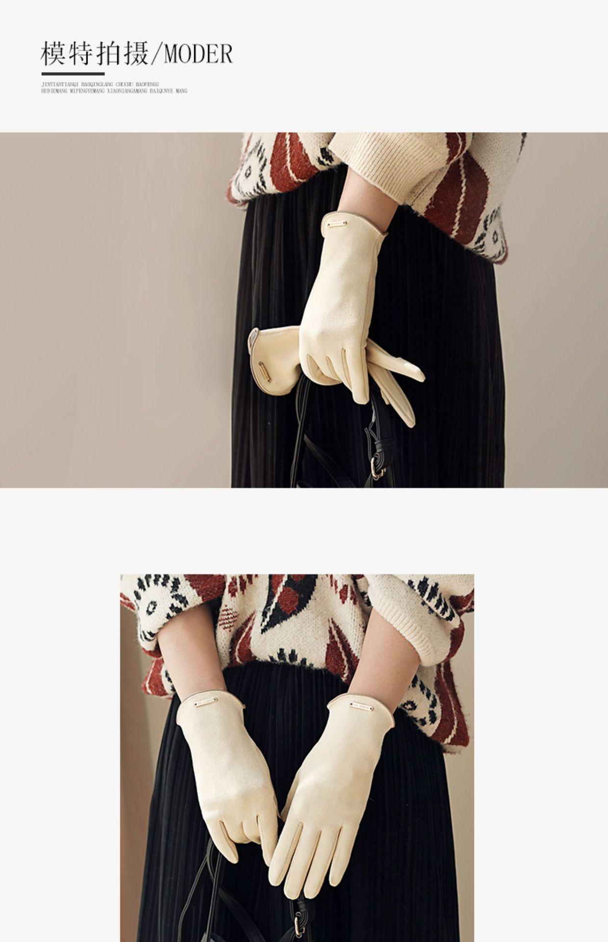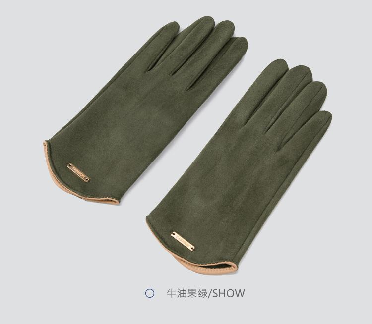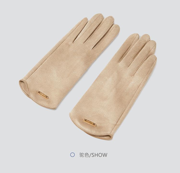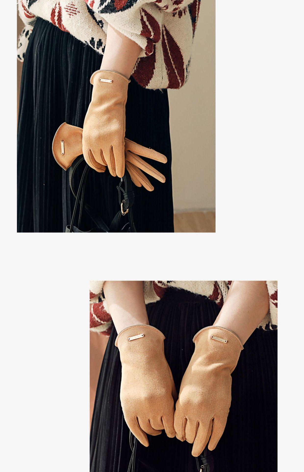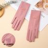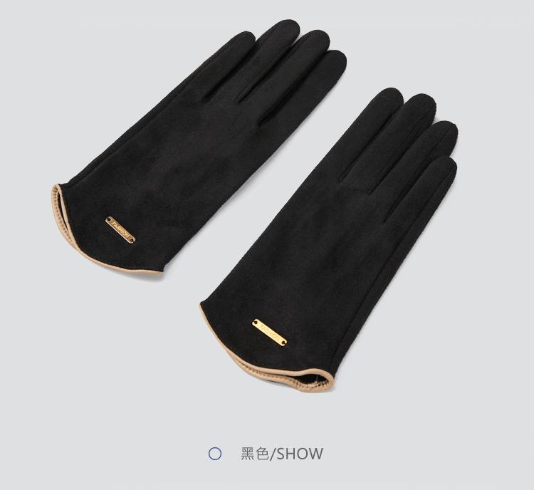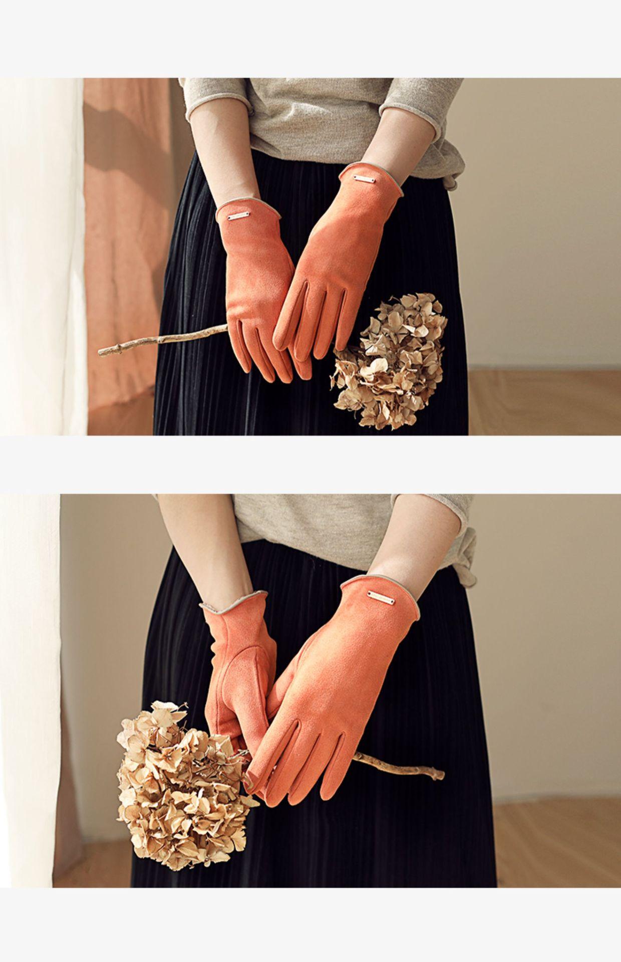 Guantes delgados de terciopelo de ante con pantalla táctil para otoño e invierno para mujer, venta al por mayor, estilo occidental simple, cálidos, a prueba de frío y viento para ciclismo