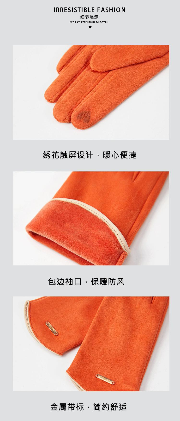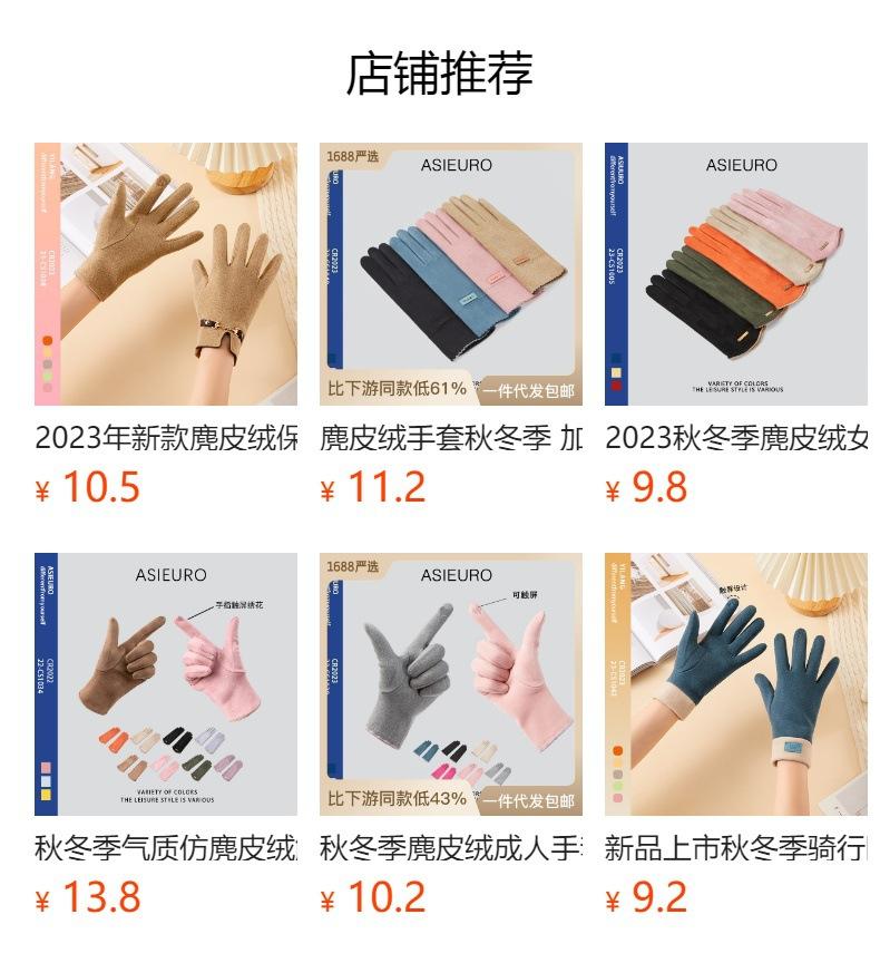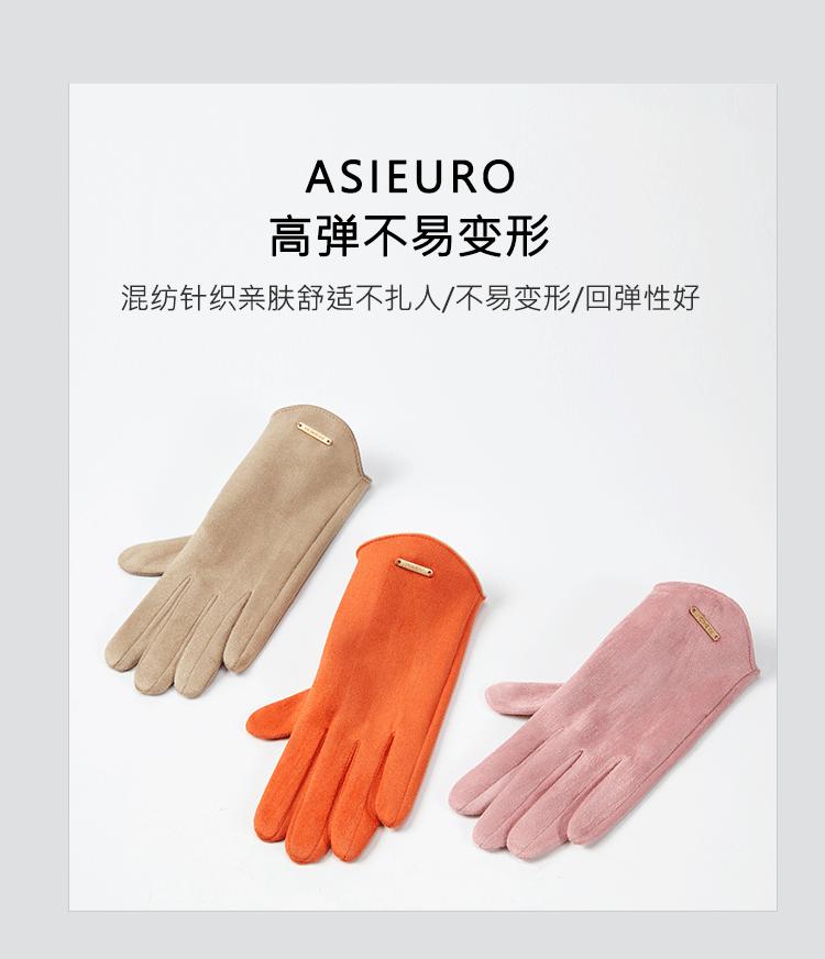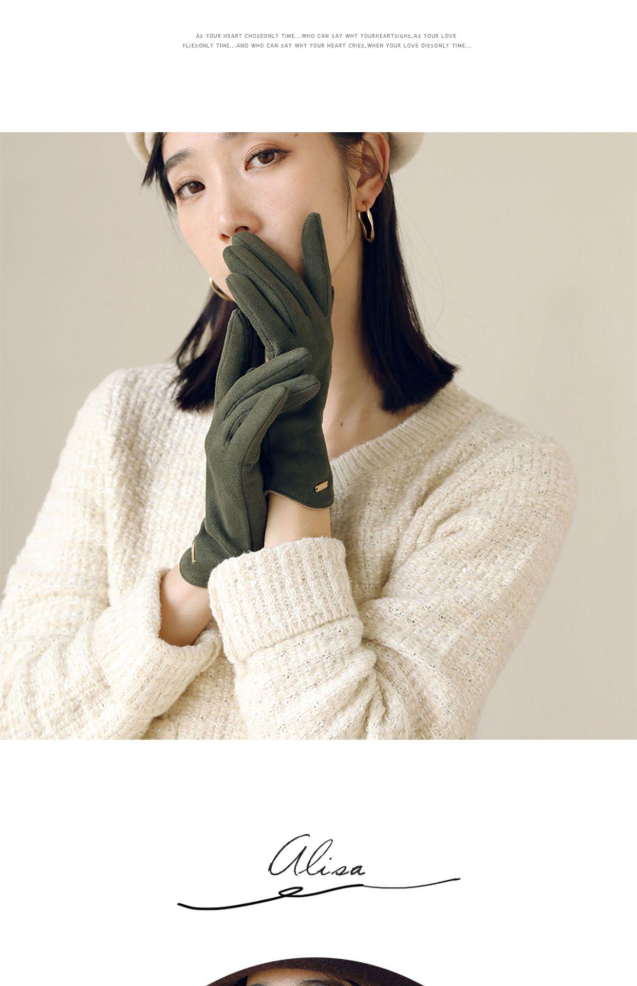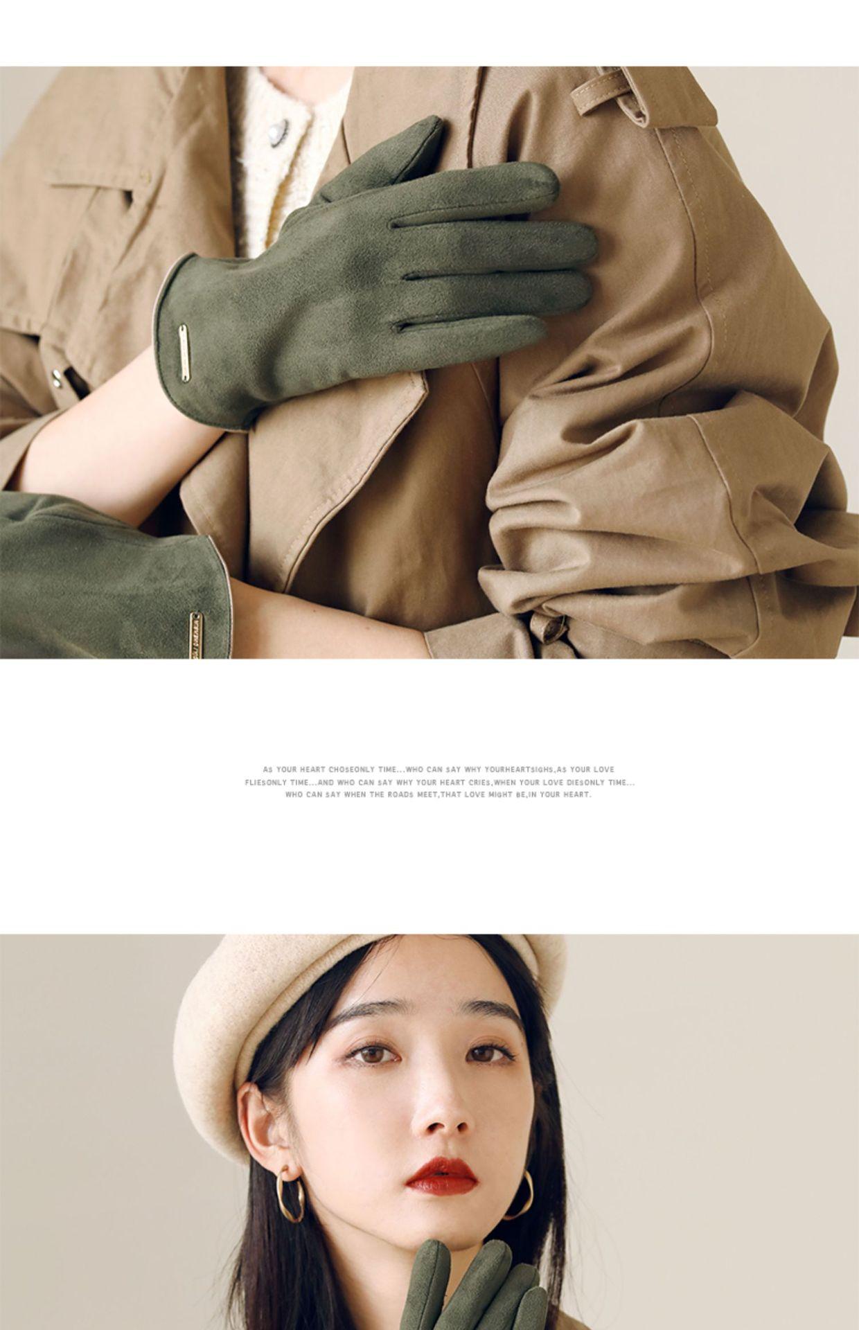 Guantes delgados de terciopelo de ante con pantalla táctil para otoño e invierno para mujer, venta al por mayor, estilo occidental simple, cálidos, a prueba de frío y viento para ciclismo