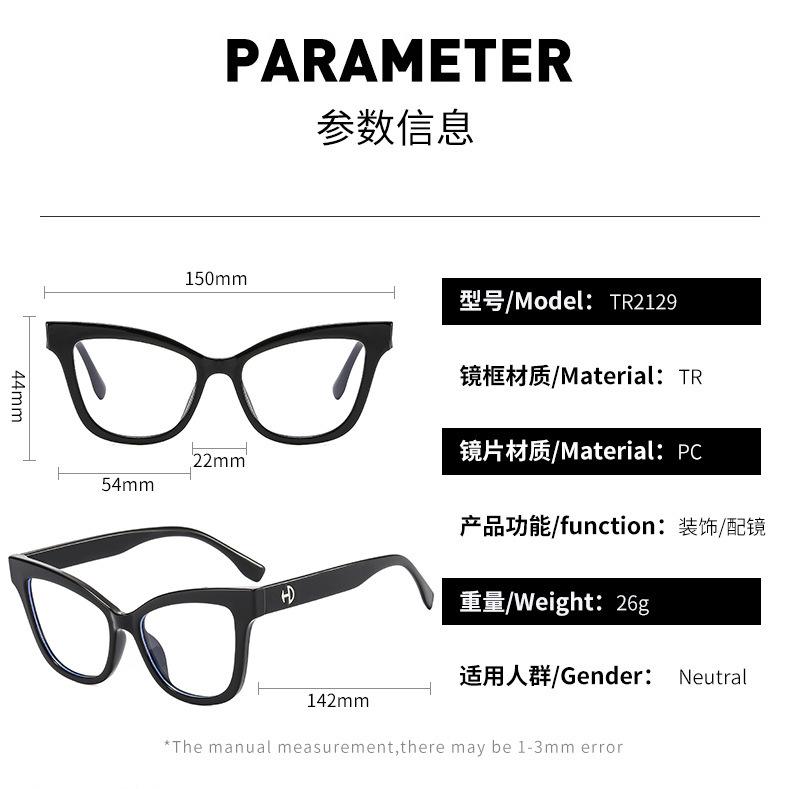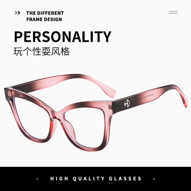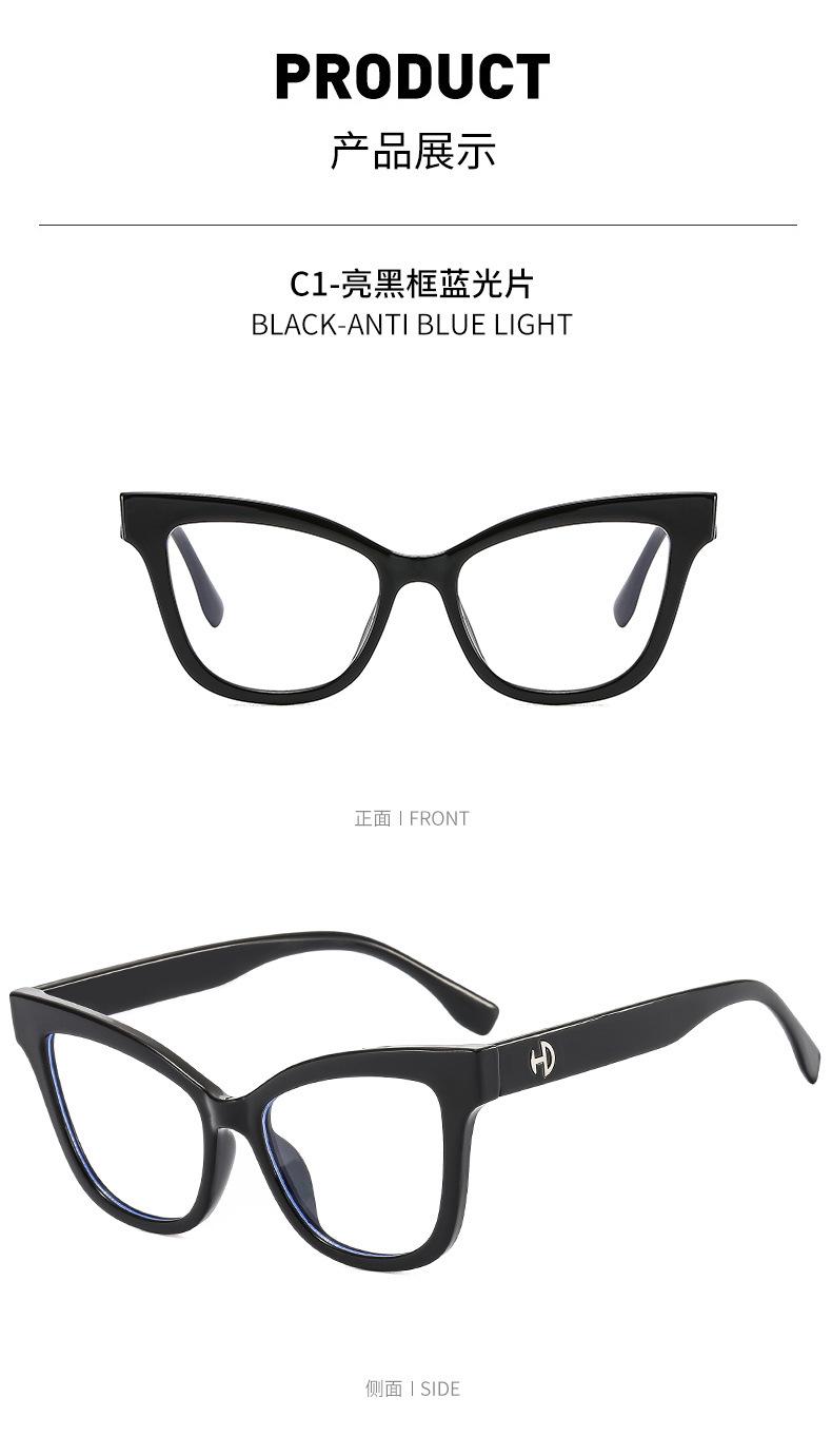 Gafas de moda transfronterizas con protección contra la luz azul y diseño de ojo de gato, monturas grandes y sencillas para miopía, venta de comercio exterior.