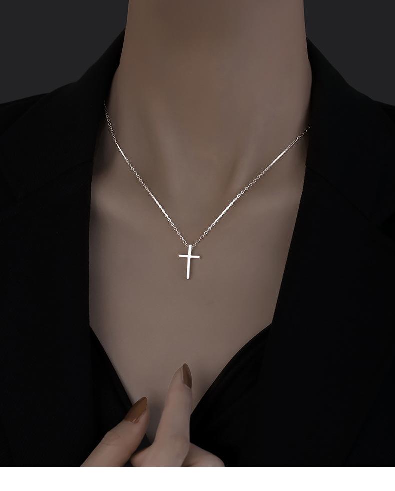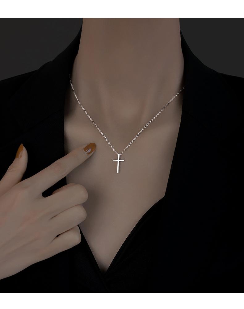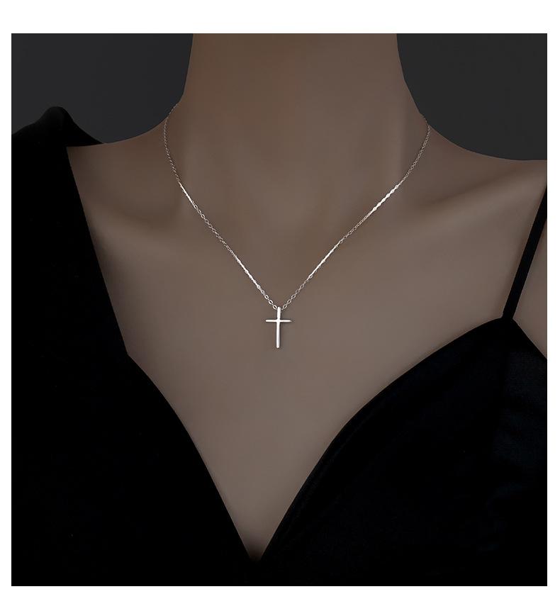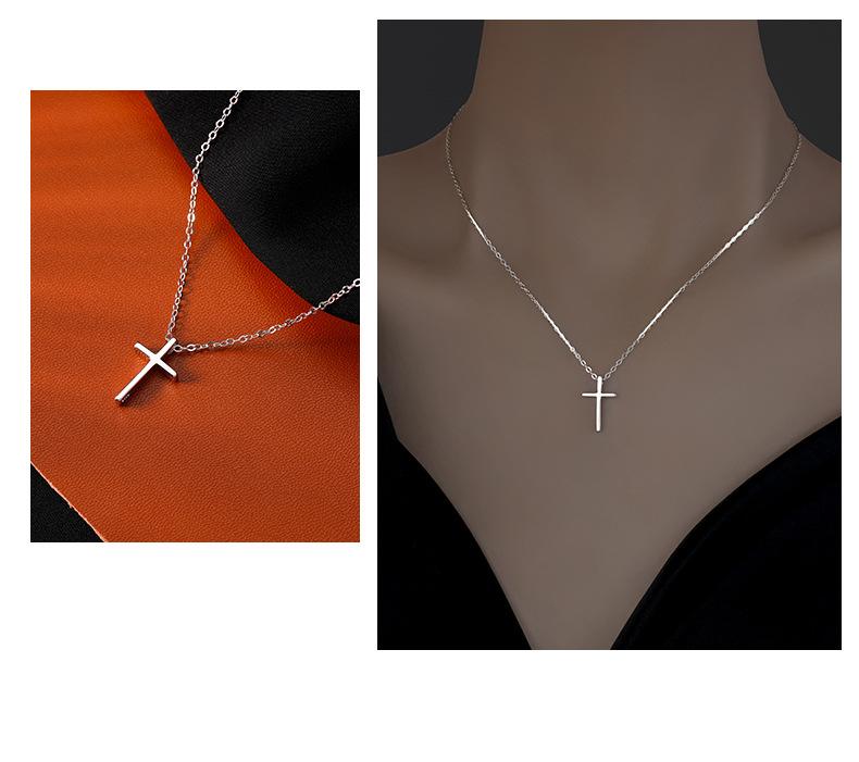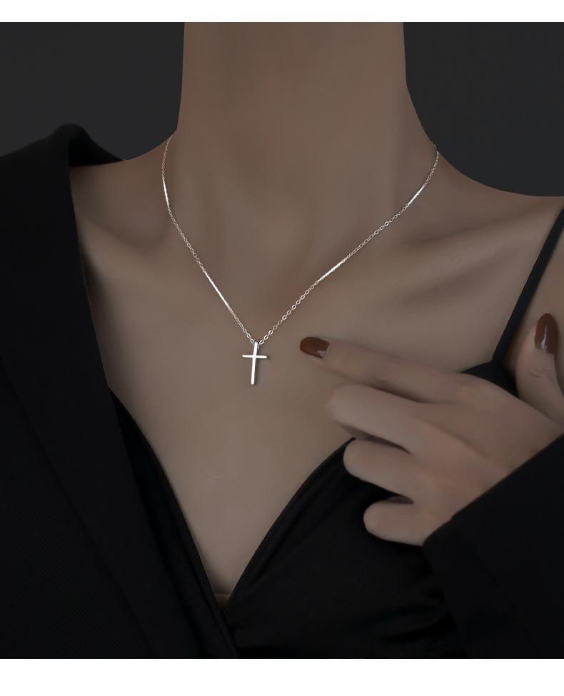 Collar de Cruz de Plata Esterlina S925 para Hombres y Mujeres, Cadena de Clavícula con Diseño de Nicho de Moda Trendy, Joyería de Plata de Lujo Accesible al por Mayor