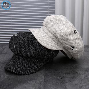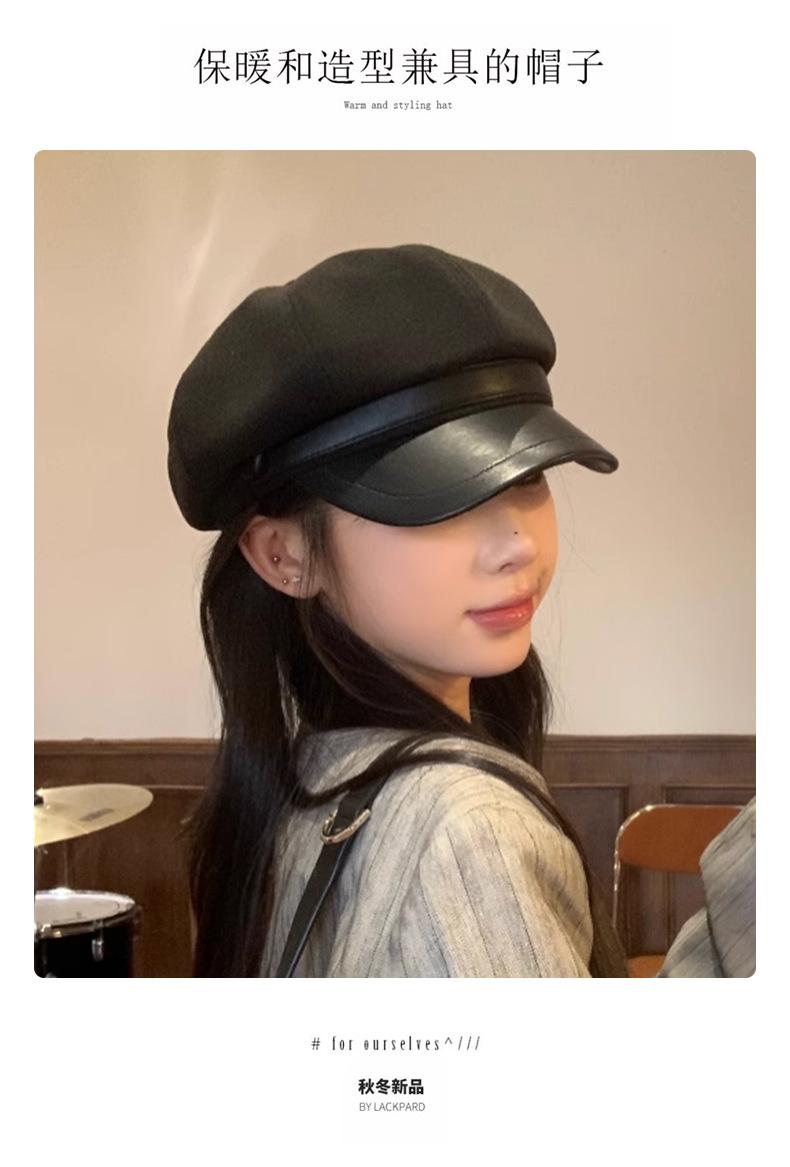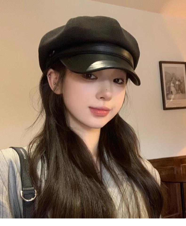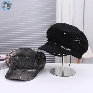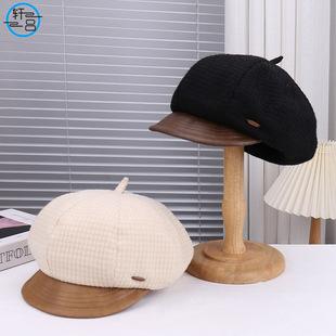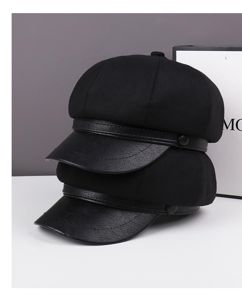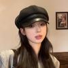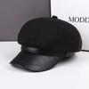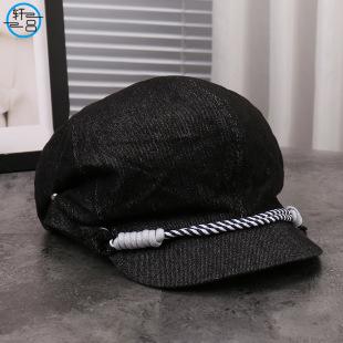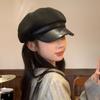 Sombrero octogonal negro para mujer, nuevo estilo coreano, informal, combinable con todo, boina pequeña retro con visera y cara roja de red.