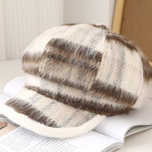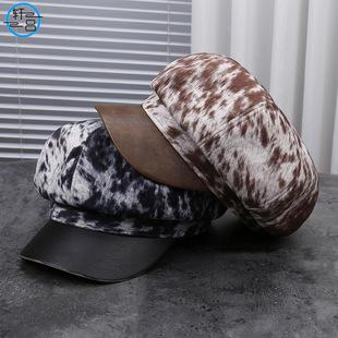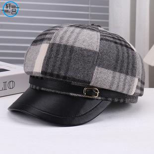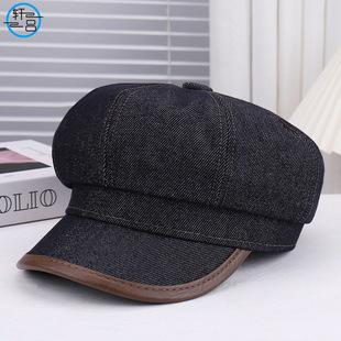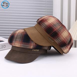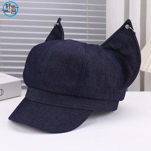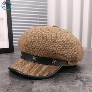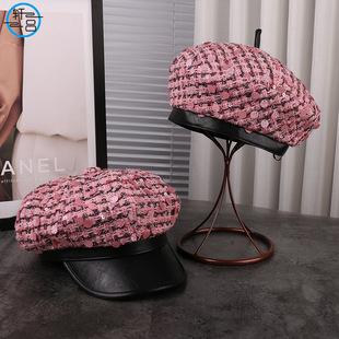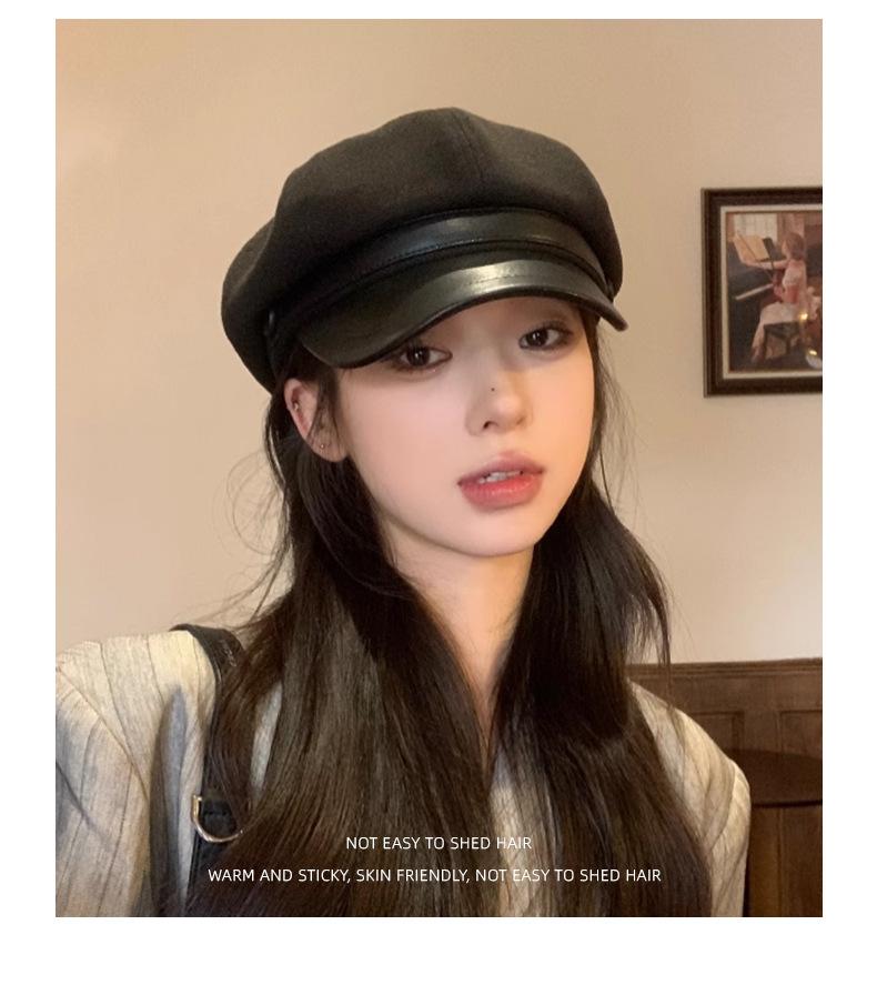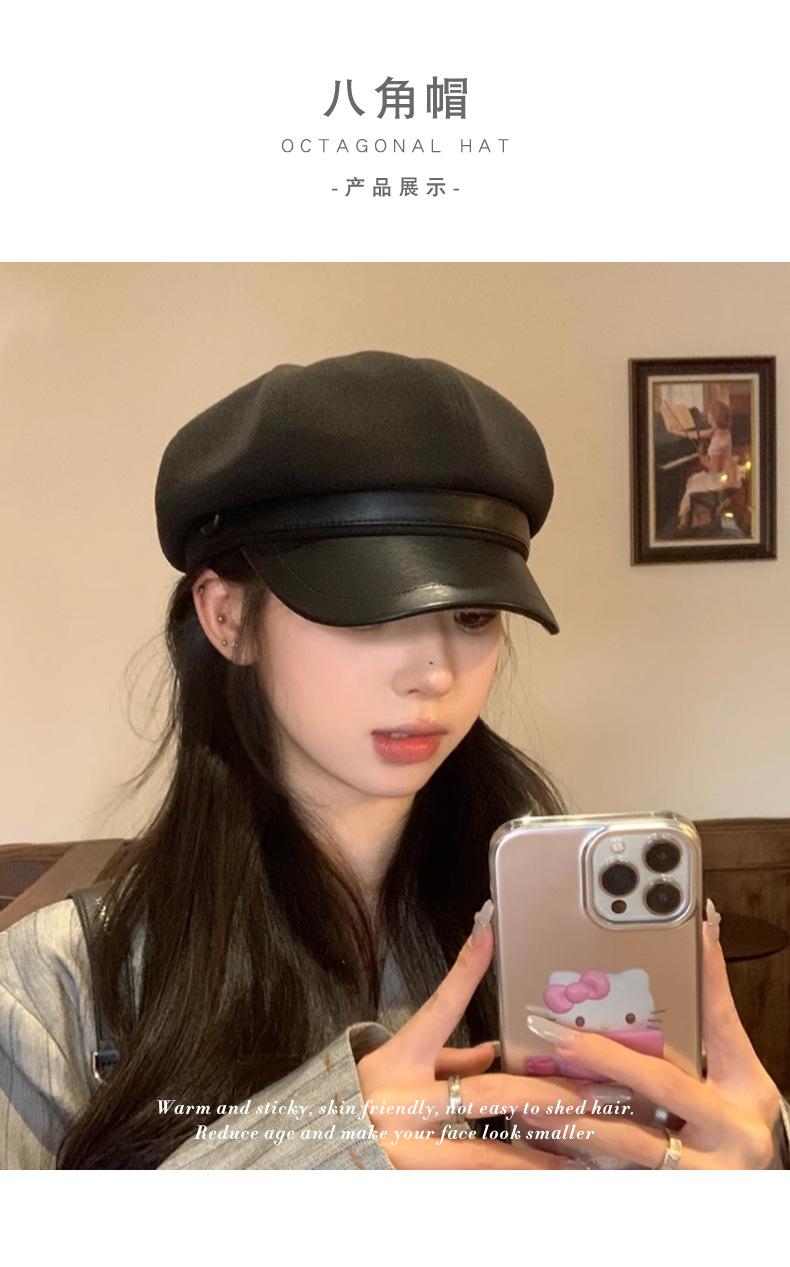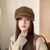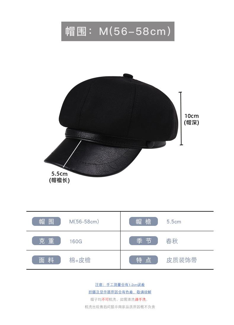 Sombrero octogonal negro para mujer, nuevo estilo coreano, informal, combinable con todo, boina pequeña retro con visera y cara roja de red.