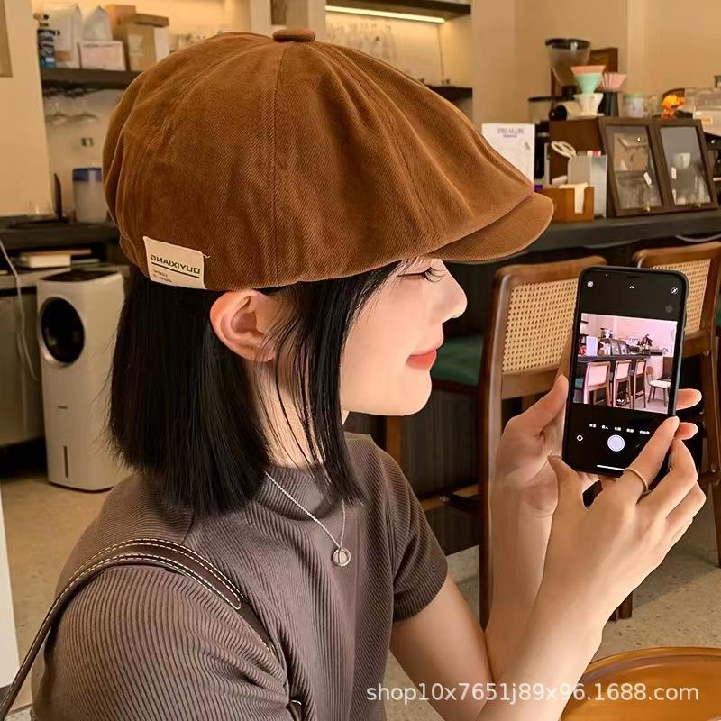 Gorra de pintor japonesa de estilo retro, antidesgaste, para mujer, de primavera y verano, combinable, informal, artística, de ala corta.