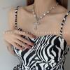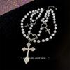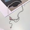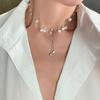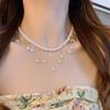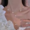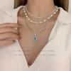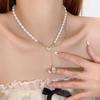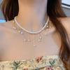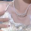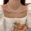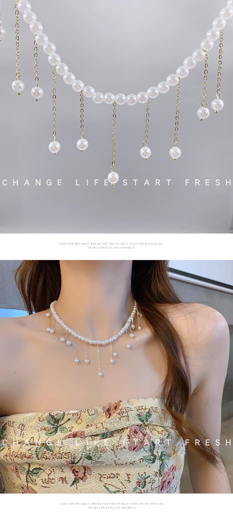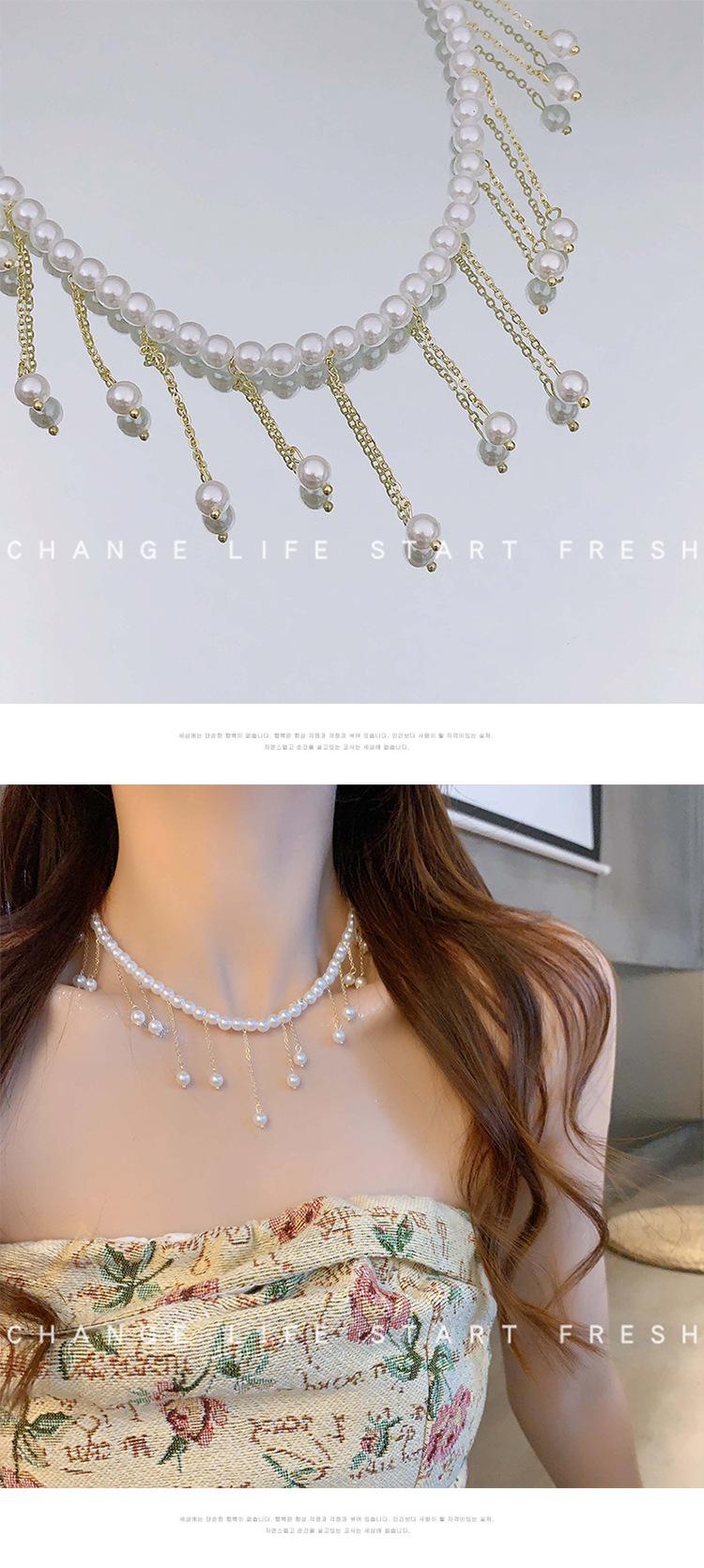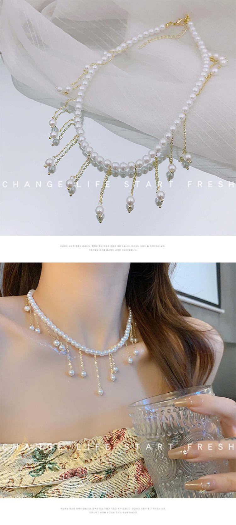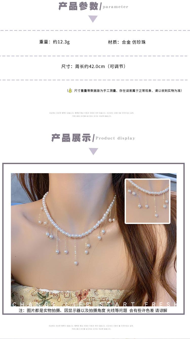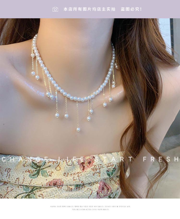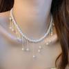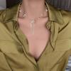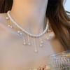 Collar de Perlas de Aleación de Alta Gama, Temperamento a la Moda, Cadena de Clavícula con Borla de Lazo, Collar de Cuello de Doble Capa, Colgante al por Mayor