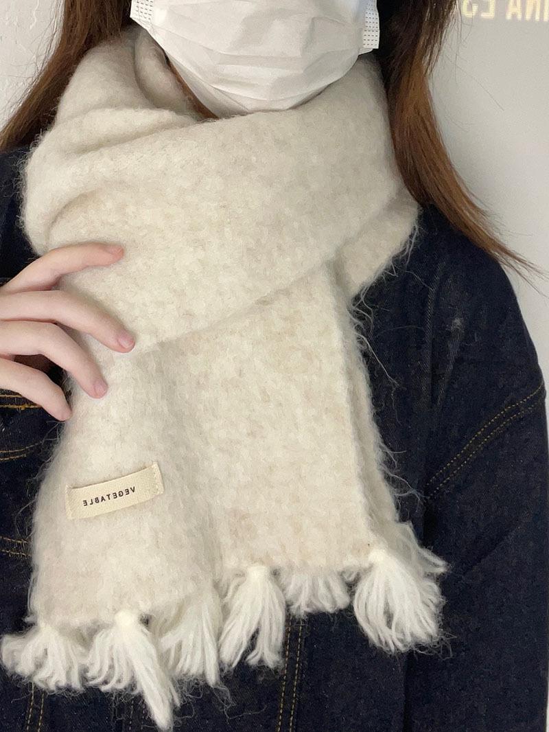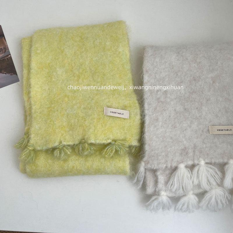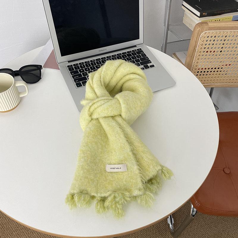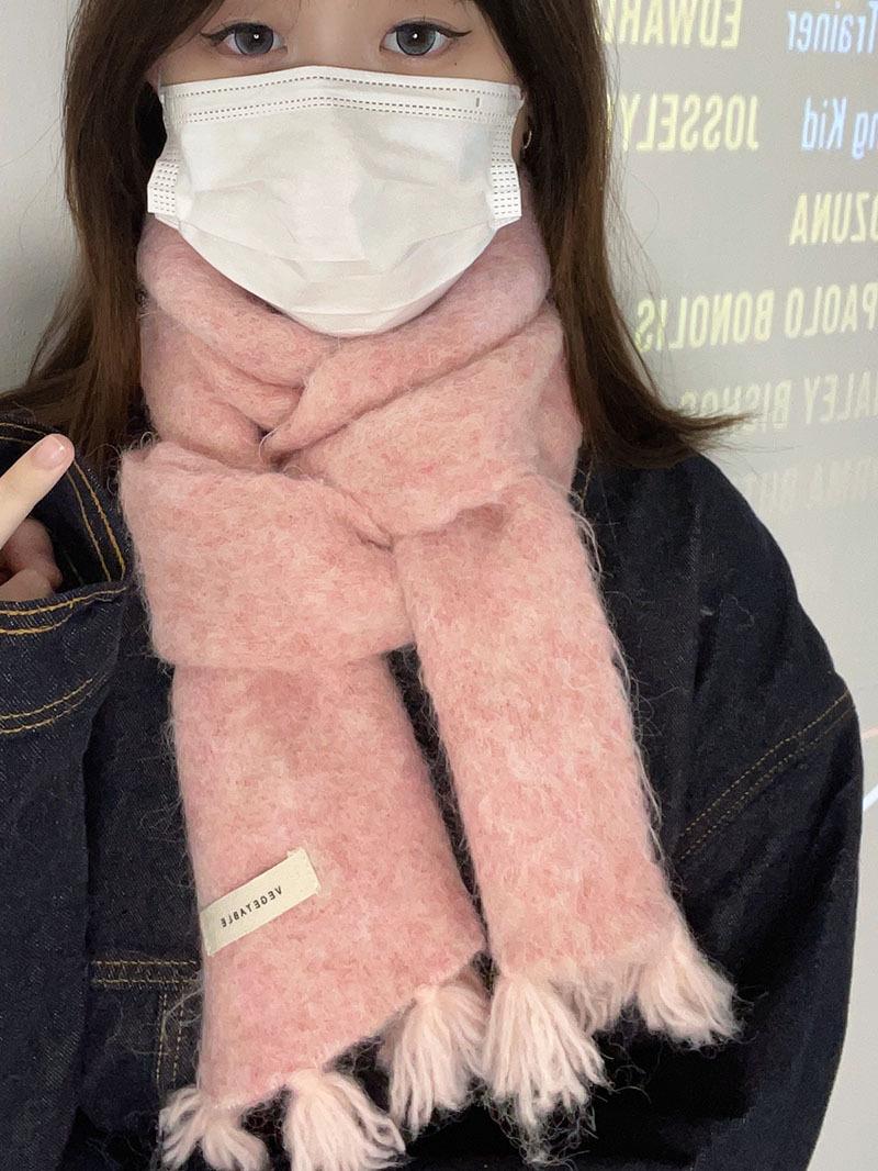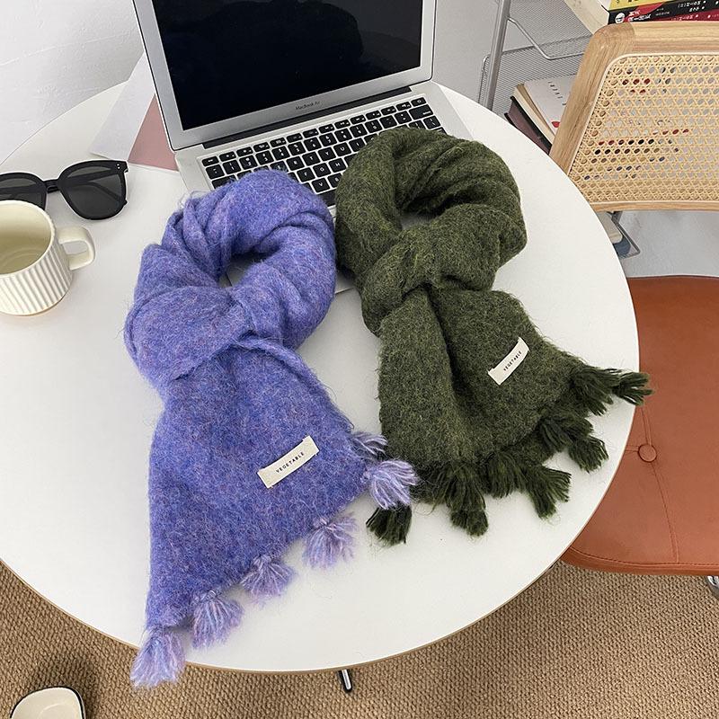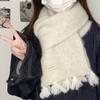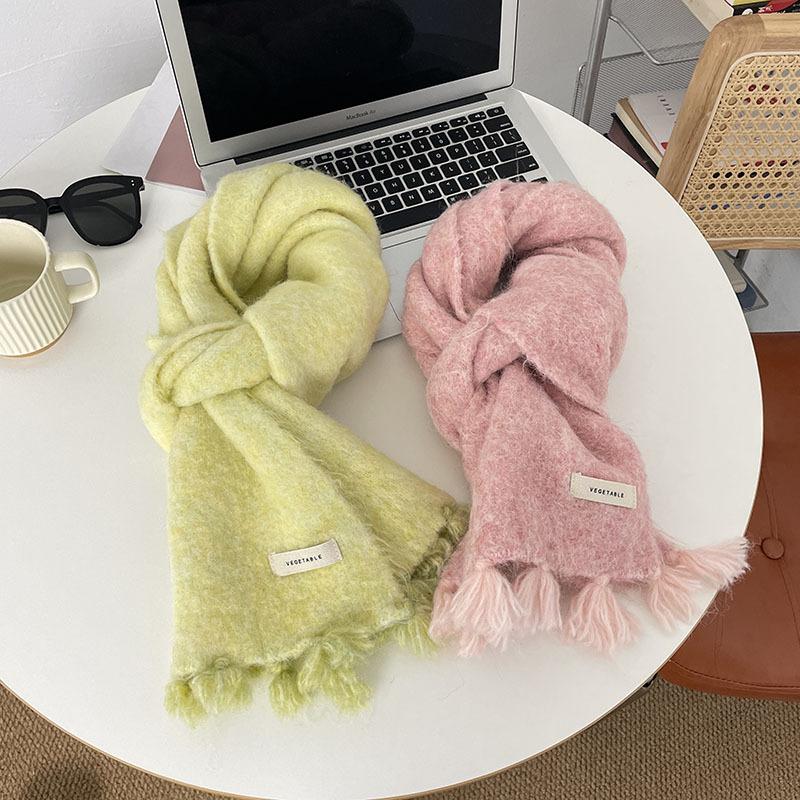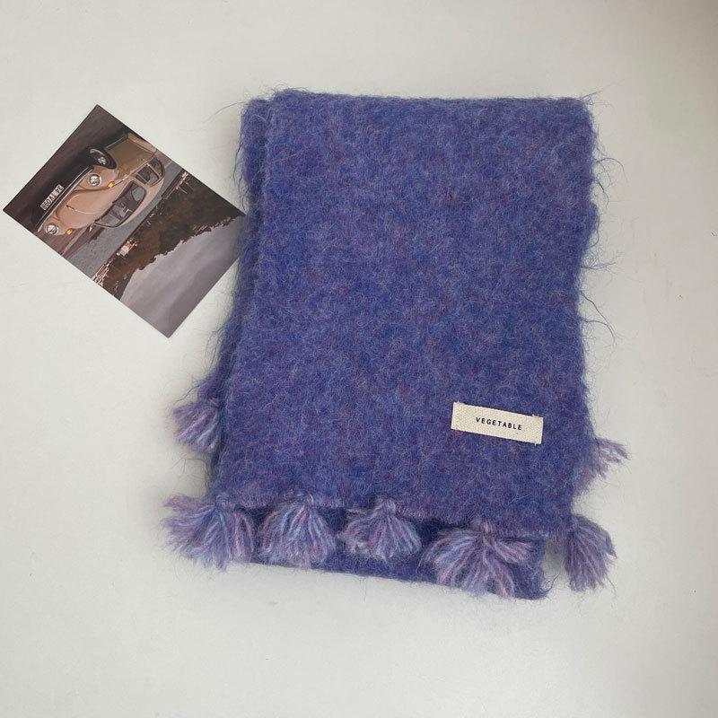 Bufanda de lana cálida para mujer, tejida a mano con borlas de barba de color dopamina de colores, mezcla de lana a rayas, para otoño e invierno.