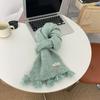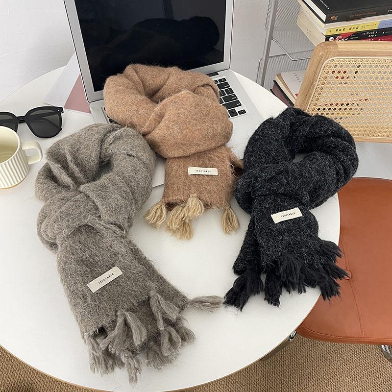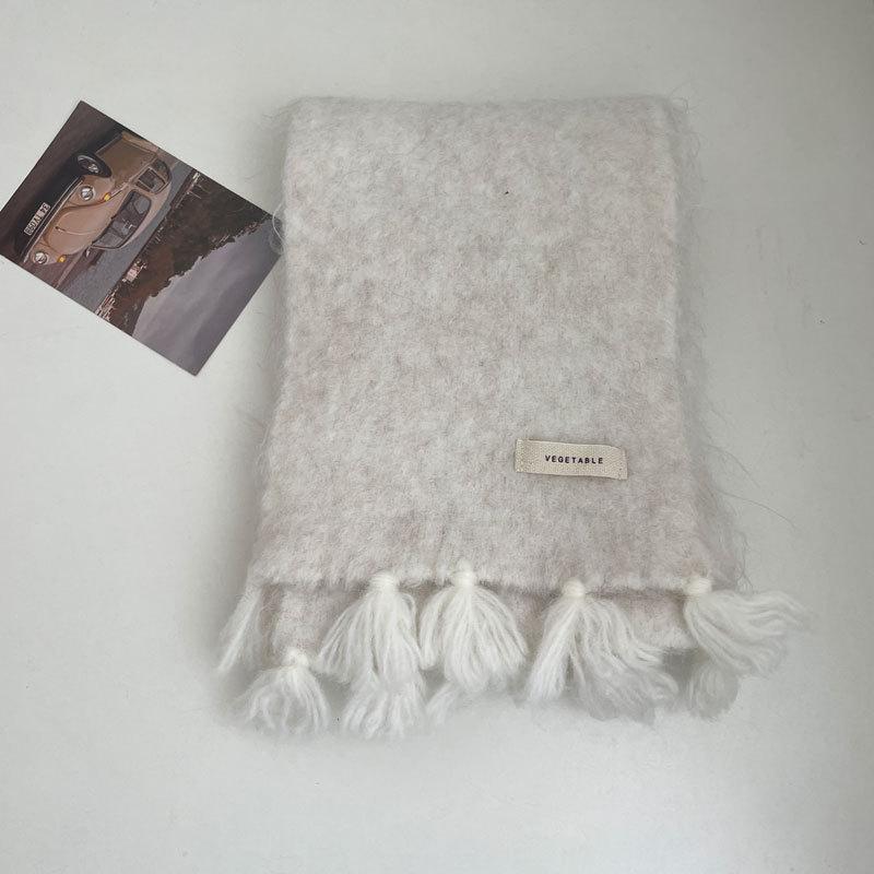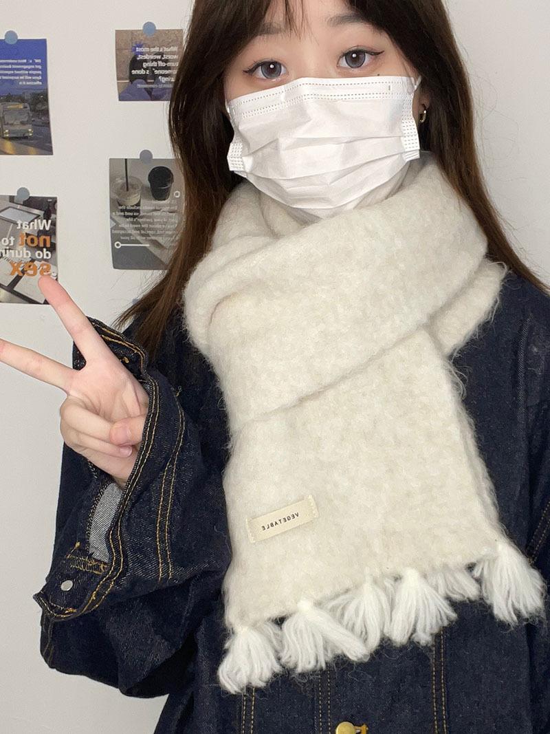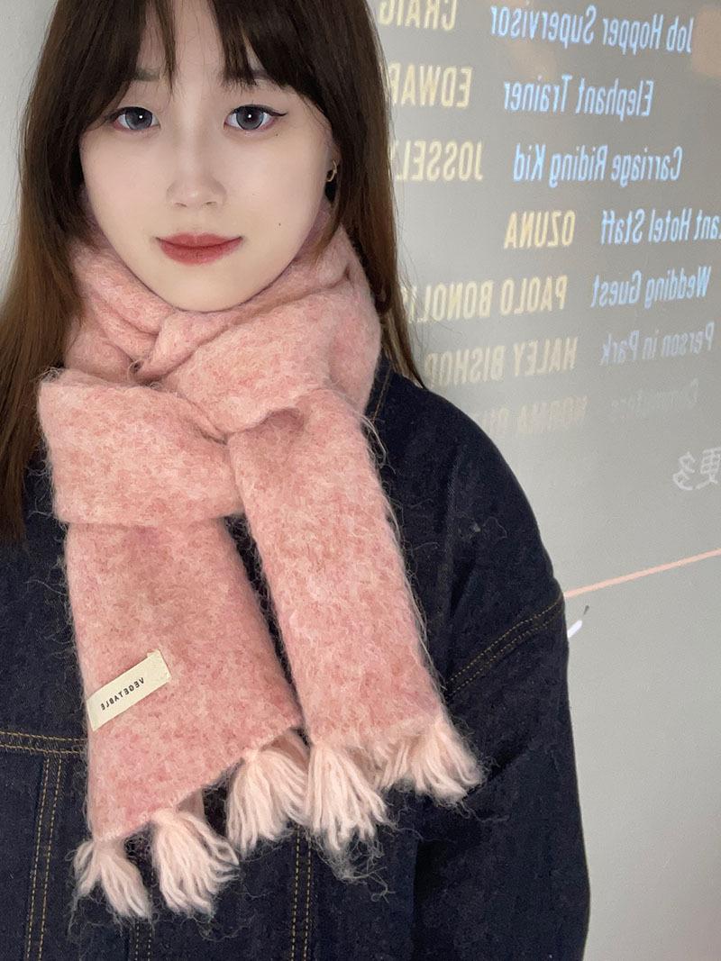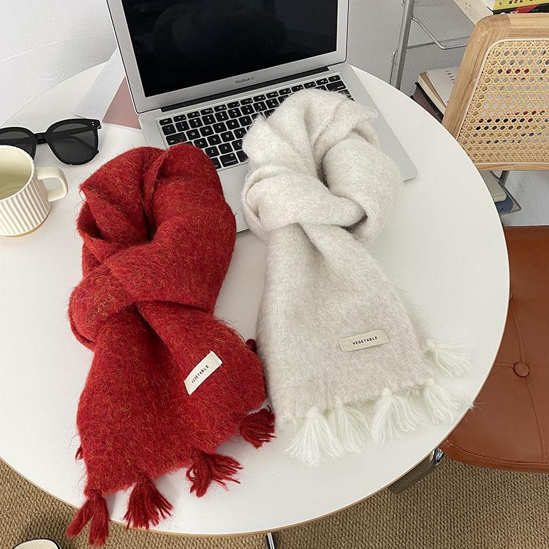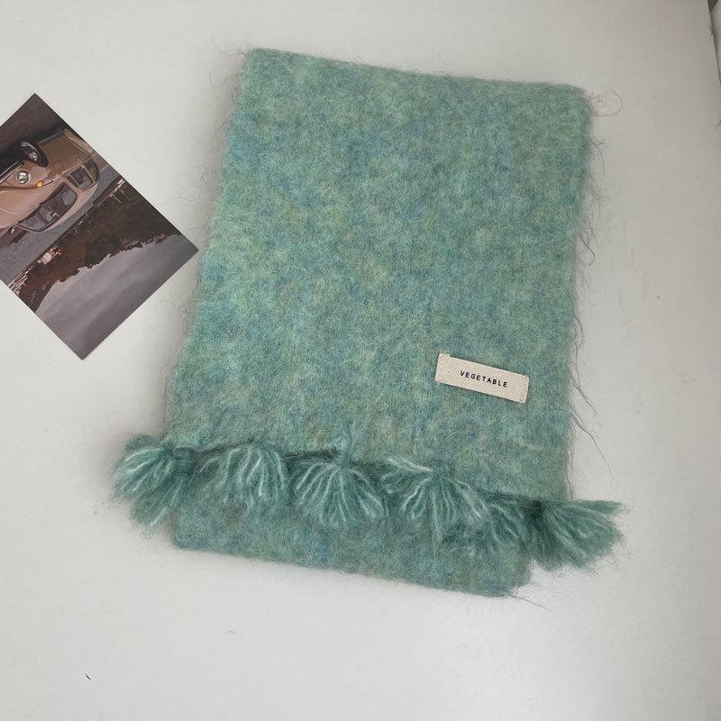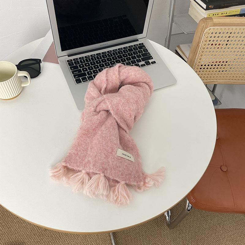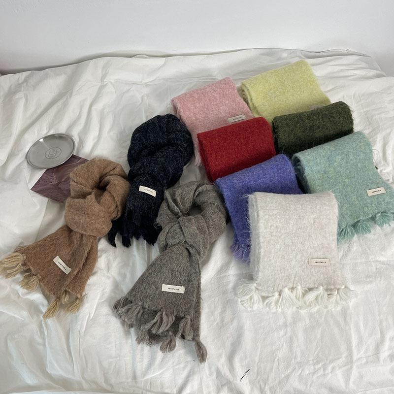 Bufanda de lana cálida para mujer, tejida a mano con borlas de barba de color dopamina de colores, mezcla de lana a rayas, para otoño e invierno.