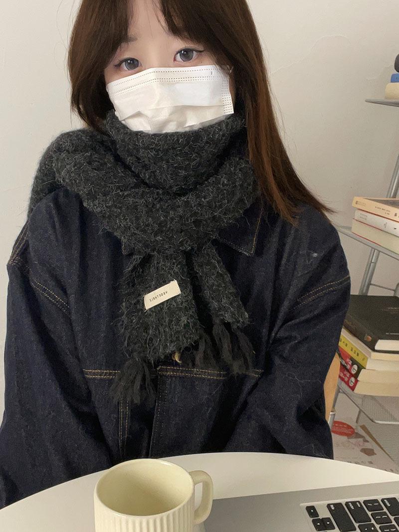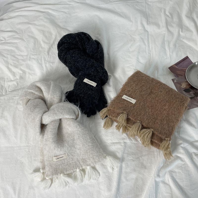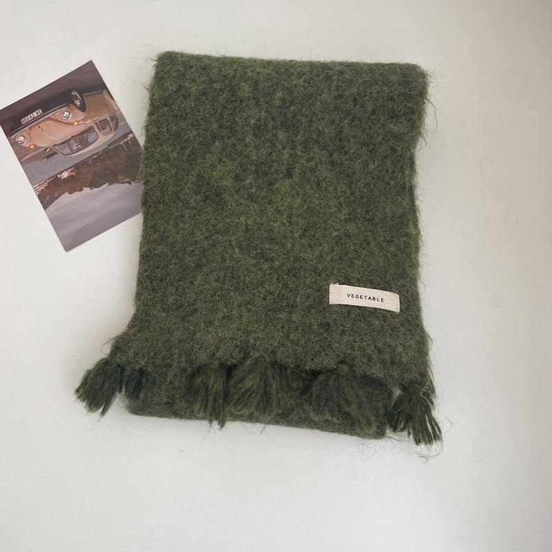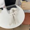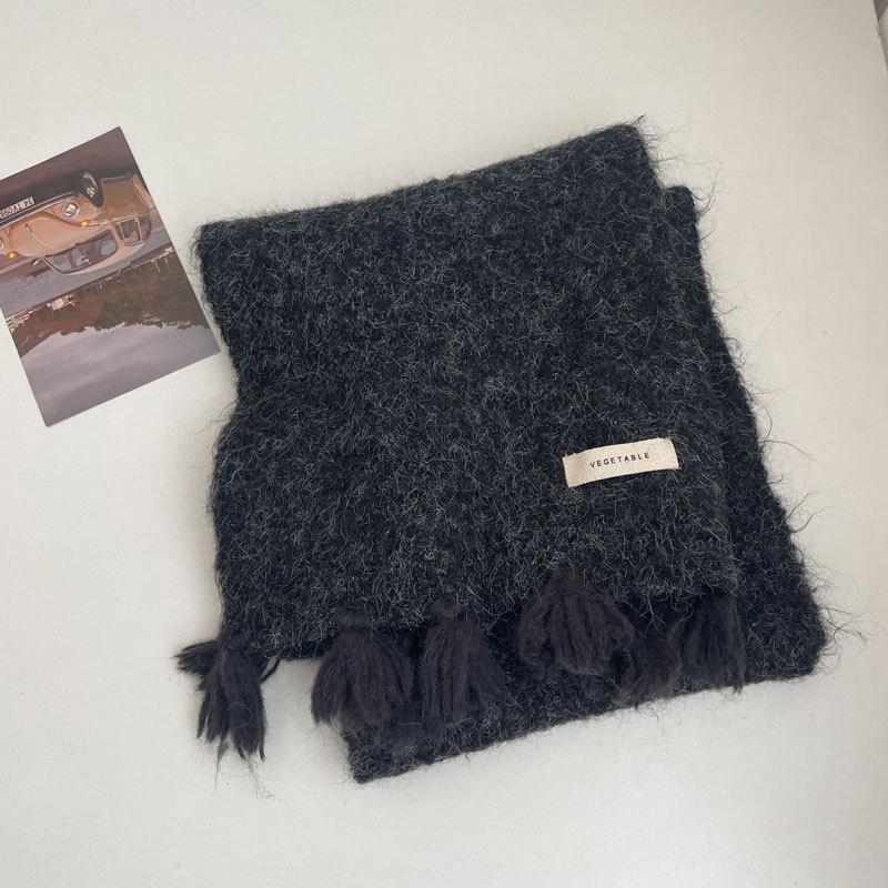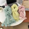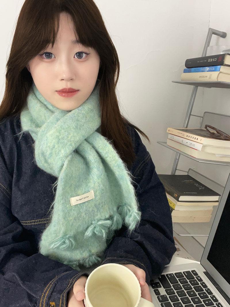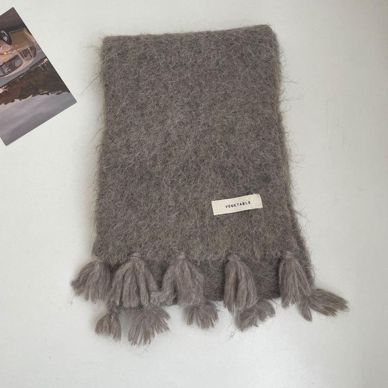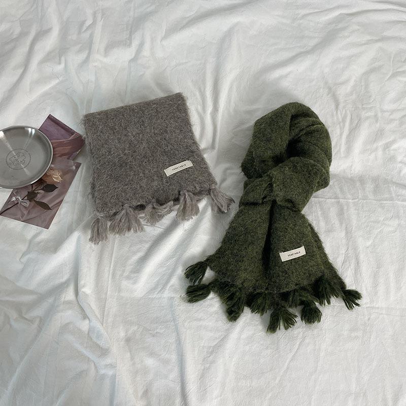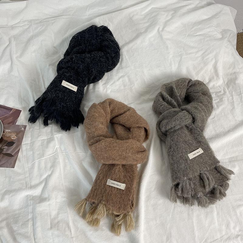 Bufanda de lana cálida para mujer, tejida a mano con borlas de barba de color dopamina de colores, mezcla de lana a rayas, para otoño e invierno.