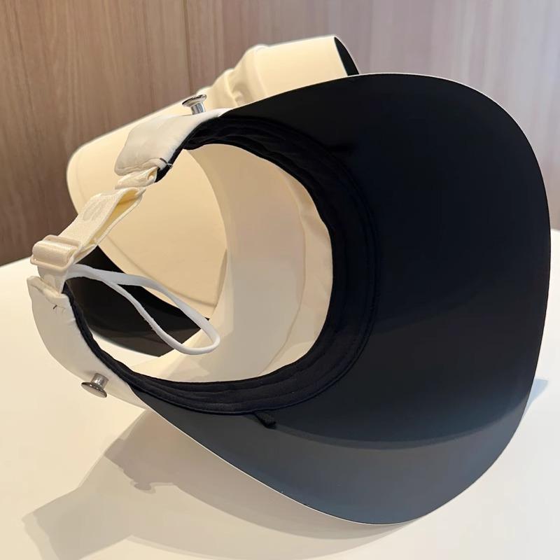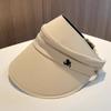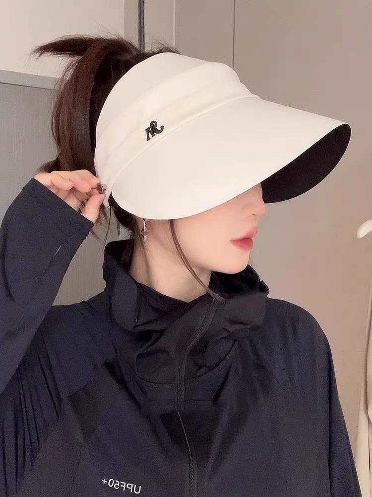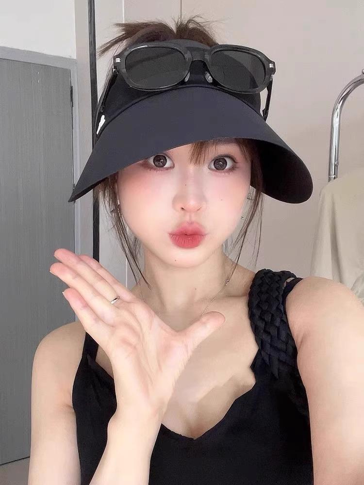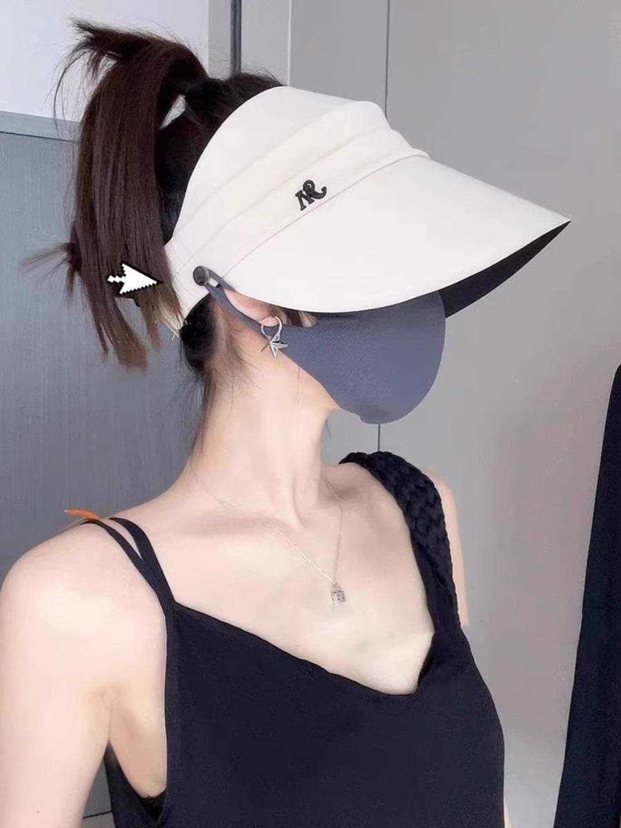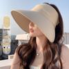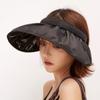 Sombrero de Corea del Sur para mujer, con cola de caballo, para verano, para viaje, con parte superior vacía, protector solar, de goma negra, anti-UV, con ala grande