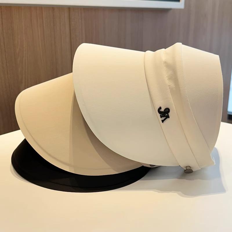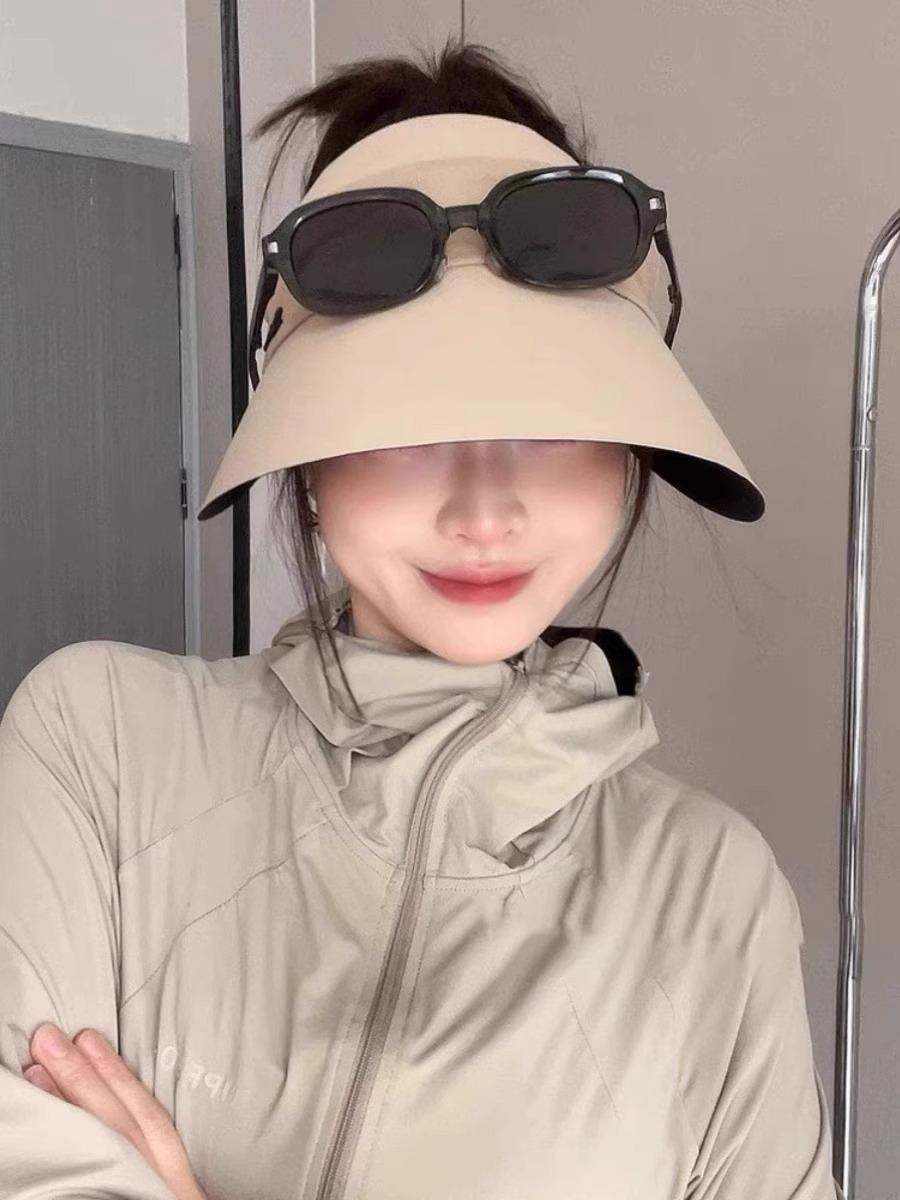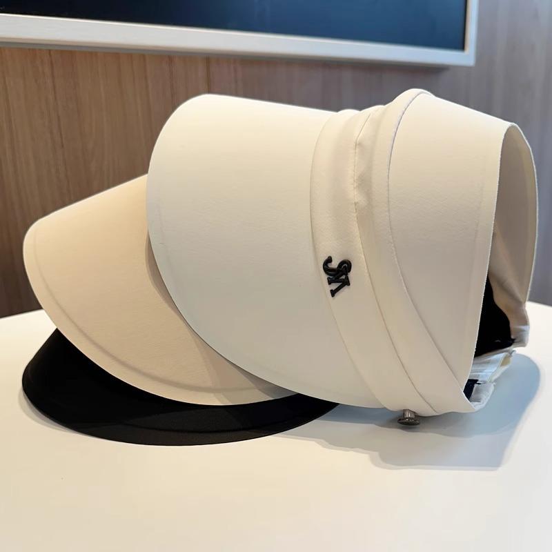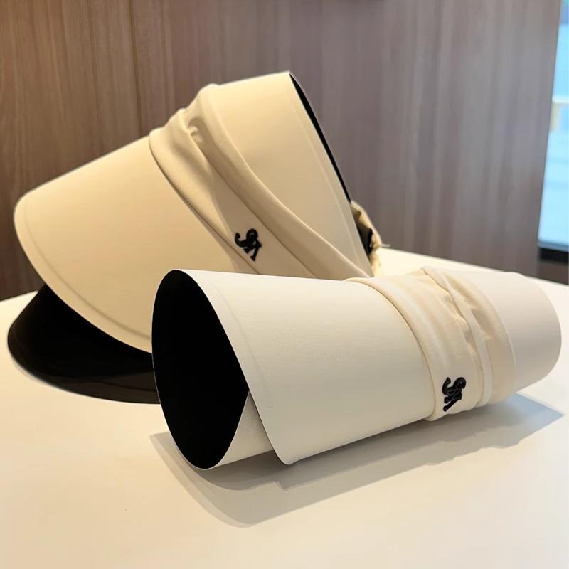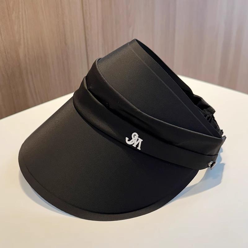 Sombrero de Corea del Sur para mujer, con cola de caballo, para verano, para viaje, con parte superior vacía, protector solar, de goma negra, anti-UV, con ala grande