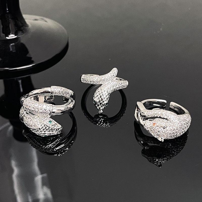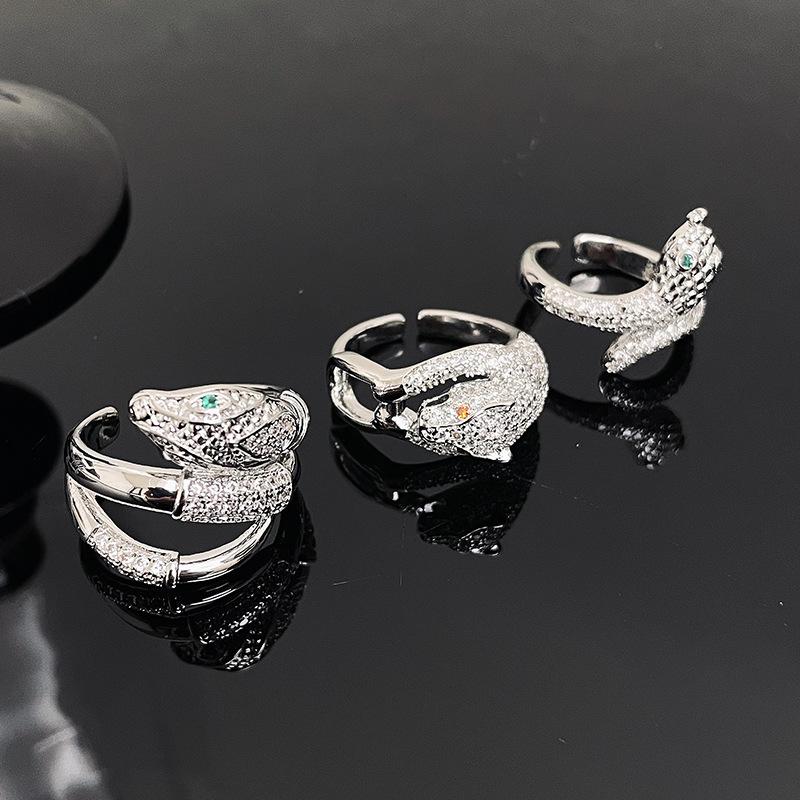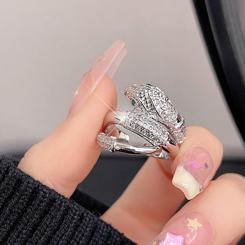 Anillo abierto de lujo ligero de alta gama con forma de serpiente con cabeza de leopardo, personalidad, lujo, diseño de nicho, anillo para mujer