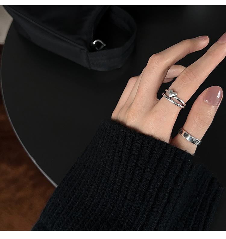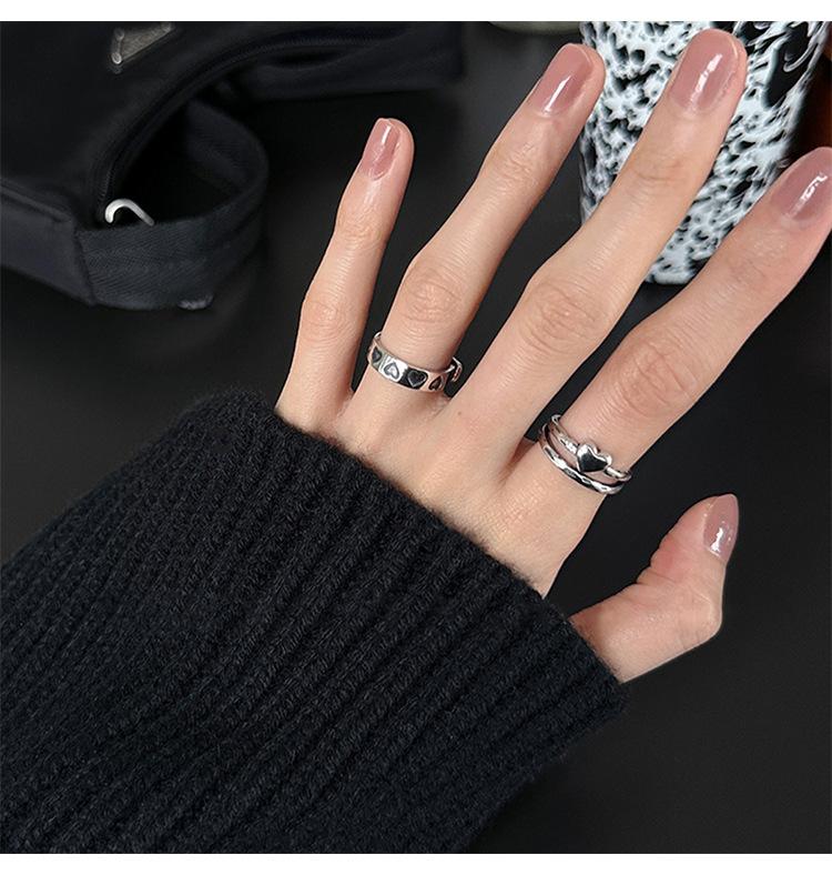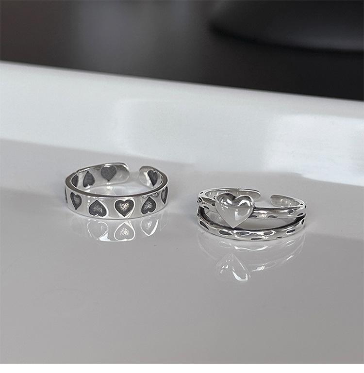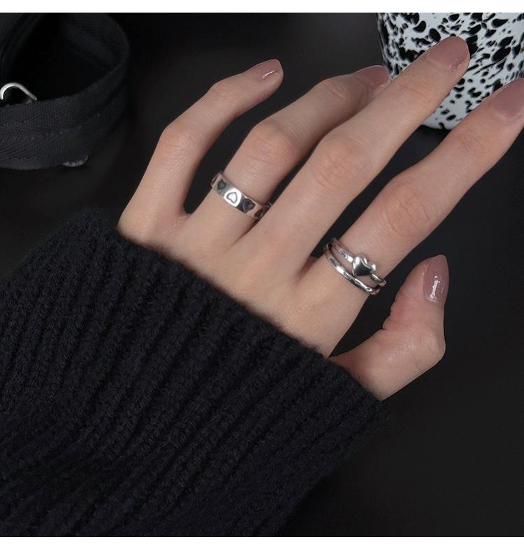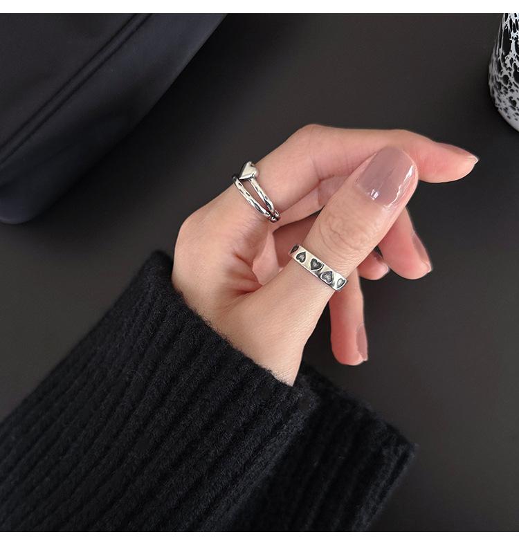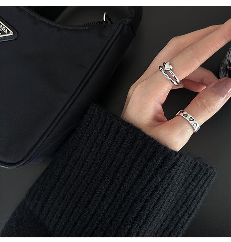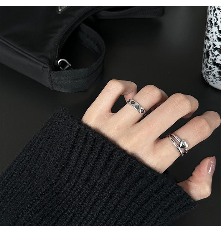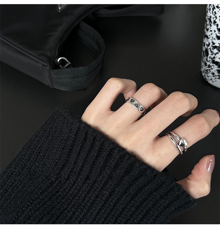 Anillo abierto retro en forma de corazón para mujer, diseño de alta gama, estilo frío, anillo simple de nicho, pulsera de moda