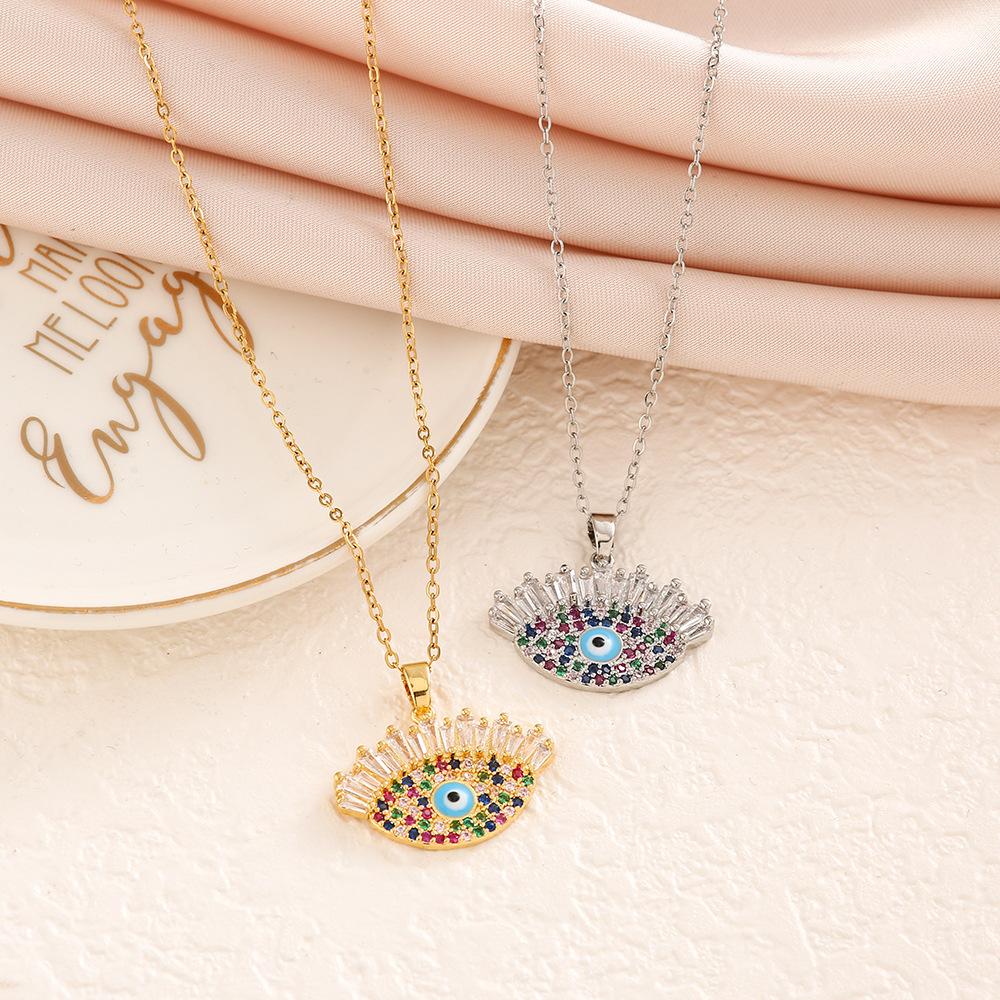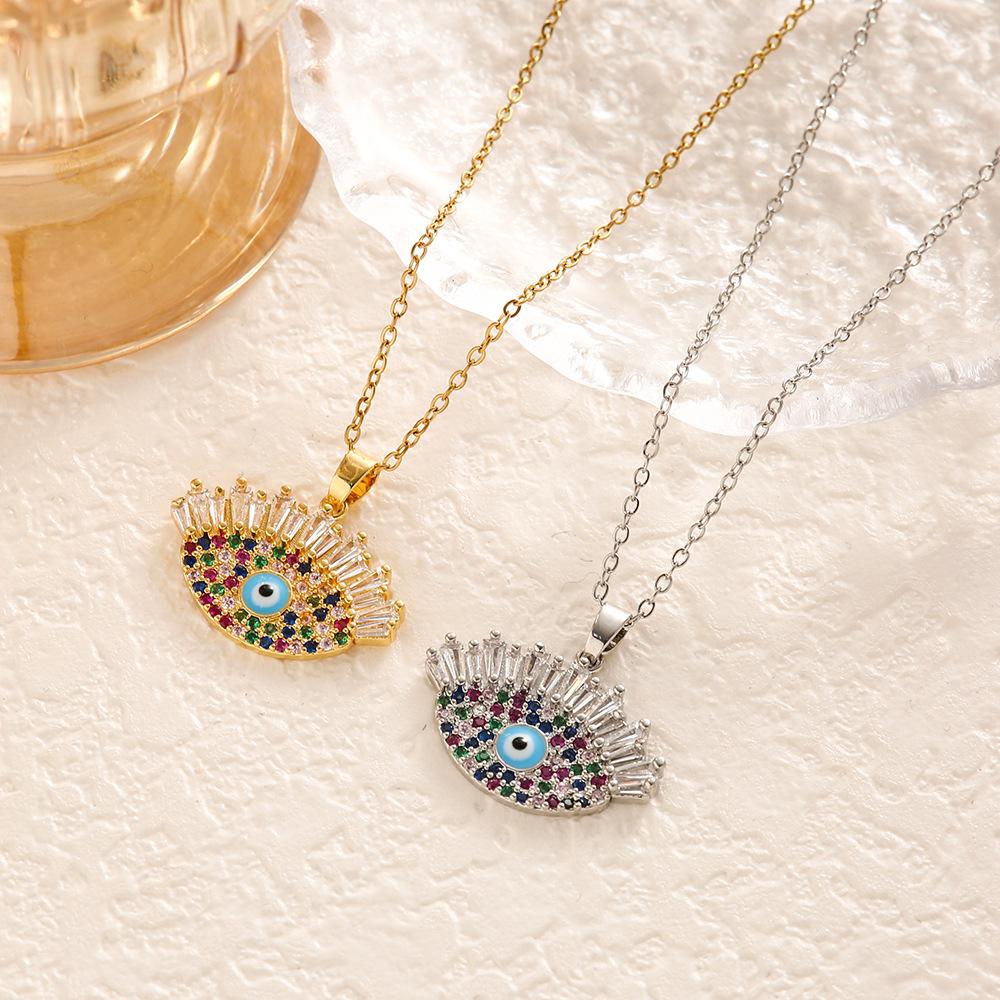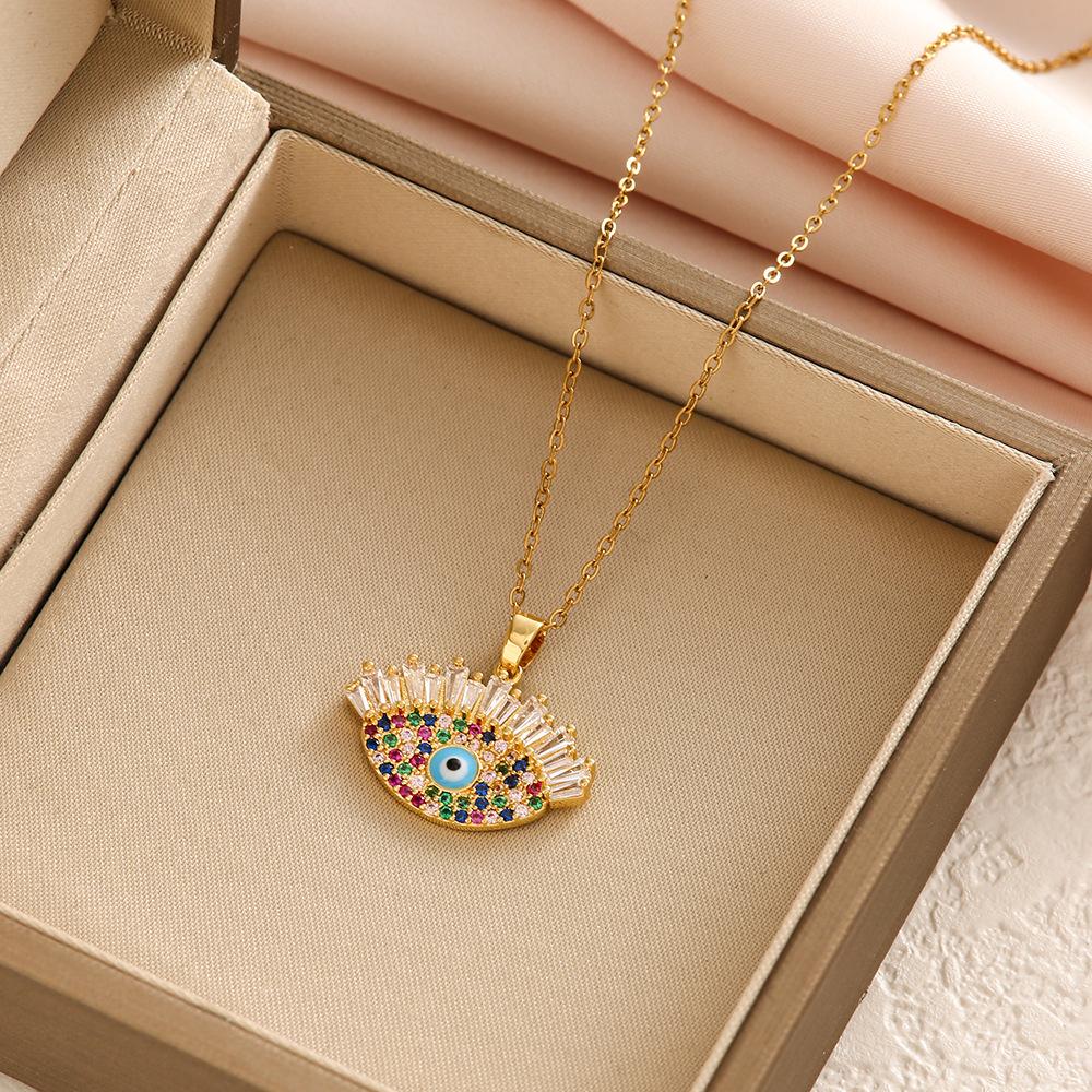 Collar de acero de titanio de moda europea y americana para mujer, cadena de clavícula con incrustaciones de diamantes Lucky Devil's Eye, chapado en oro de 18 quilates.
