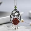 Collar con colgante de ciervo dorado rey de plata S925, plata tailandesa vintage, moda para mujer, estilo chino, colgante ovalado de caja de café