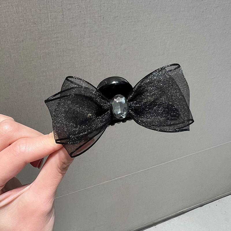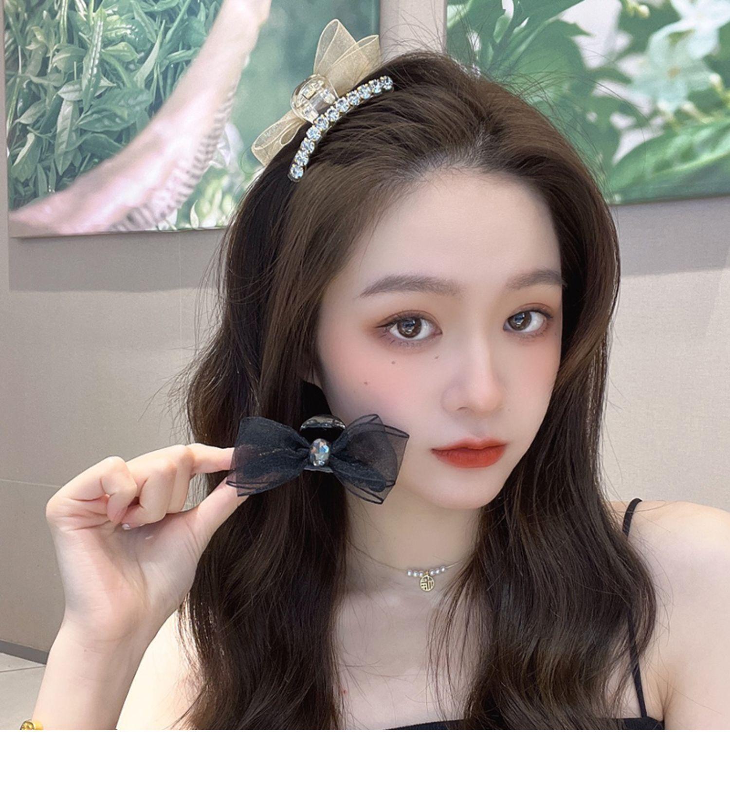 Horquilla de malla AB de doble cara con lazo y diamantes de imitación, estilo coreano, a la moda, para el flequillo, sencilla, ligera y de lujo.