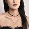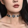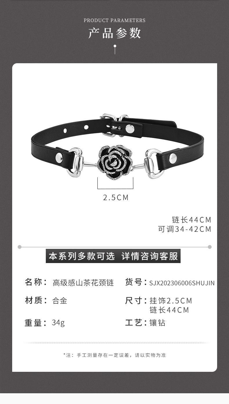 Collar de cuerda de cuero negro directo de fábrica, cadena de clavícula para mujer, diseño de personalidad de rosa de primavera y verano, cadena de cuello con flores de marea.