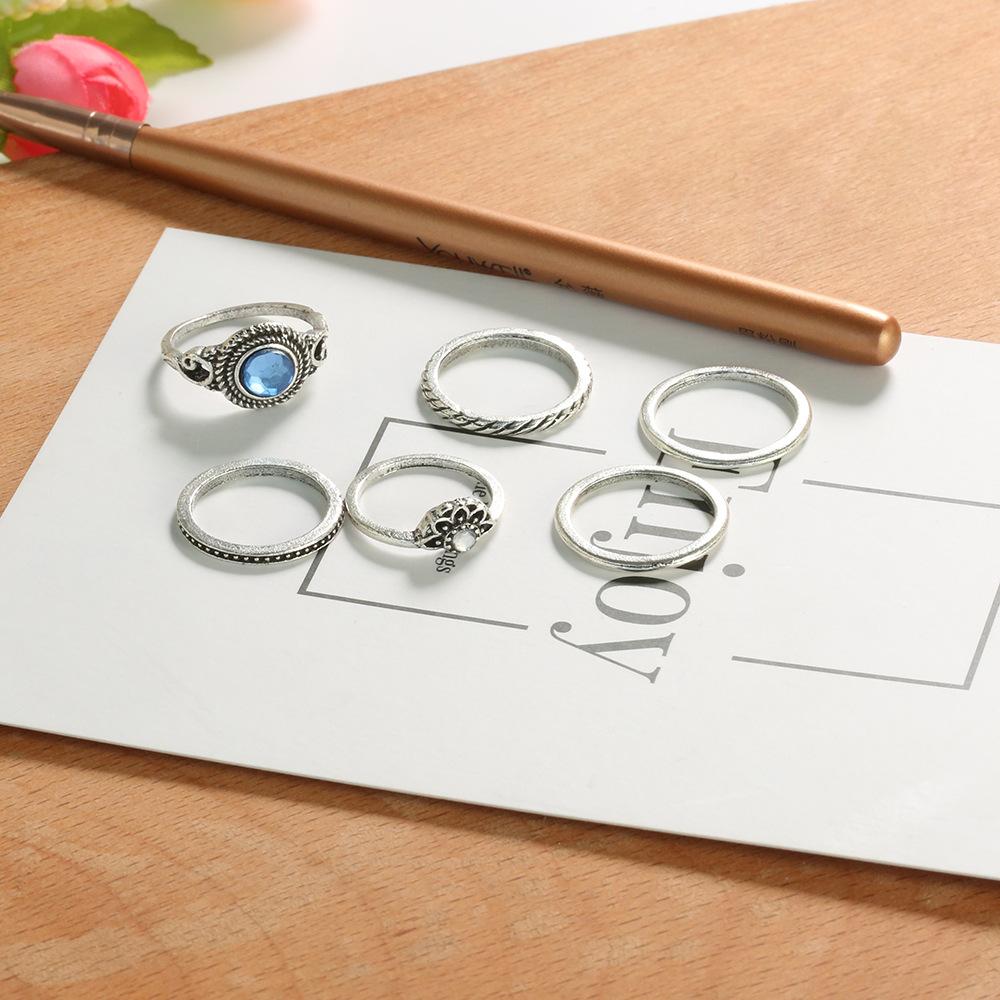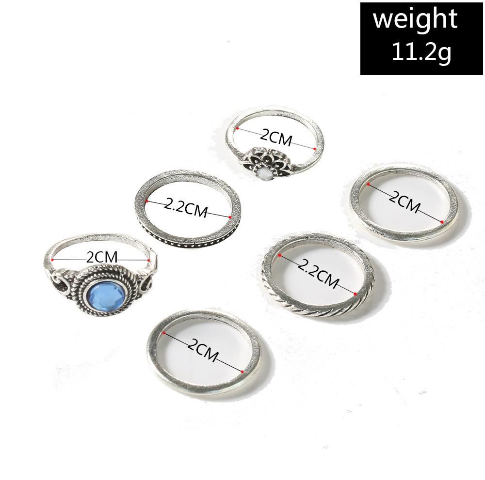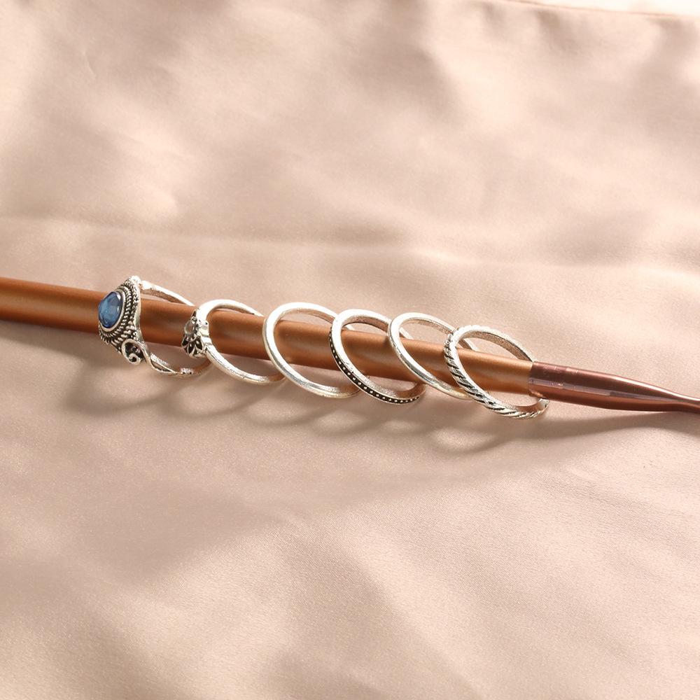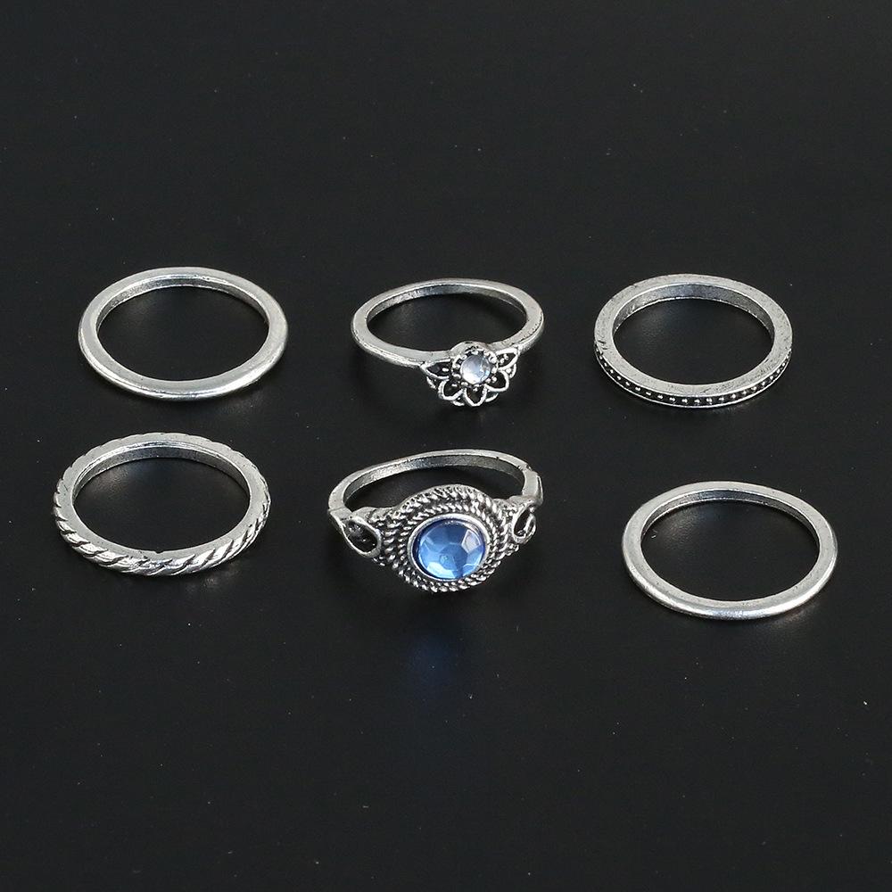 Nuevo conjunto de seis piezas de anillos de gemas con patrón retro de joyería de moda transfronteriza europea y americana