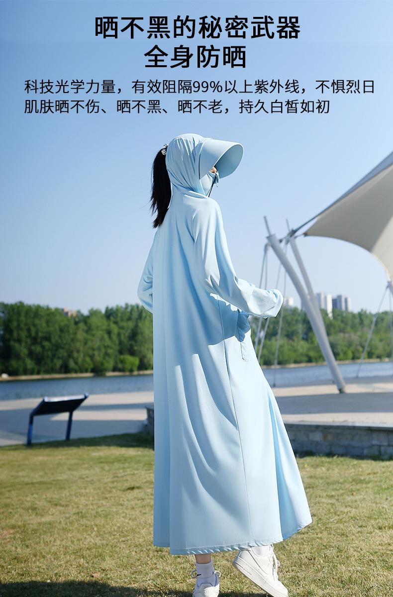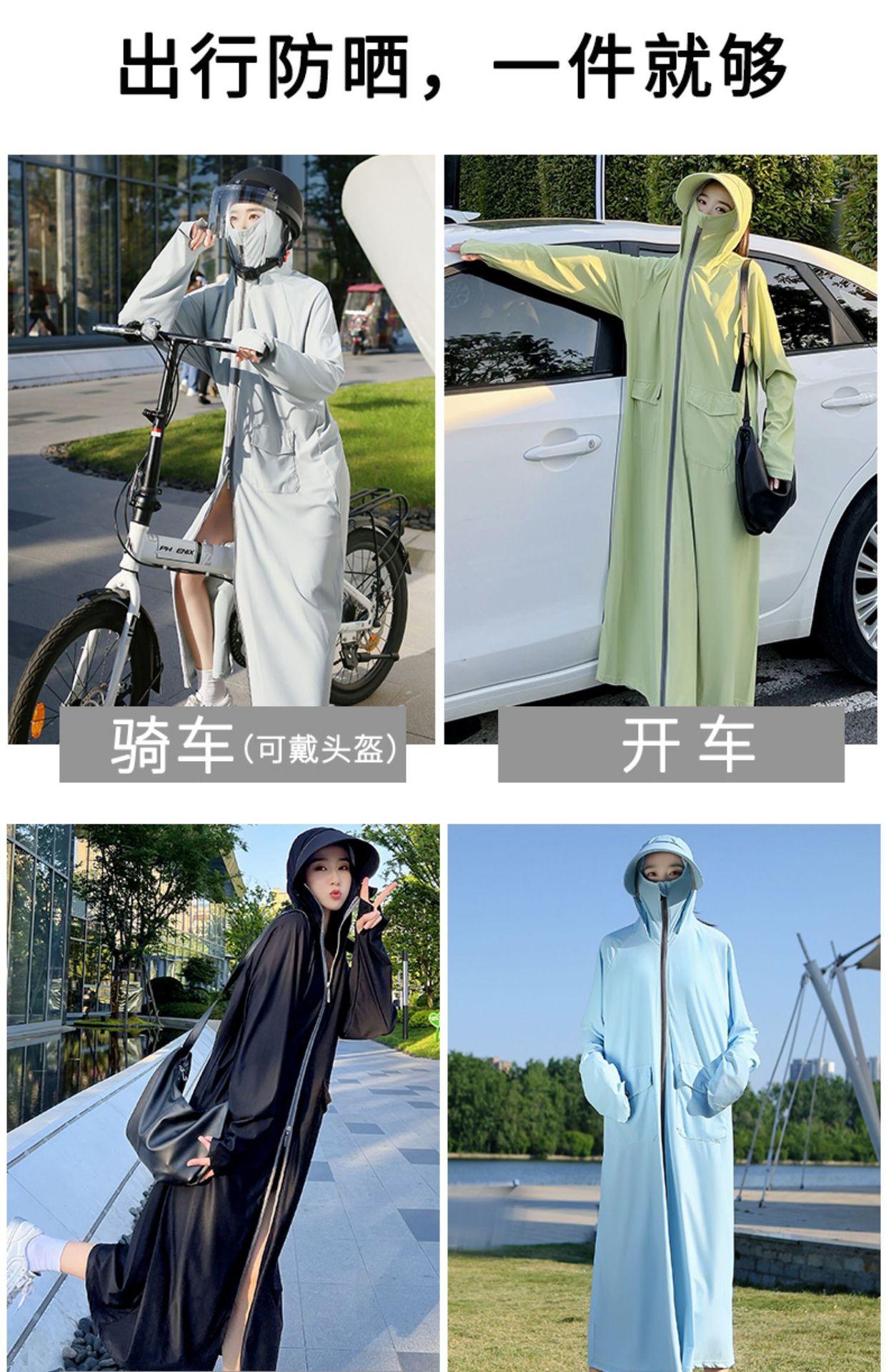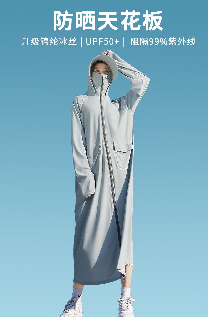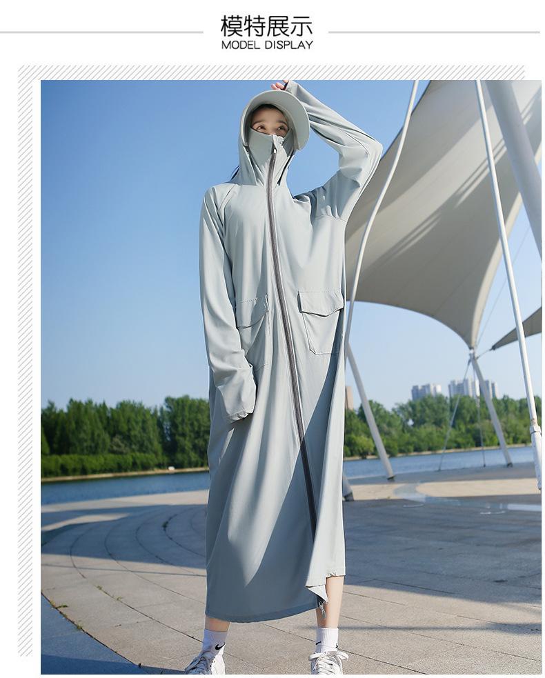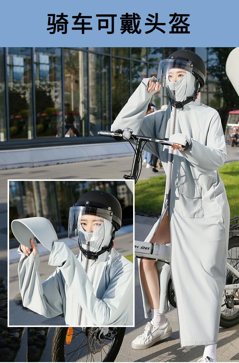 Ropa de protección solar súper larga para mujer, ropa de verano de cuerpo completo con protección solar, protección UV, transpirable, para montar en bicicleta eléctrica, seda fina de hielo, bolsillo grande