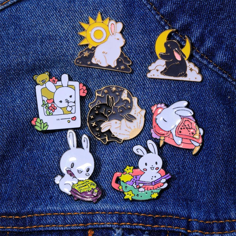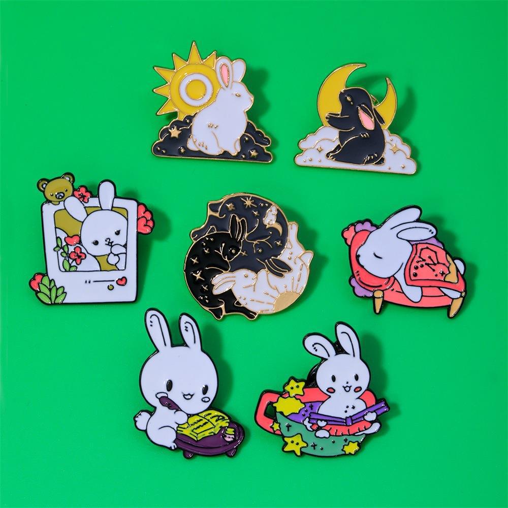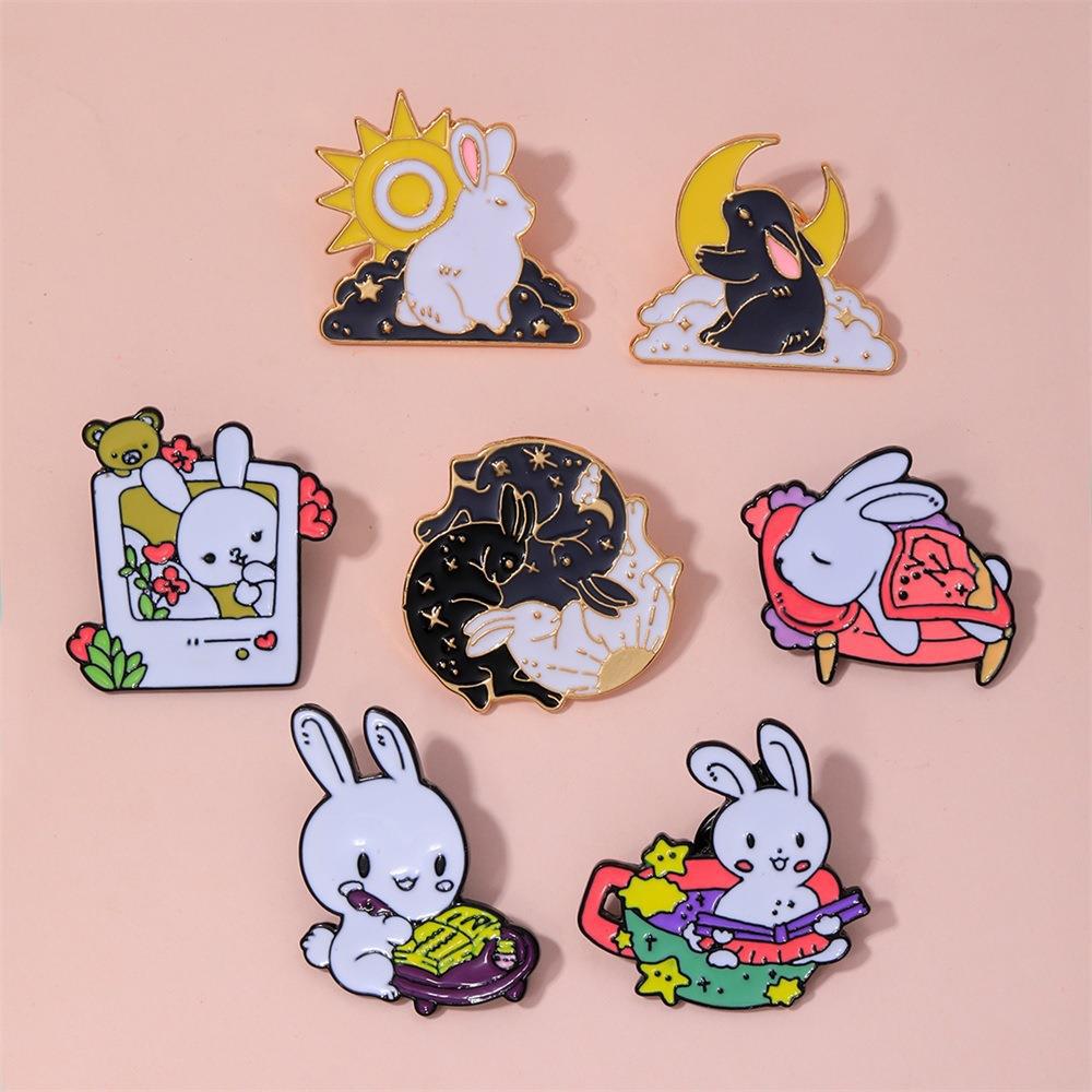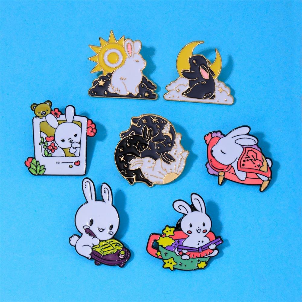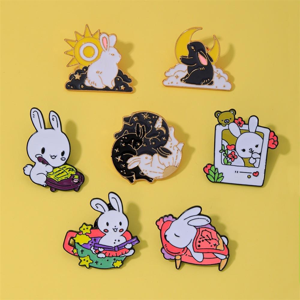 Amazon nuevo broche de conejo lindo creativo personalidad linda suave caricatura casual insignia de metal accesorios para bolsa de estudiante